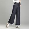 Calça Jeans de Cintura Alta Tannin Blue Wide Leg Feminina 2025 Primavera e Outono Novas Calças Largas Bordadas Retro Calças Casuais para Mulheres