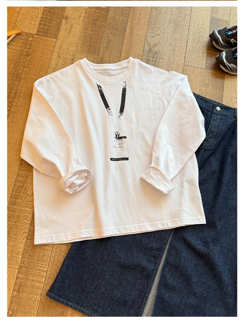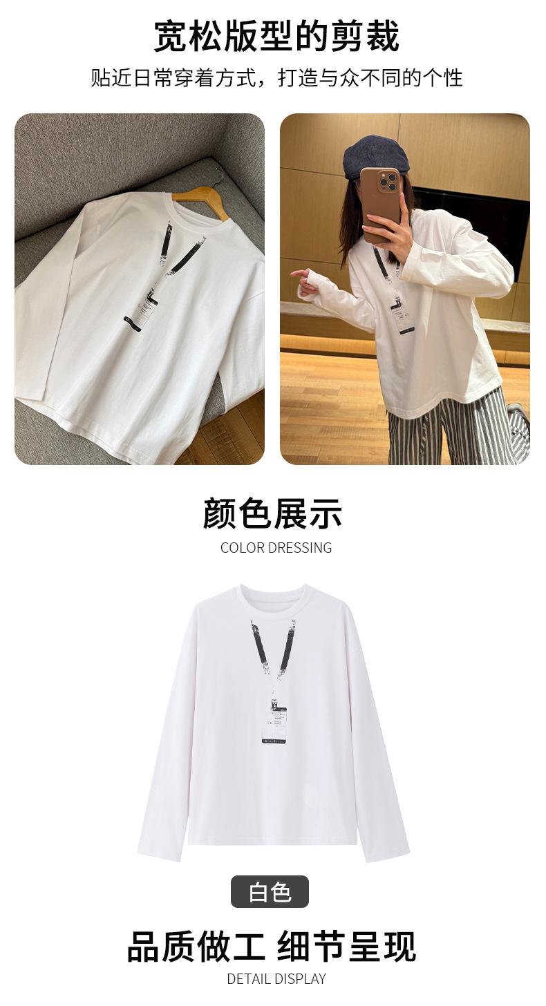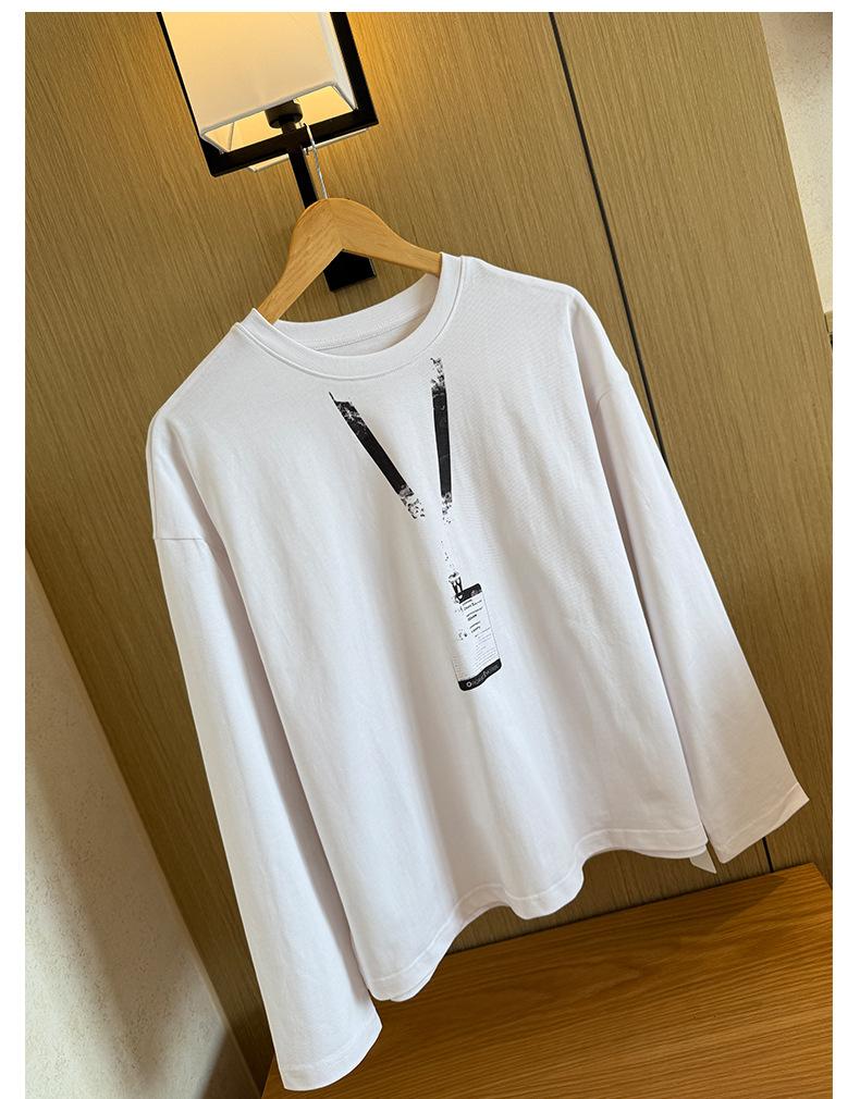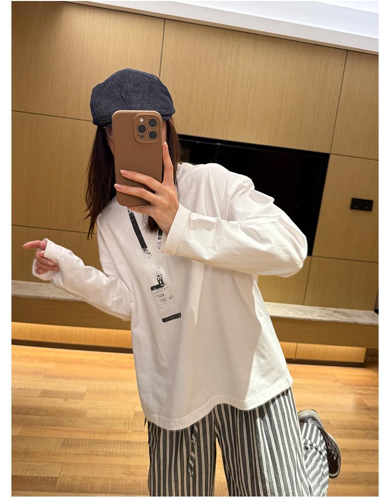 Solto Top Casual Marca T-shirt Ombro Manga Longa Primavera Nova Base Gola Redonda Algodão Puro Camisa Base Feminina