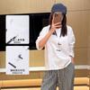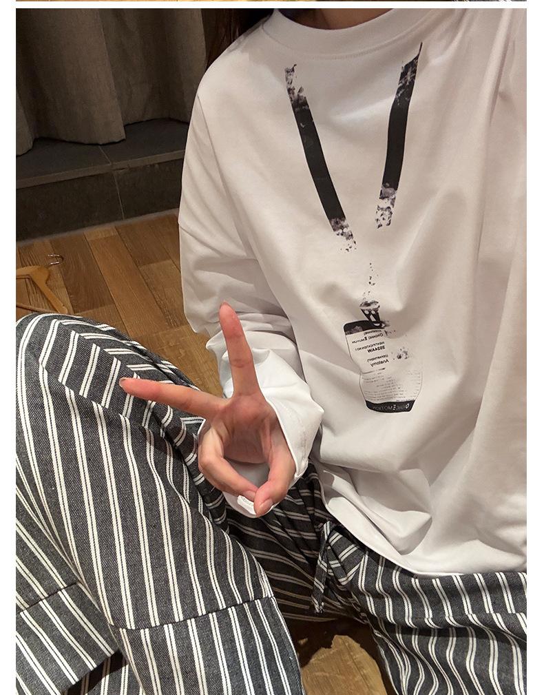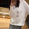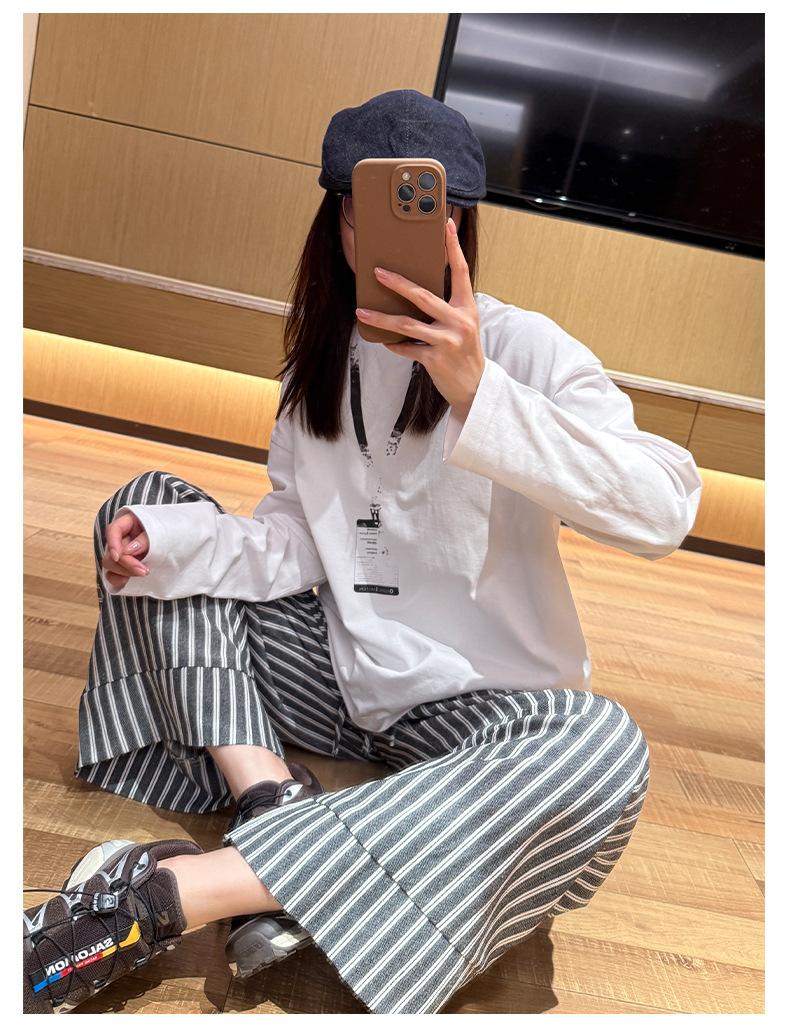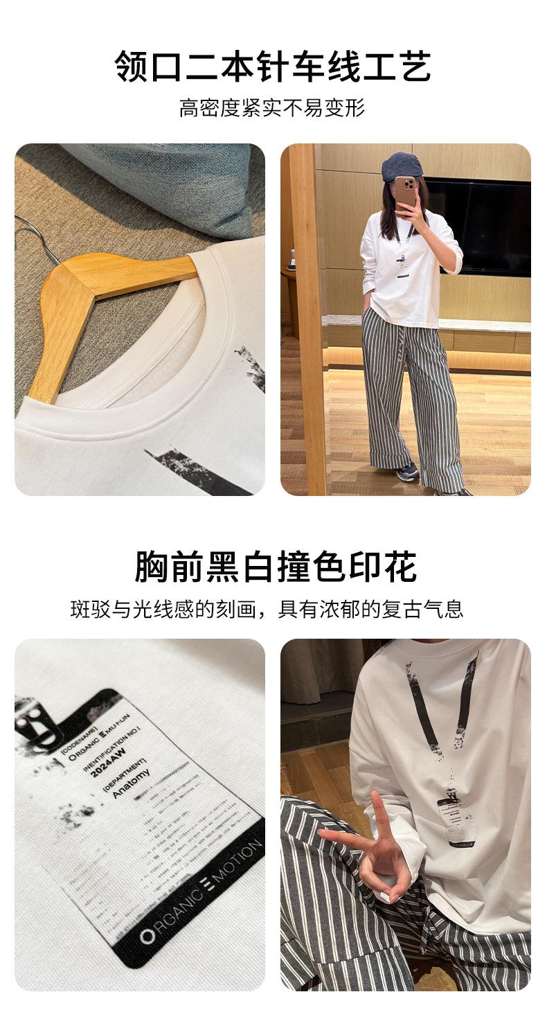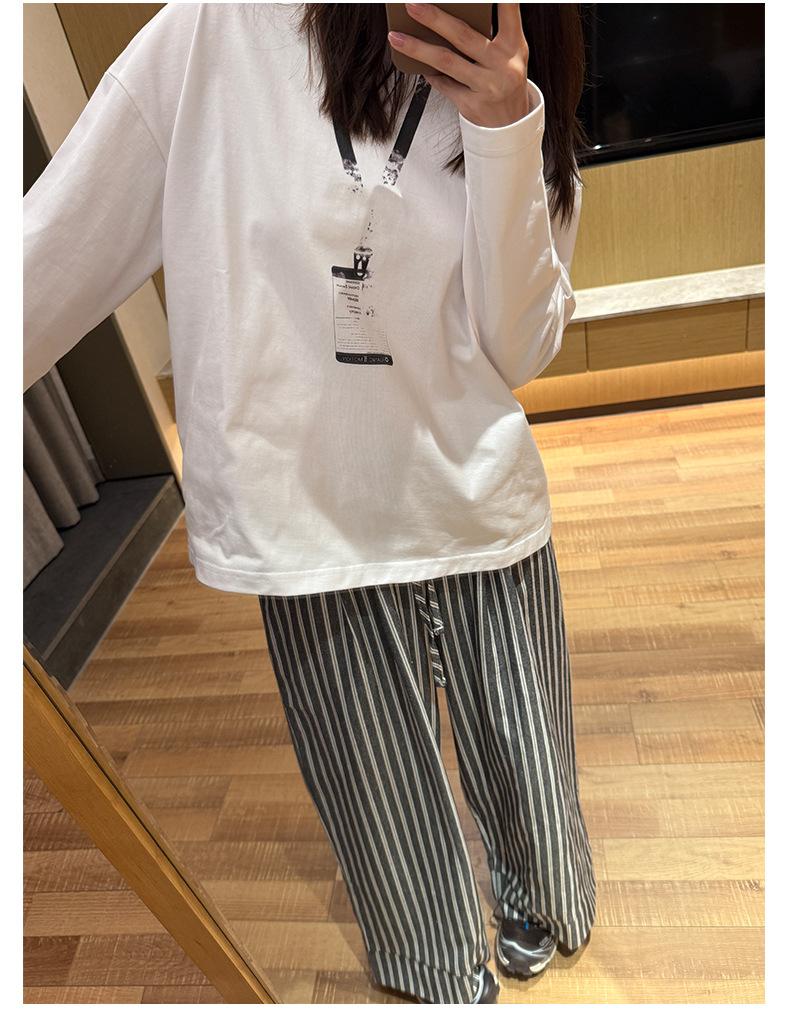 Solto Top Casual Marca T-shirt Ombro Manga Longa Primavera Nova Base Gola Redonda Algodão Puro Camisa Base Feminina