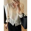 Zhen Xi Novas Mulheres Manga Longa Gola Redonda Perspectiva Bordado Renda Moda Reta Casual Elegante Jaqueta CQ390