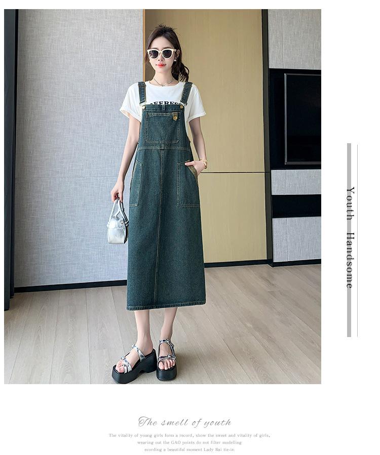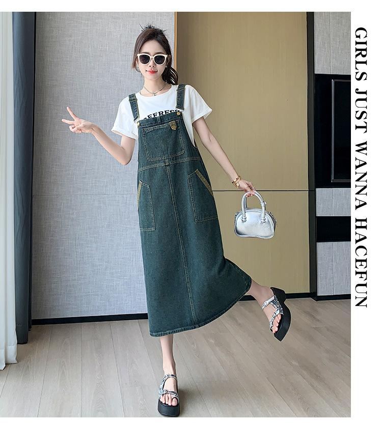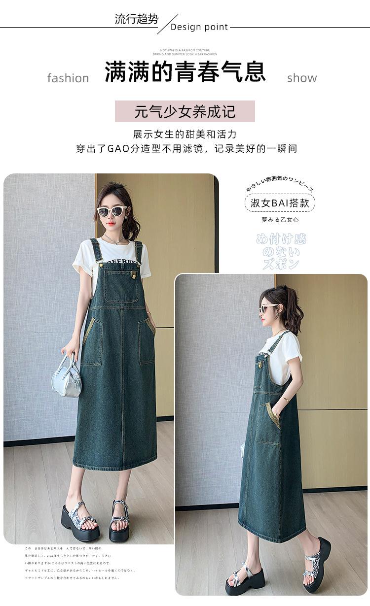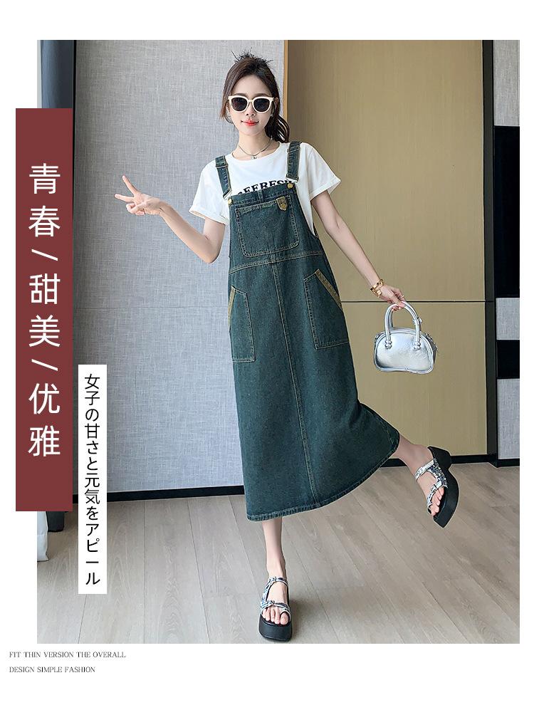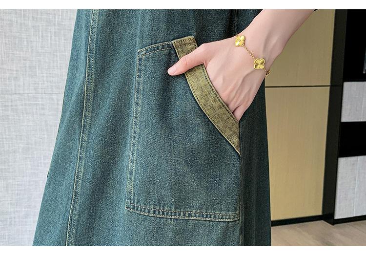 2024 Verão Novo Estilo Coreano Solto Casual All-match Denim Strand Vestido Médio Plus Size Vestido Slim Feminino