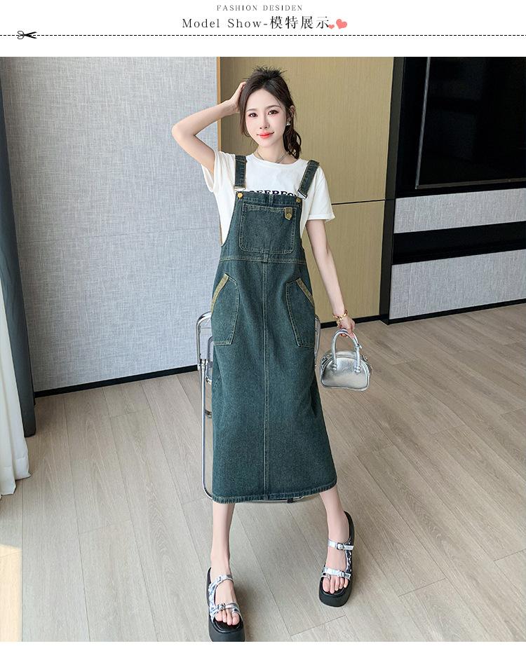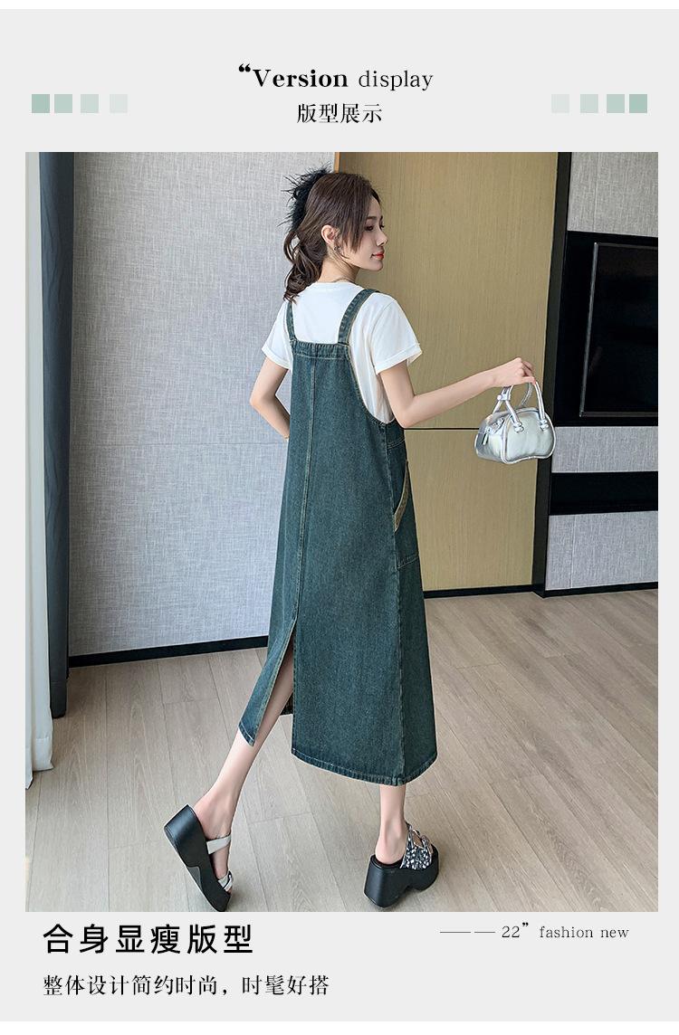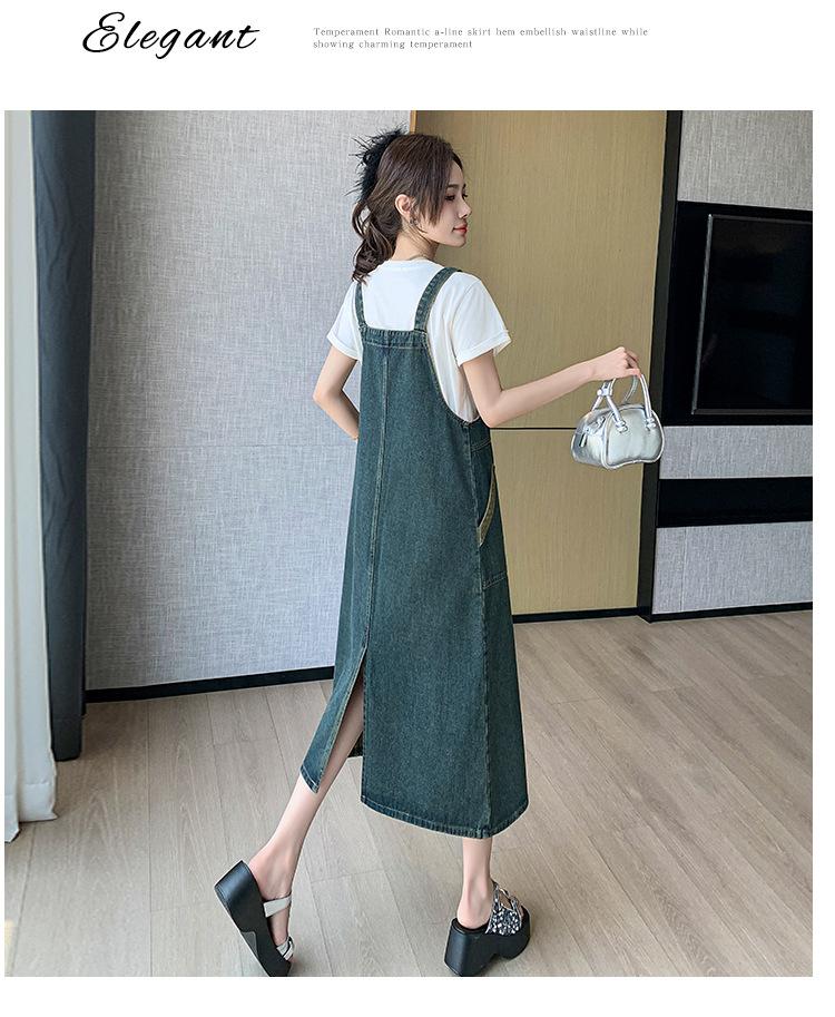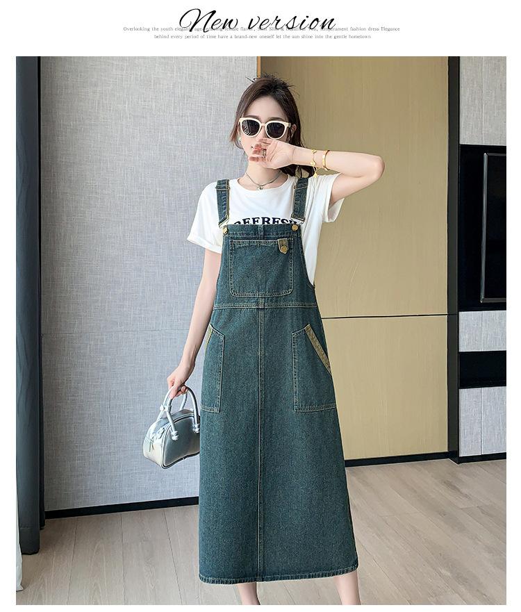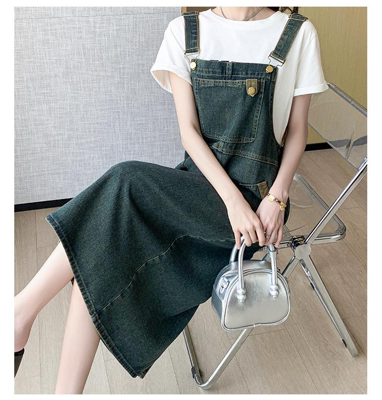 2024 Verão Novo Estilo Coreano Solto Casual All-match Denim Strand Vestido Médio Plus Size Vestido Slim Feminino