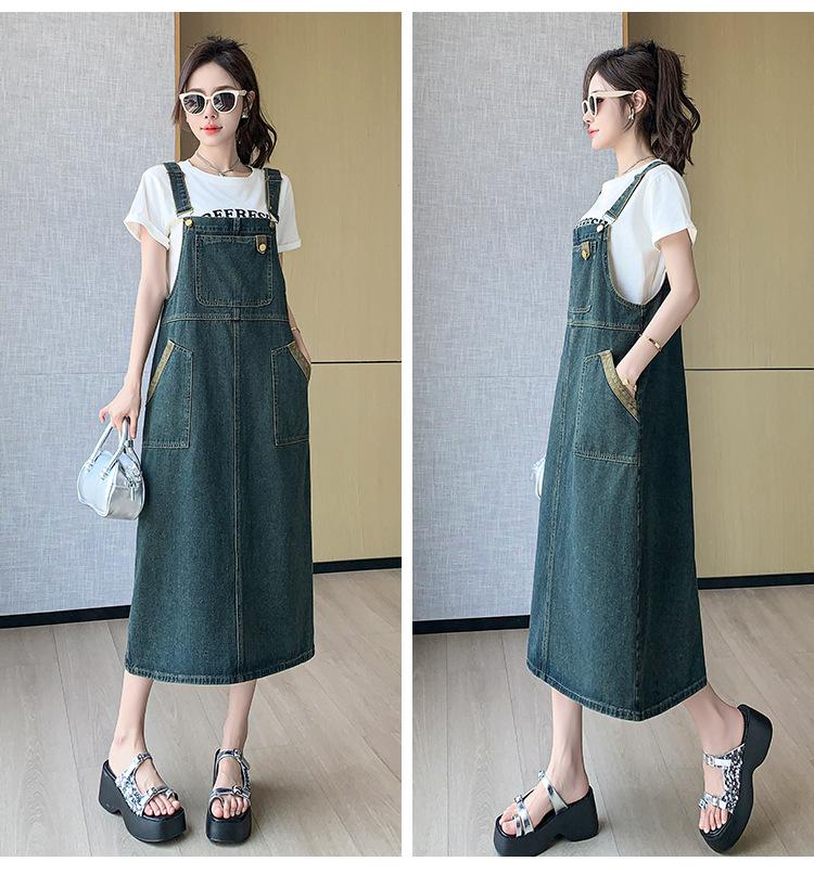 Compre 2024 Verão Novo Estilo Coreano Solto Casual All-match Denim Strand Vestido Médio Plus Size Vestido Slim Feminino no atacado no Joom.pro