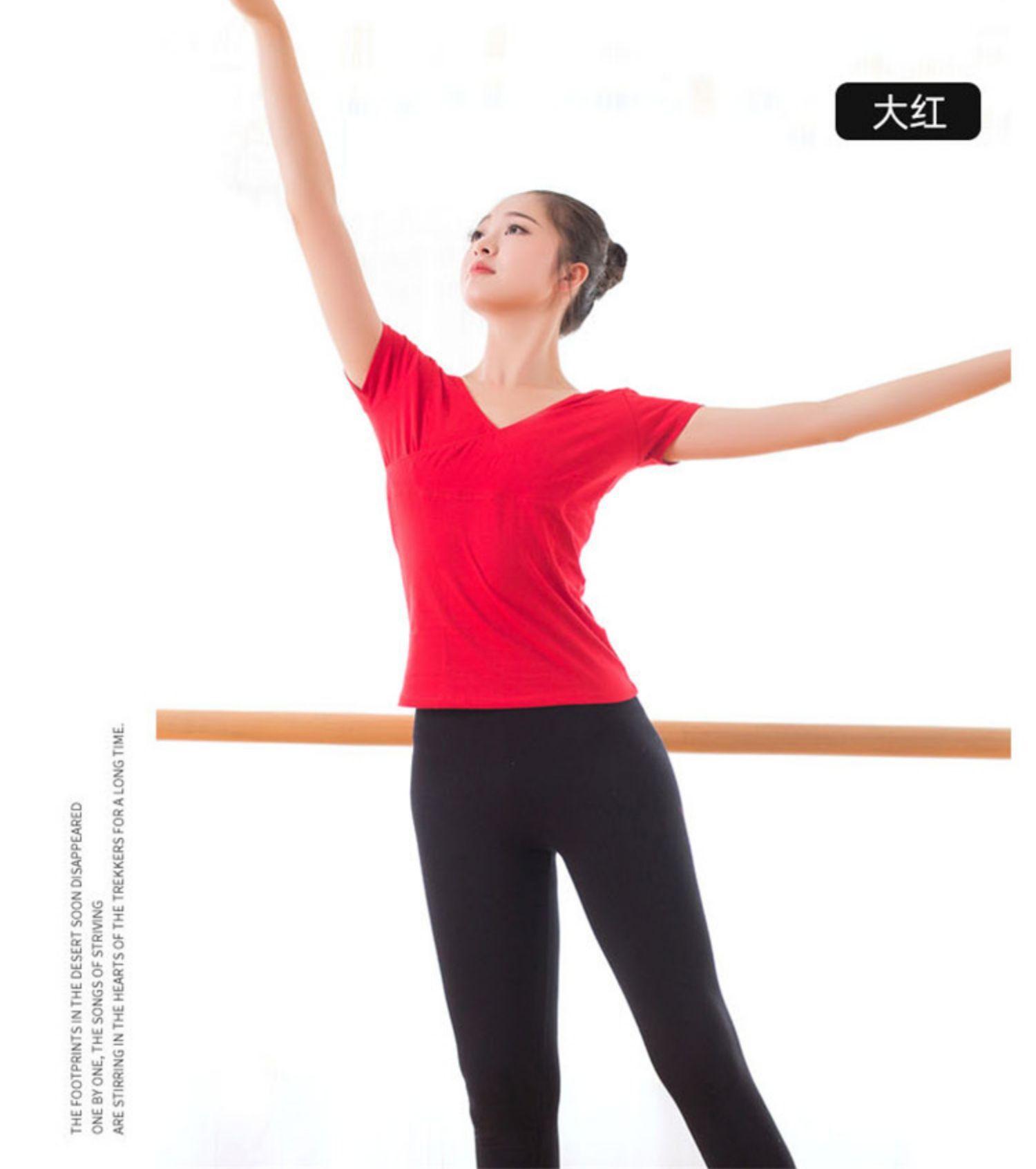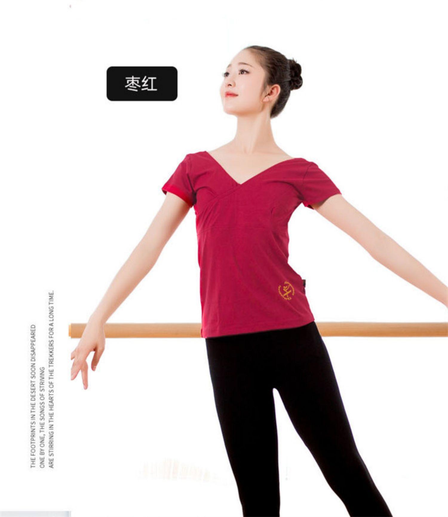 Compre Roupas Novas de Prática de Dança Tops de Corpo Algodão Decote V Manga Curta Balé Dança Chinesa Ginástica Latina Roupas para Crianças no atacado no Joom.pro