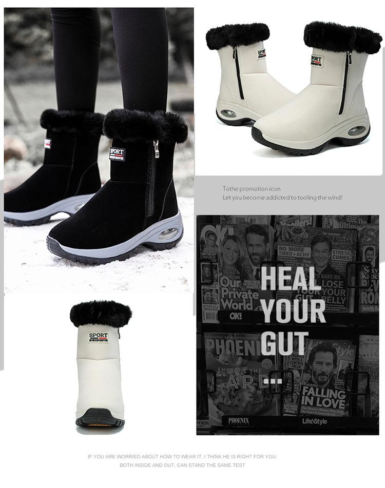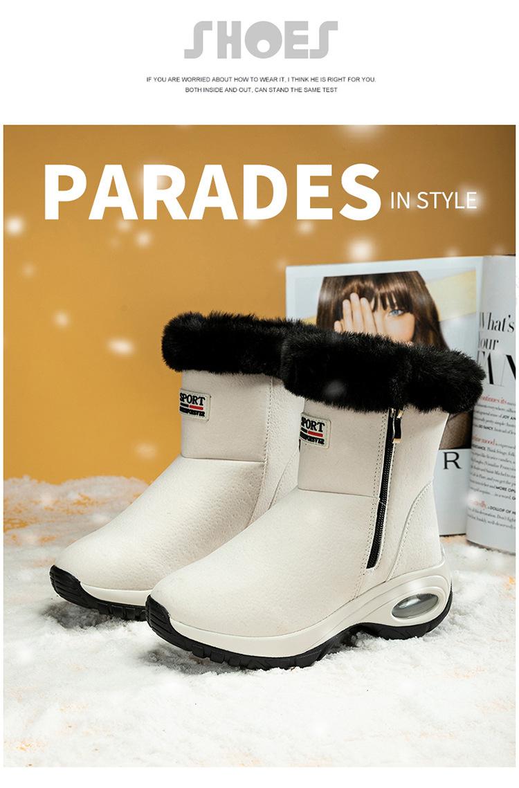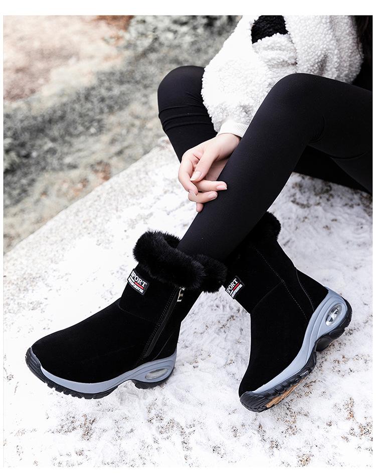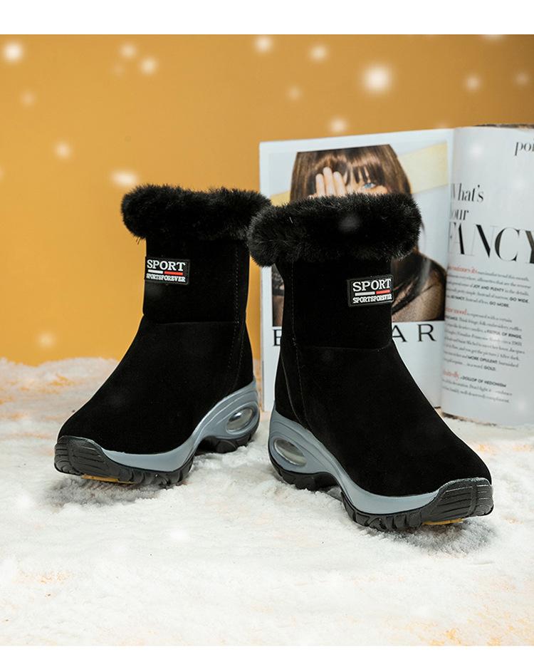 Botas de Neve de Veludo Tamanho Grande Fashion para Outono e Inverno para Mulheres Novas Botas de Algodão de Cano Curto e Salto Médio Botas Femininas da Moda de Sola Grossa