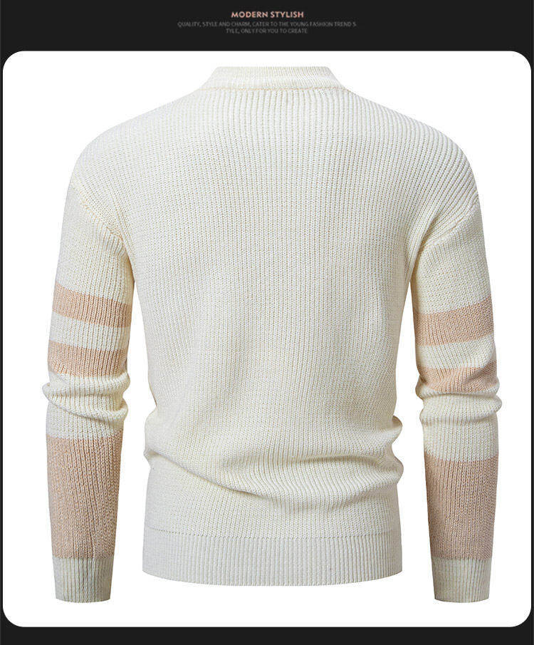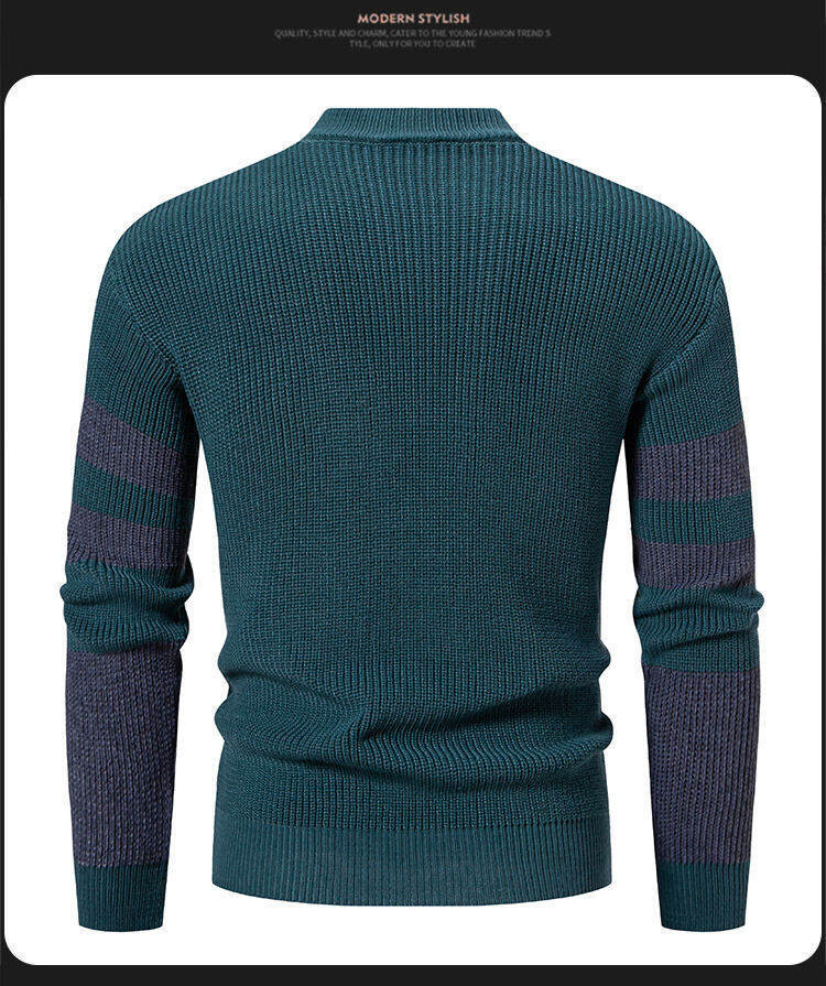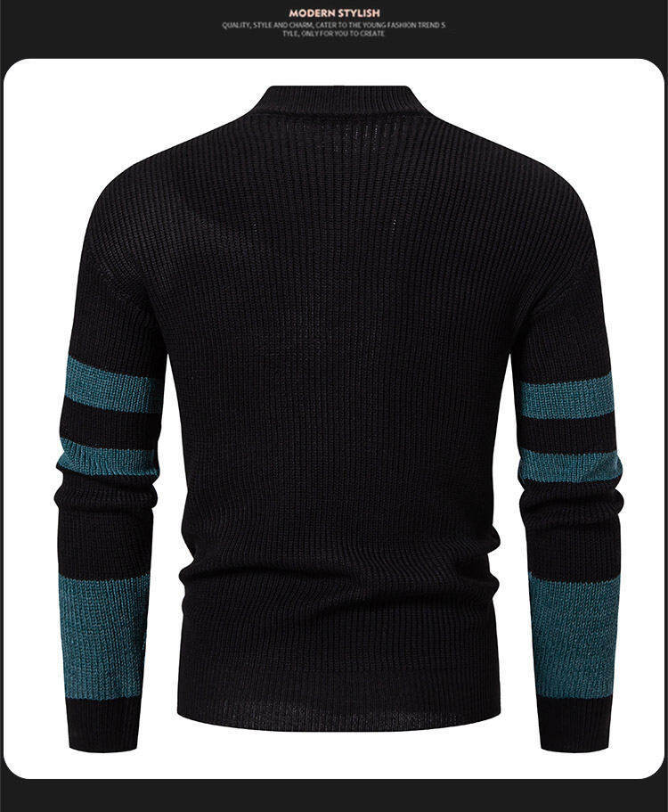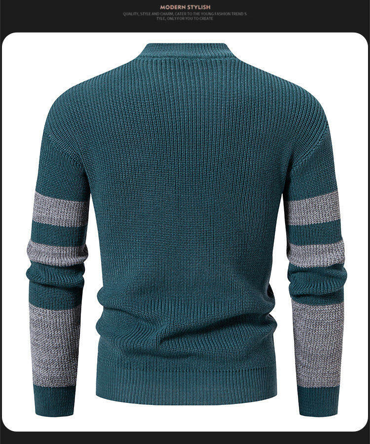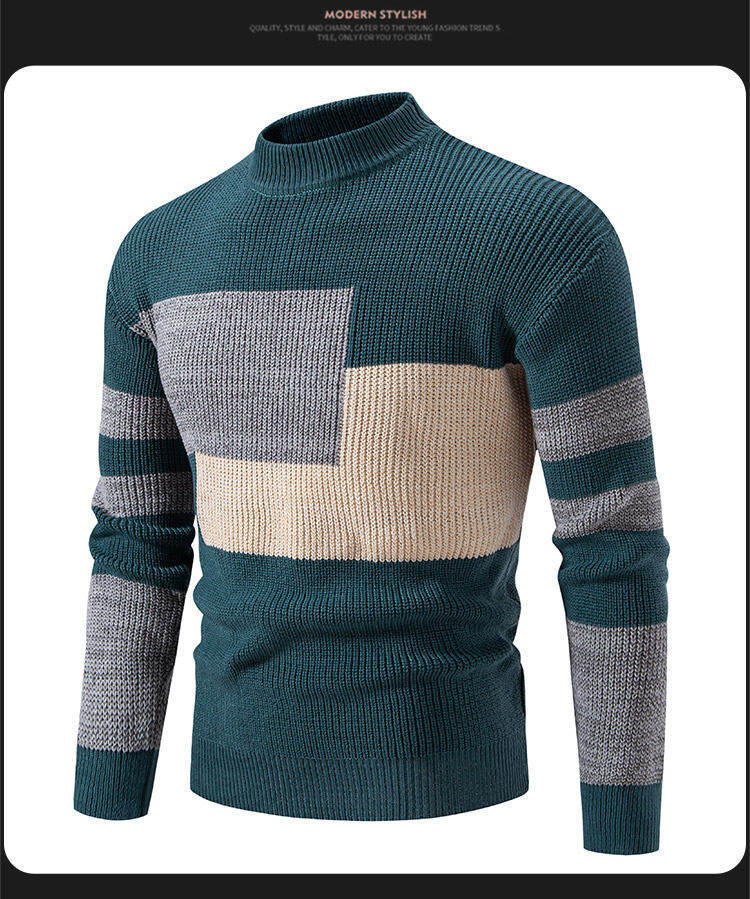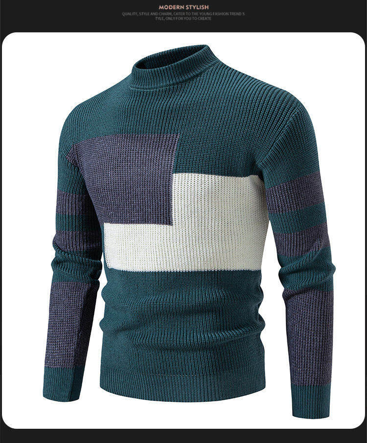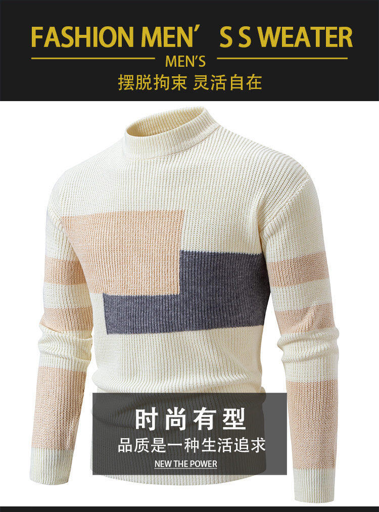 Suéter masculino de primavera e outono, moda de comércio exterior, costura de cor contrastante, gola semi-alta, suéter de malha quente, suéter de combinação completa, moda para jovens