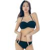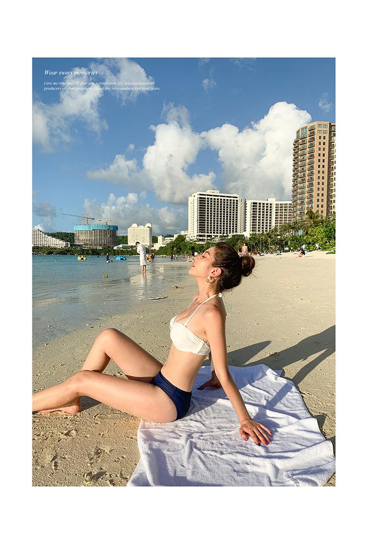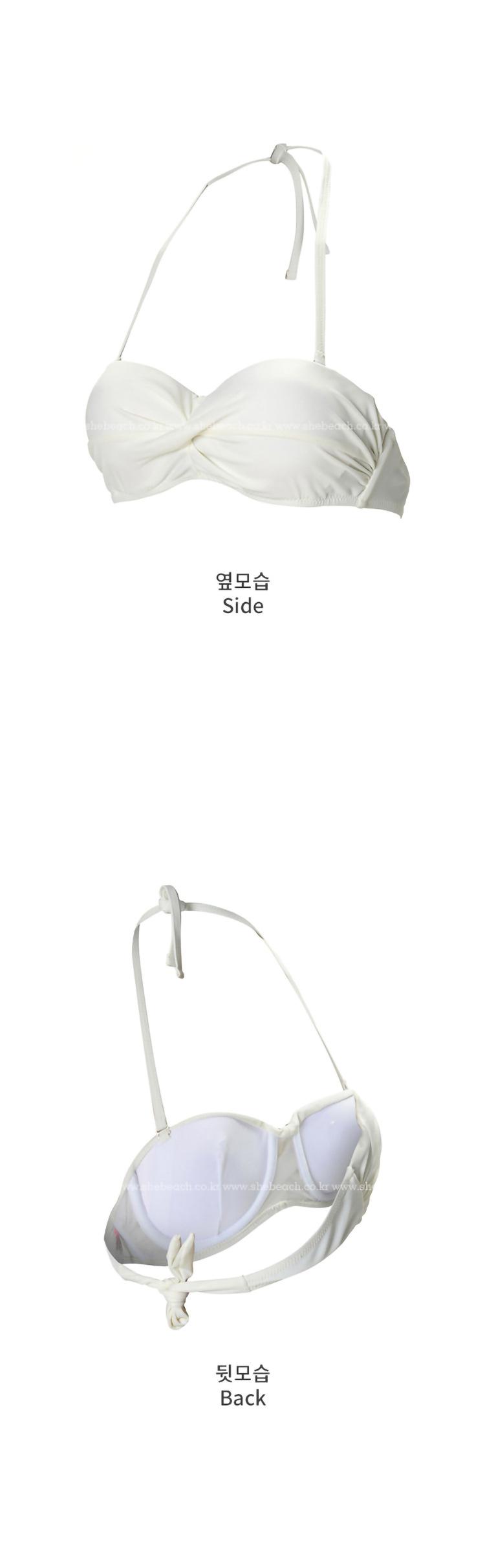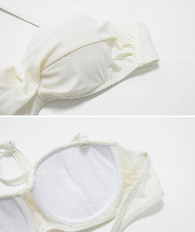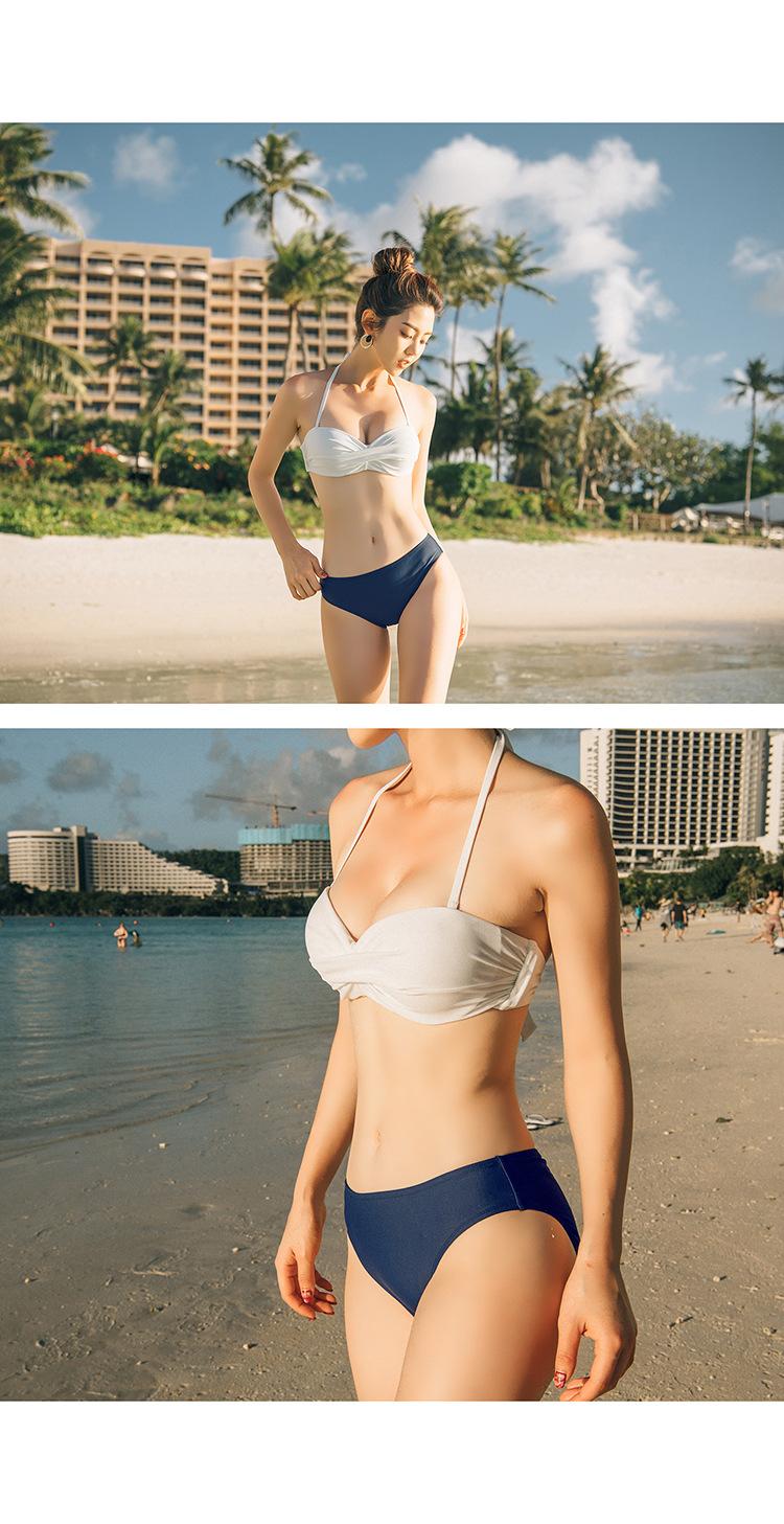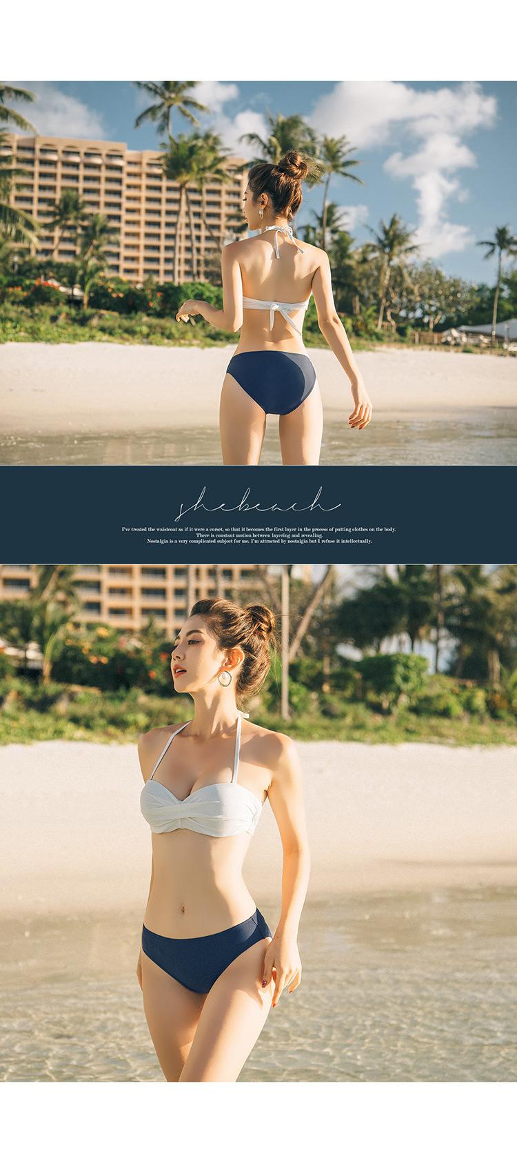 Versão coreana direta da fábrica de maiô triângulo simples branco com decote fendido, cadarço, busto pequeno franzido, costas nuas, praia de águas termais