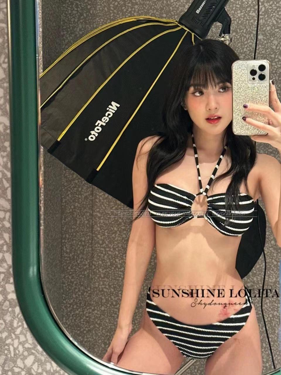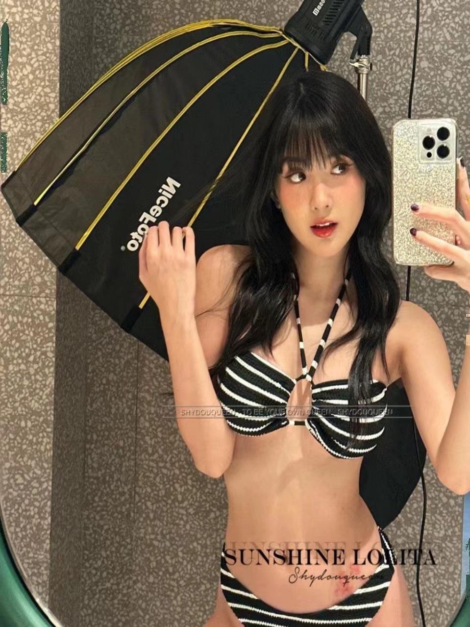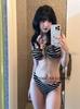 2024 Novo Amazon Europeu e Americano Listrado Maiô Sexy Três Pontos Biquíni Dividido Maiô Feminino Verão Atacado