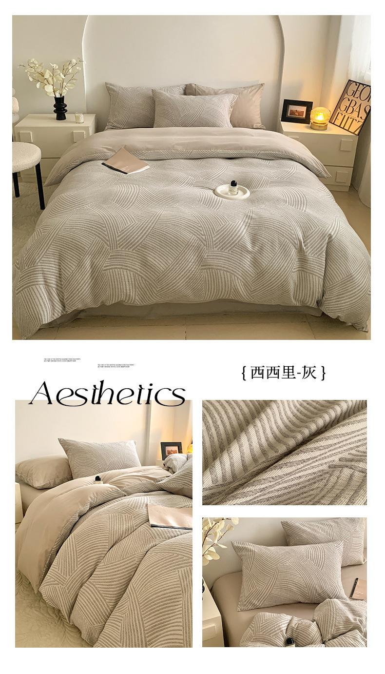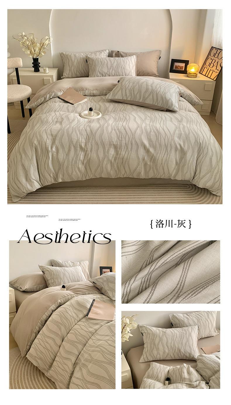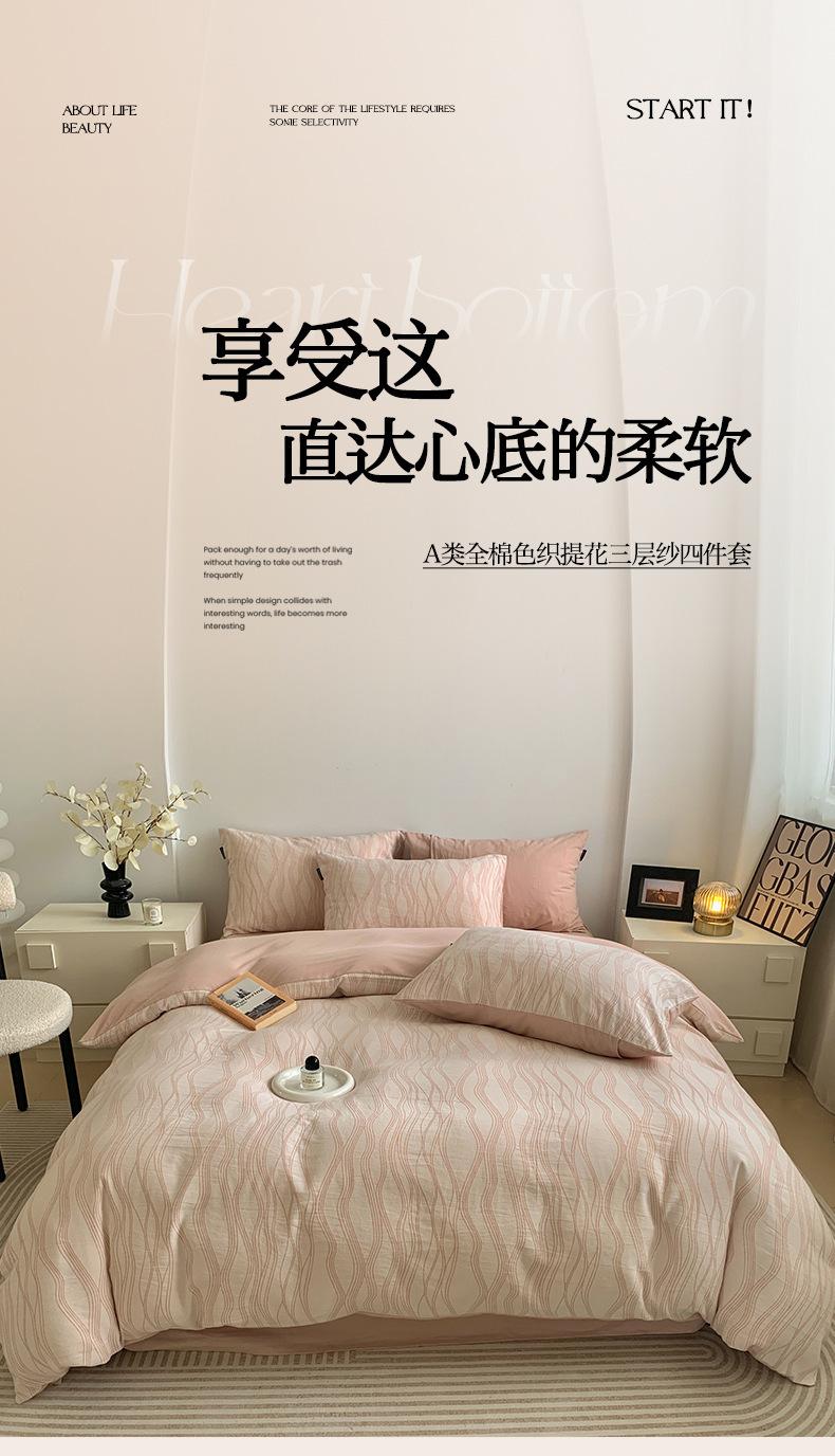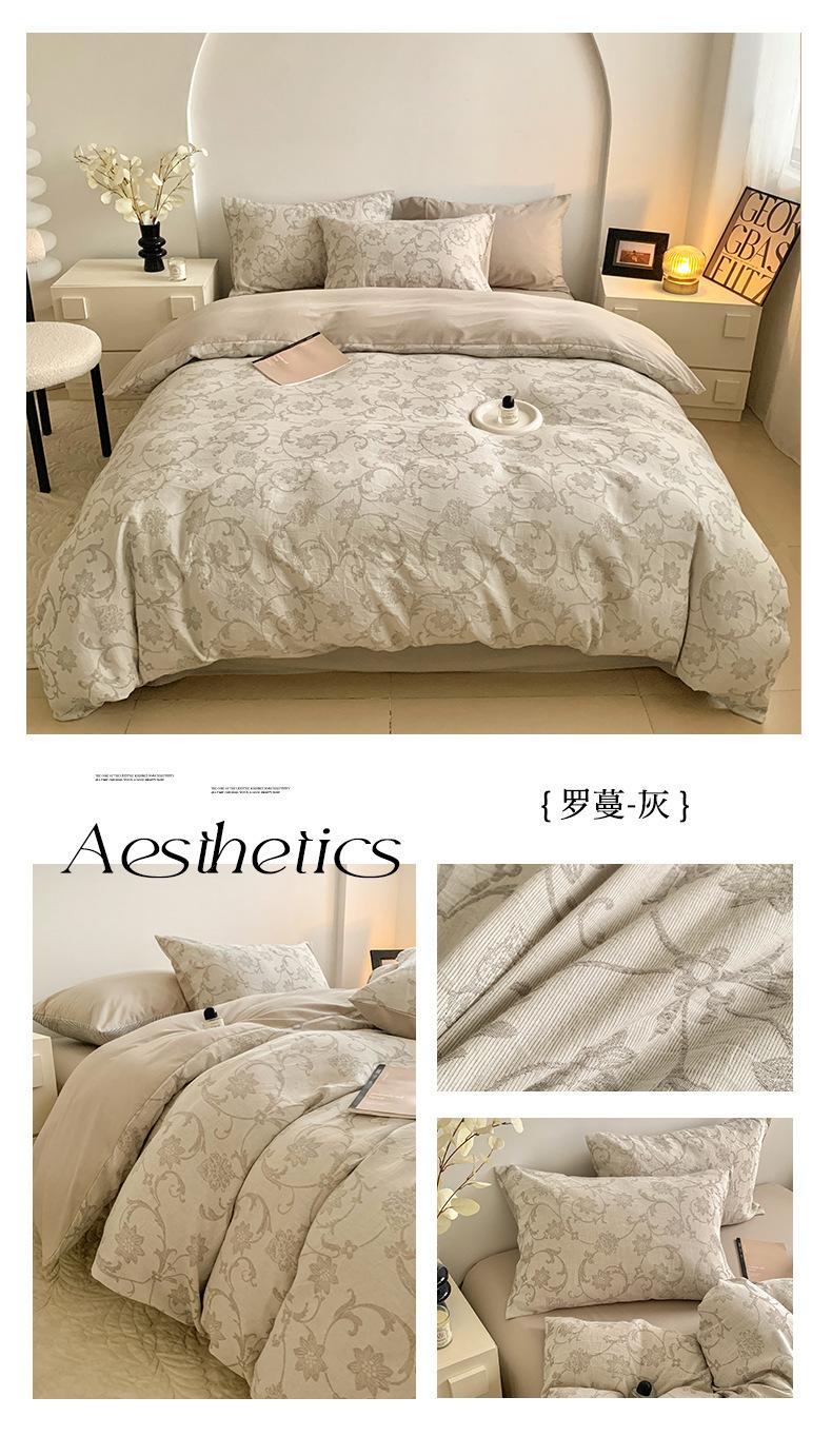 Cama de lixamento de algodão puro classe A Conjunto de quatro peças Lençol de cama leve de luxo Outono e inverno Capa de edredom jacquard Roupa de cama Roupa de cama de três peças