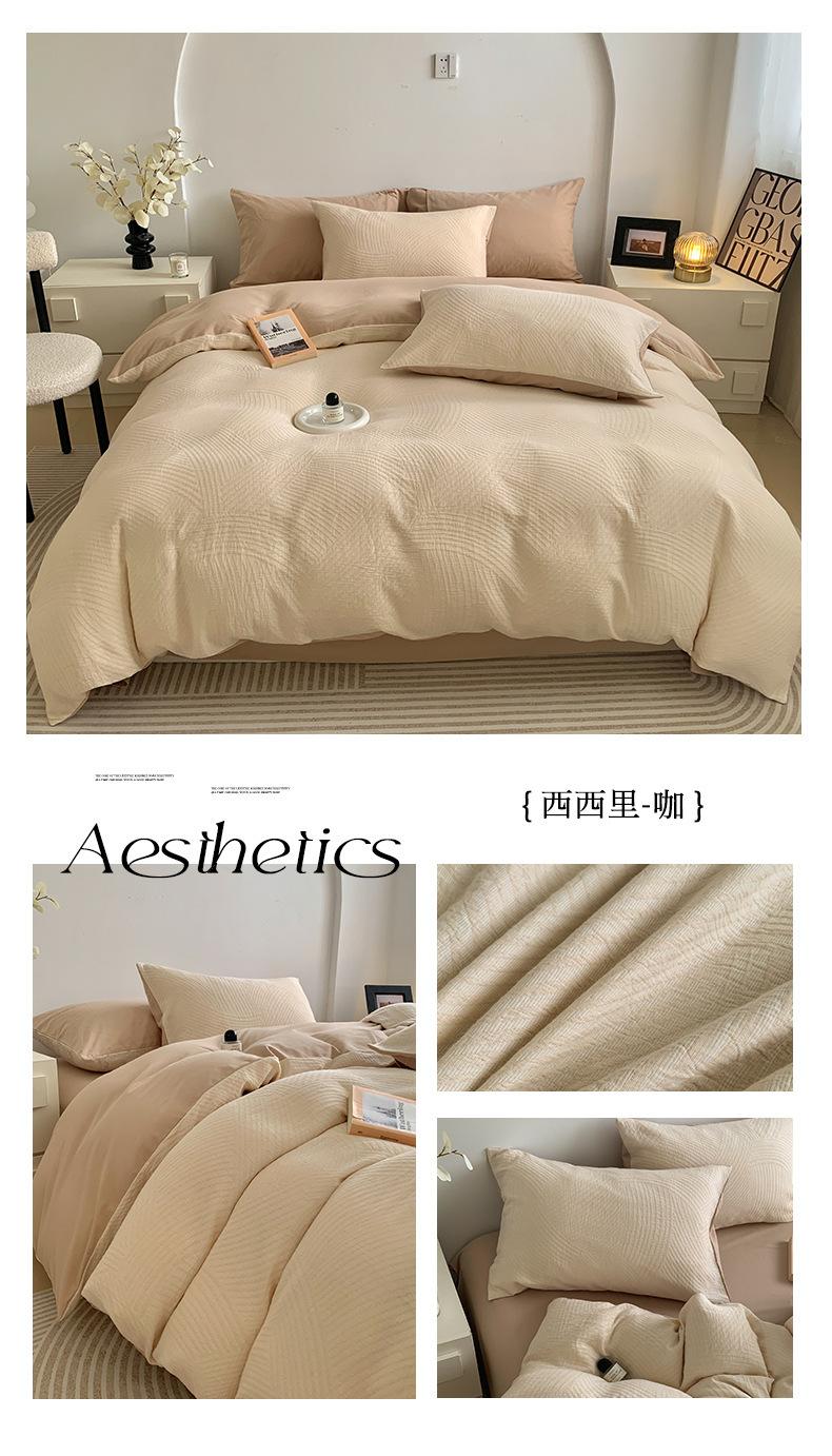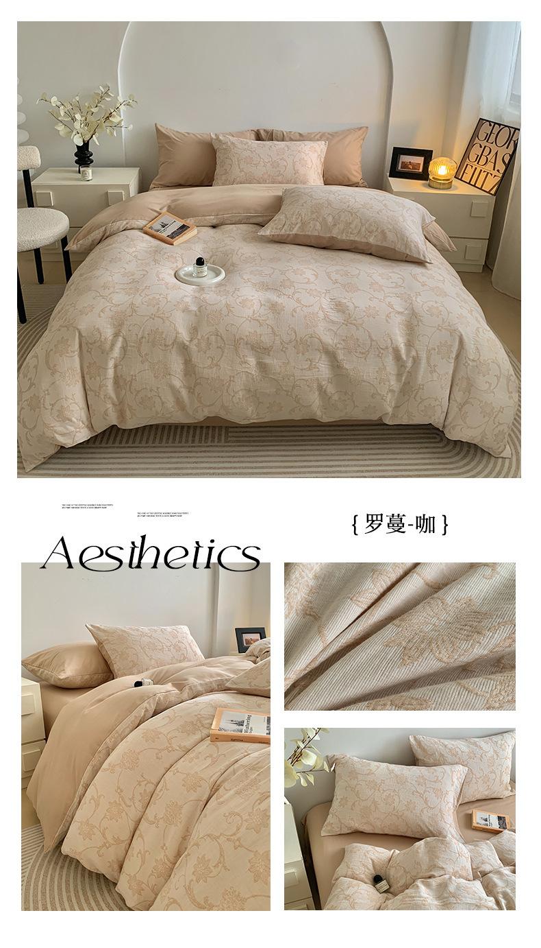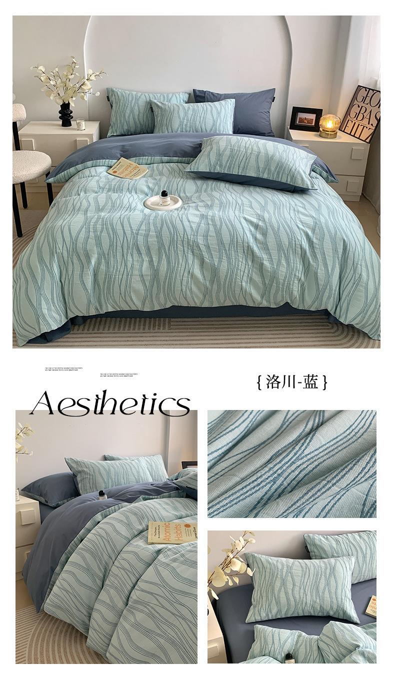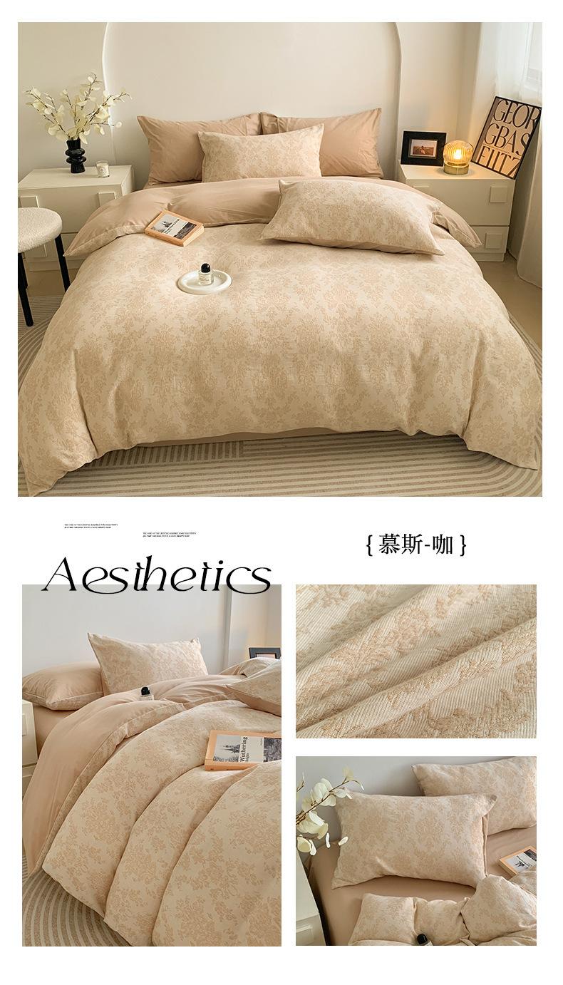 Cama de lixamento de algodão puro classe A Conjunto de quatro peças Lençol de cama leve de luxo Outono e inverno Capa de edredom jacquard Roupa de cama Roupa de cama de três peças