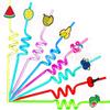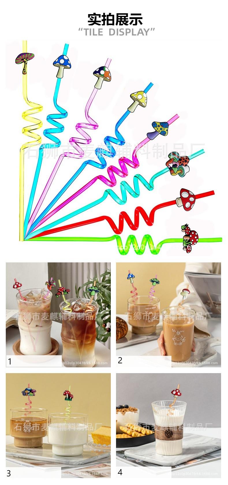 Palha de cogumelo PETG espiral palha de desenho animado fivela de palha cor de qualidade alimentar cotovelo acessórios decorativos
