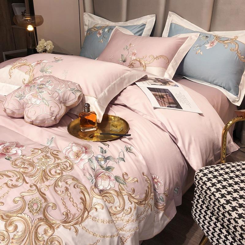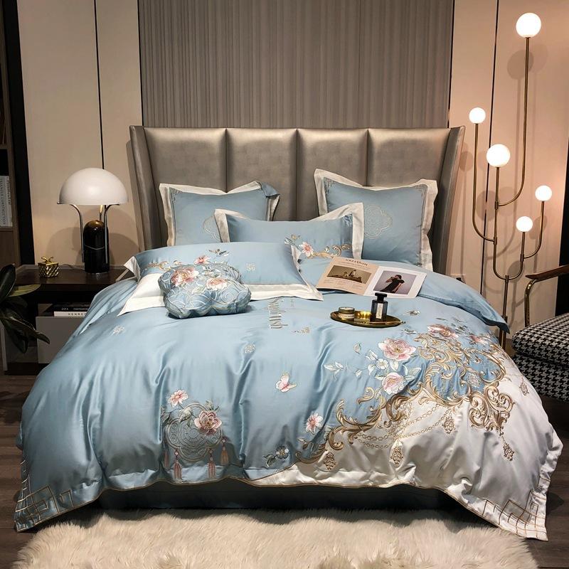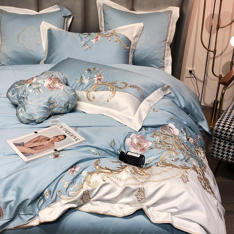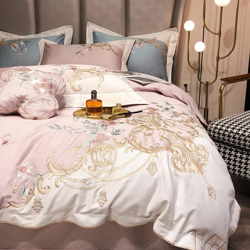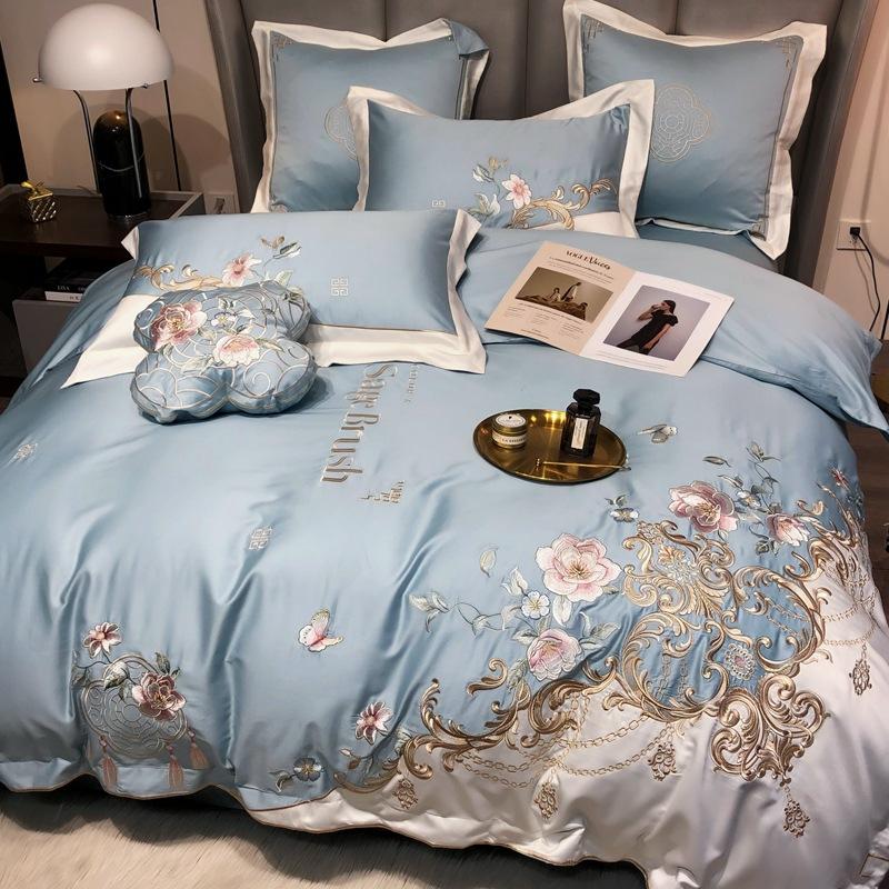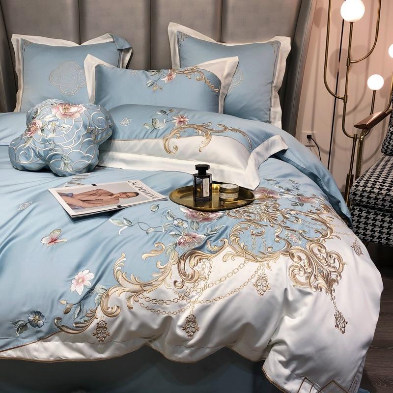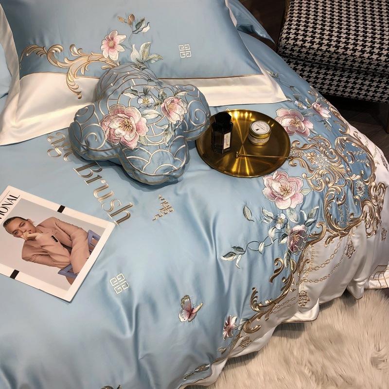 1 lençol de cama de cetim de algodão de fibra longa de quatro peças capa de edredom m roupa de cama de algodão bordado 20 estilo europeu
