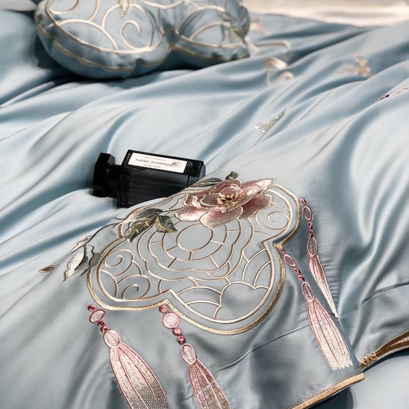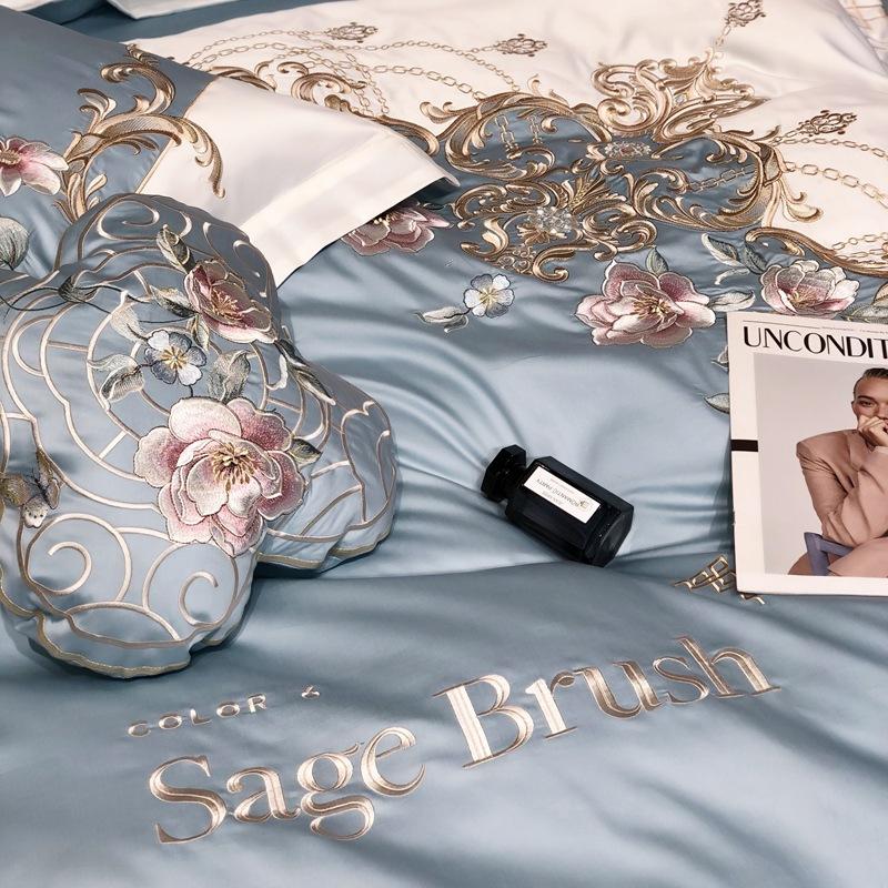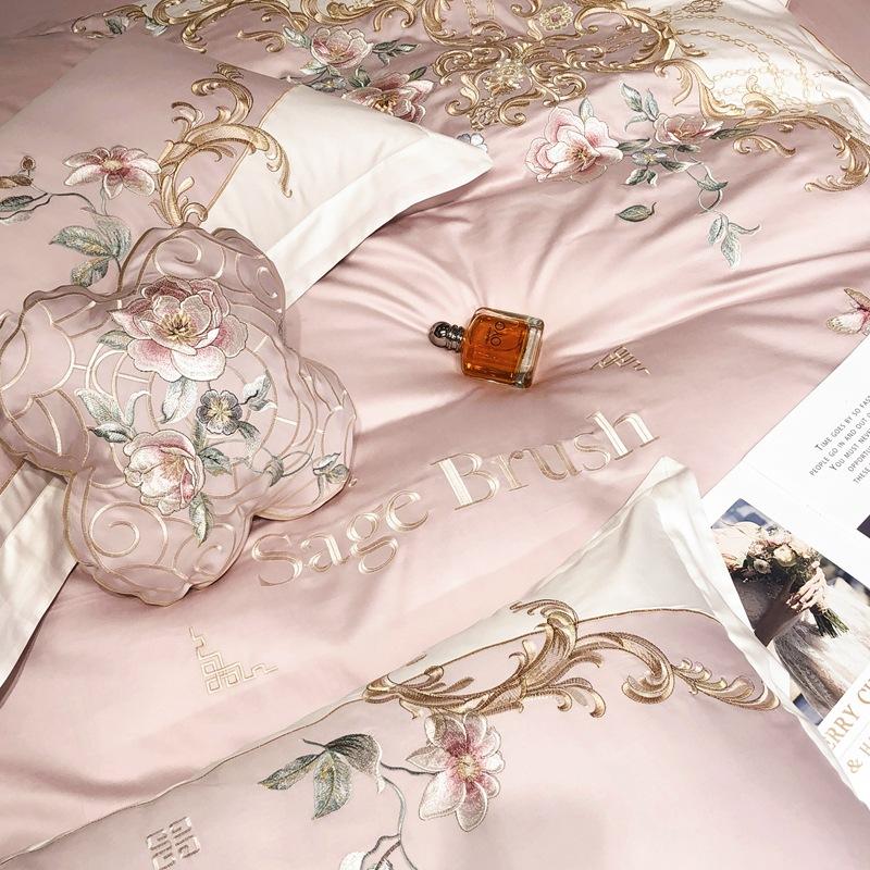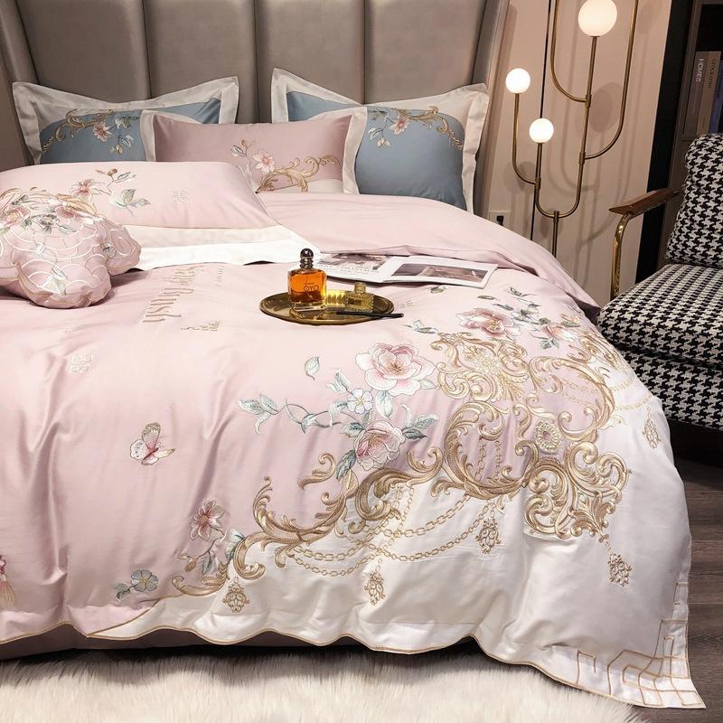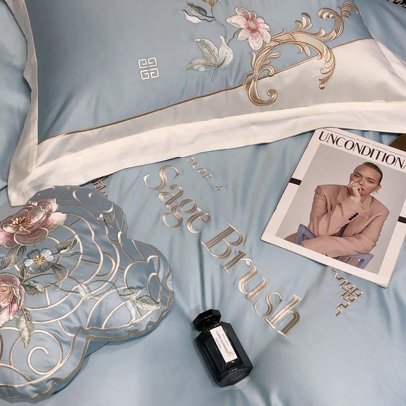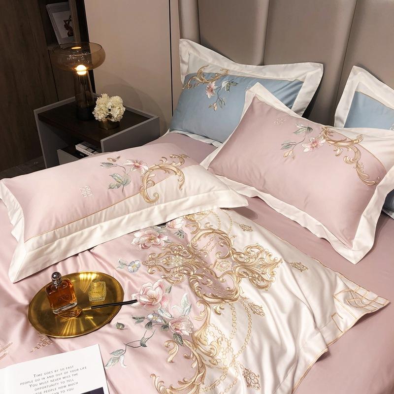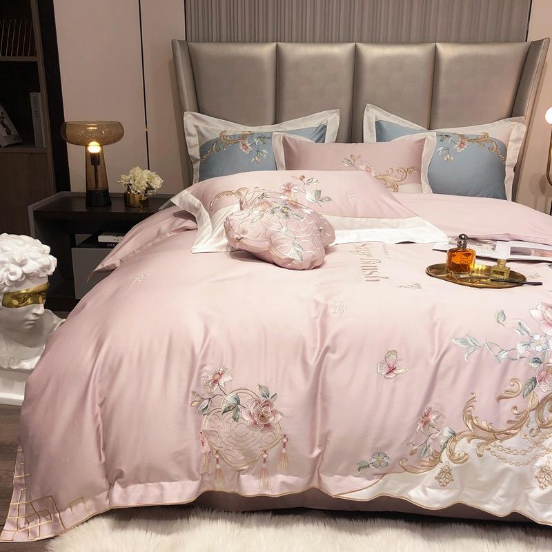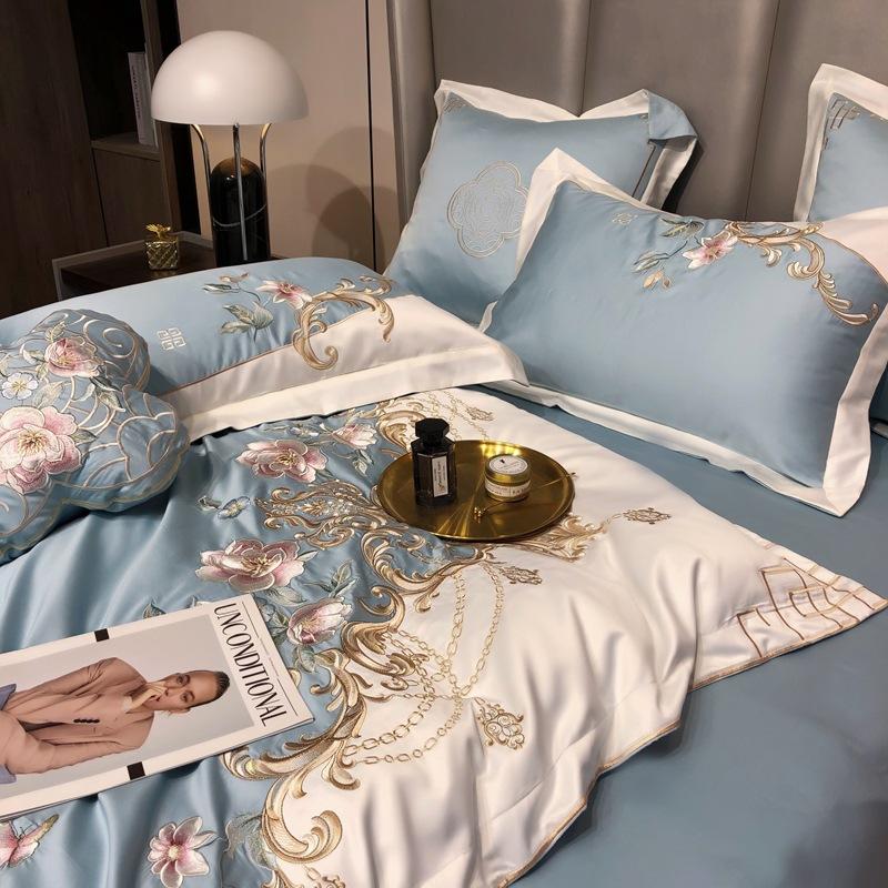 1 lençol de cama de cetim de algodão de fibra longa de quatro peças capa de edredom m roupa de cama de algodão bordado 20 estilo europeu