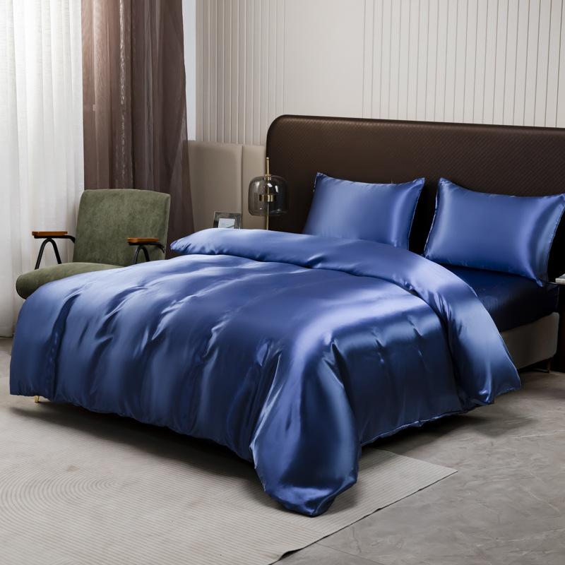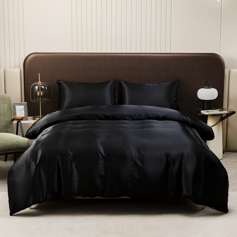 Conjunto de Cetim Roupa de Cama e Capa de Edredom Conjunto de Três Peças Comércio Exterior Transfronteiriço Cor Sólida Seda Lavada Estilo Popular para Todas as Estações