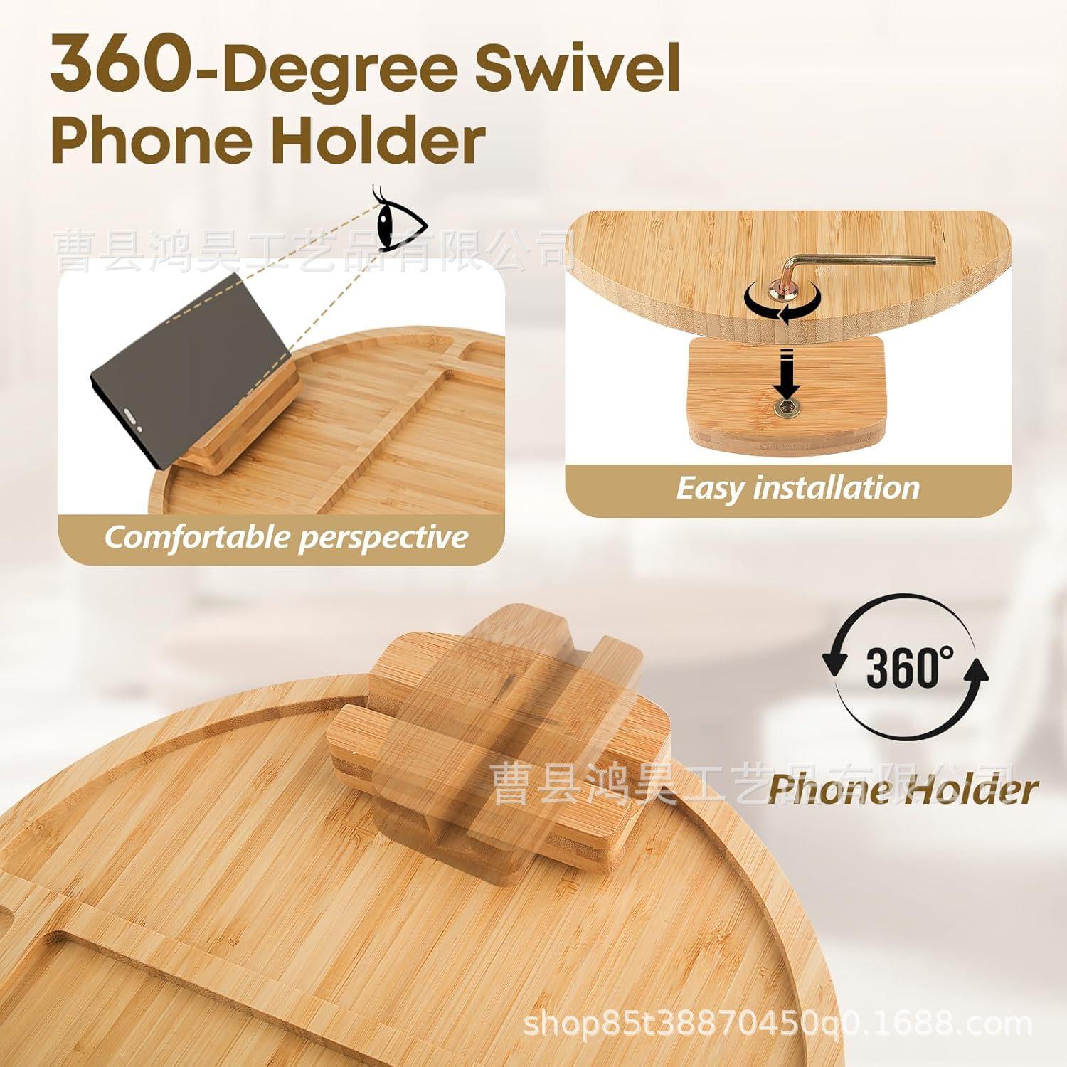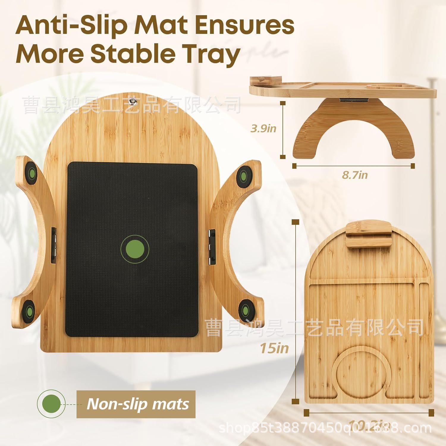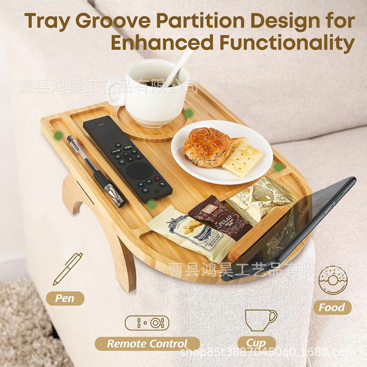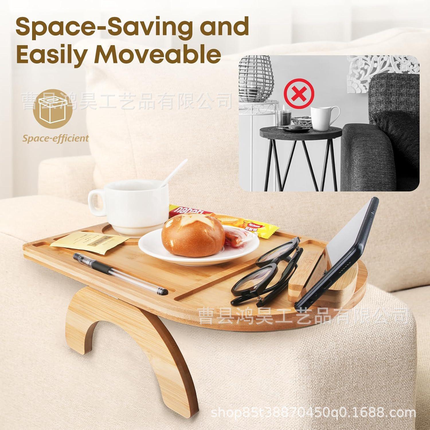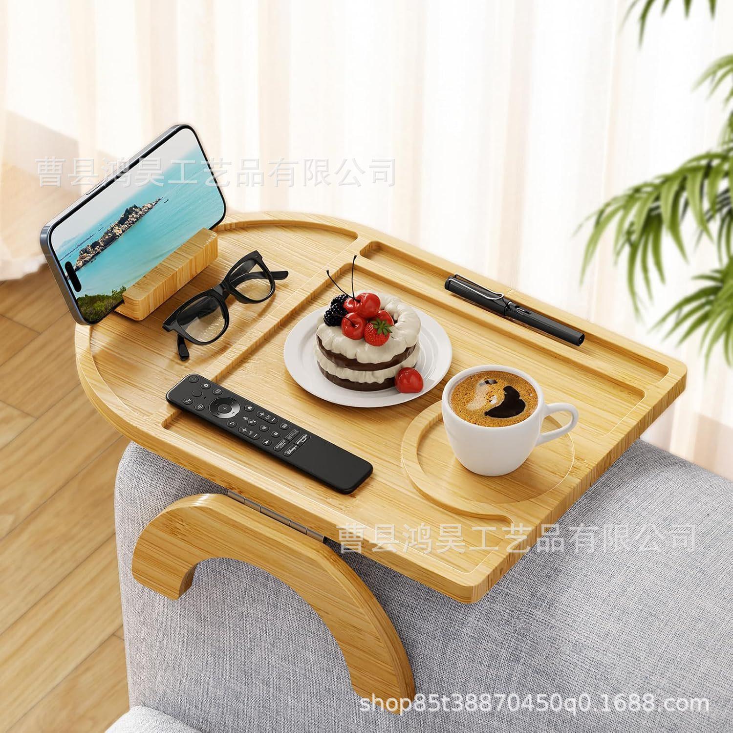 Mesa de bandeja de sofá de bambu com suporte para celular Bandeja dobrável para lanches de café Bandeja de armazenamento de lanches com controle remoto de madeira