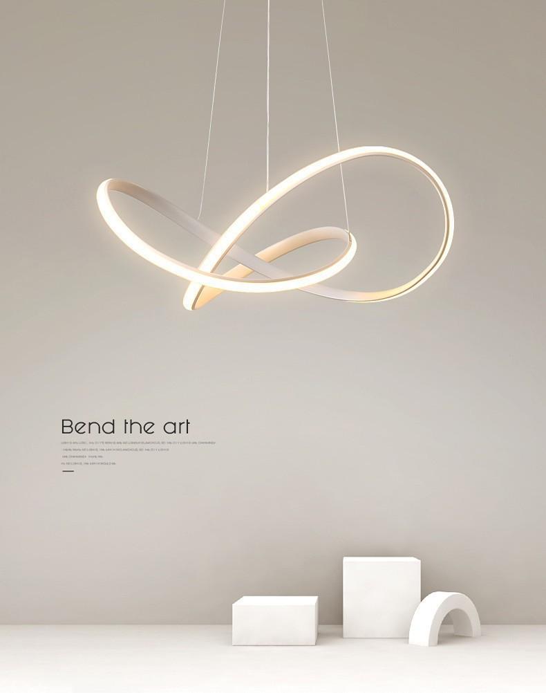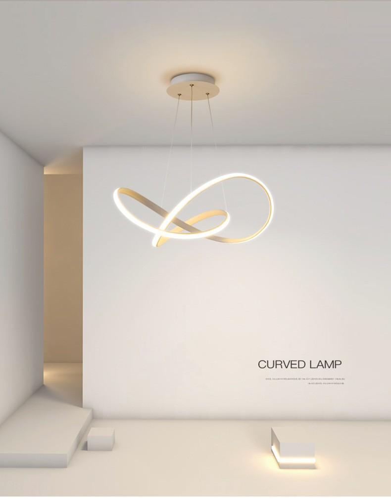 Luminária de restaurante minimalista, luminária de luxo, lustre de nota artística, designer criativo, lâmpada de tira longa, uma palavra, mesa de jantar, lâmpada de linha de bar