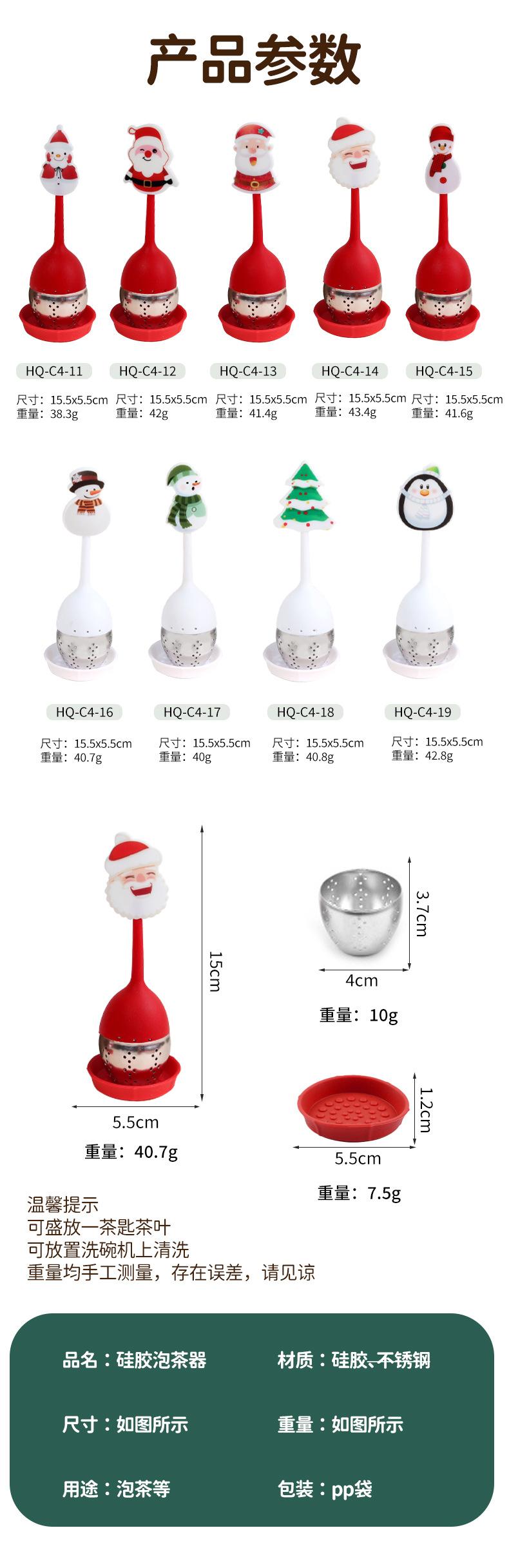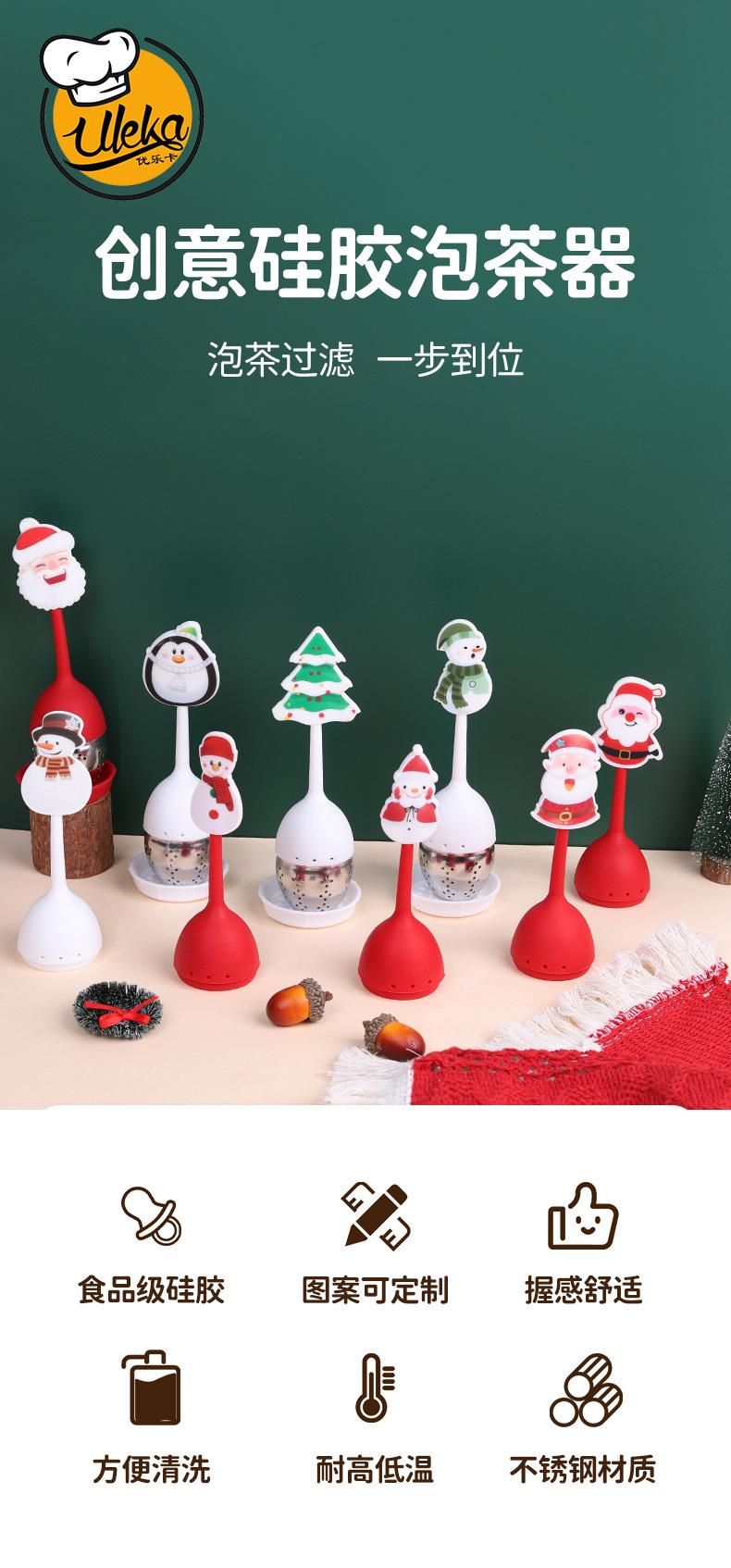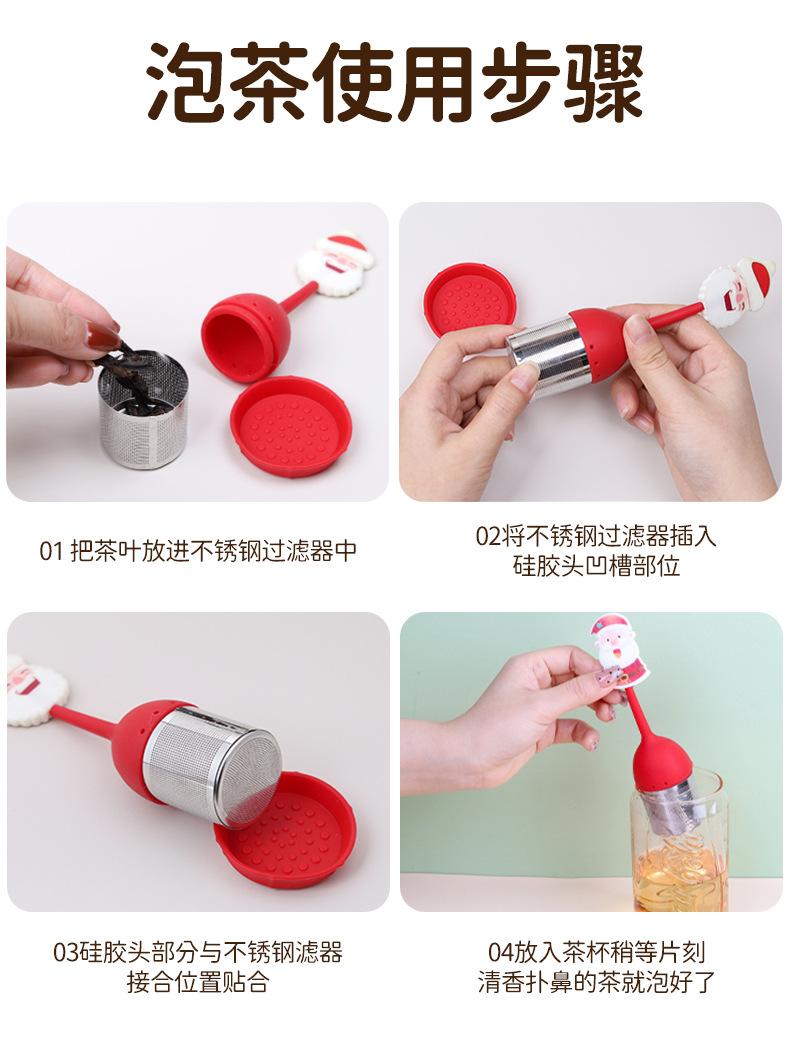 Coador de Chá Filtro de Chá Aço Inoxidável 304 Filtro de Chá Natal Coador de Chá de Silicone Novo Infusor de Chá Criativo com Alça Separador de Chá