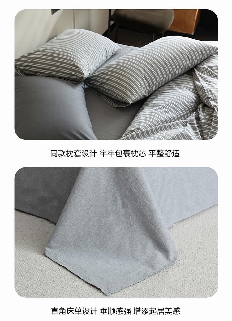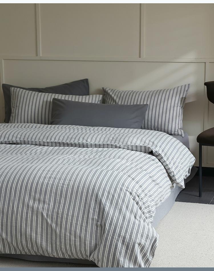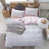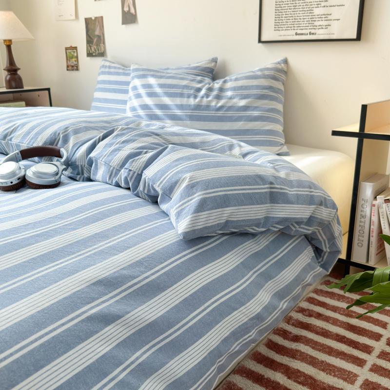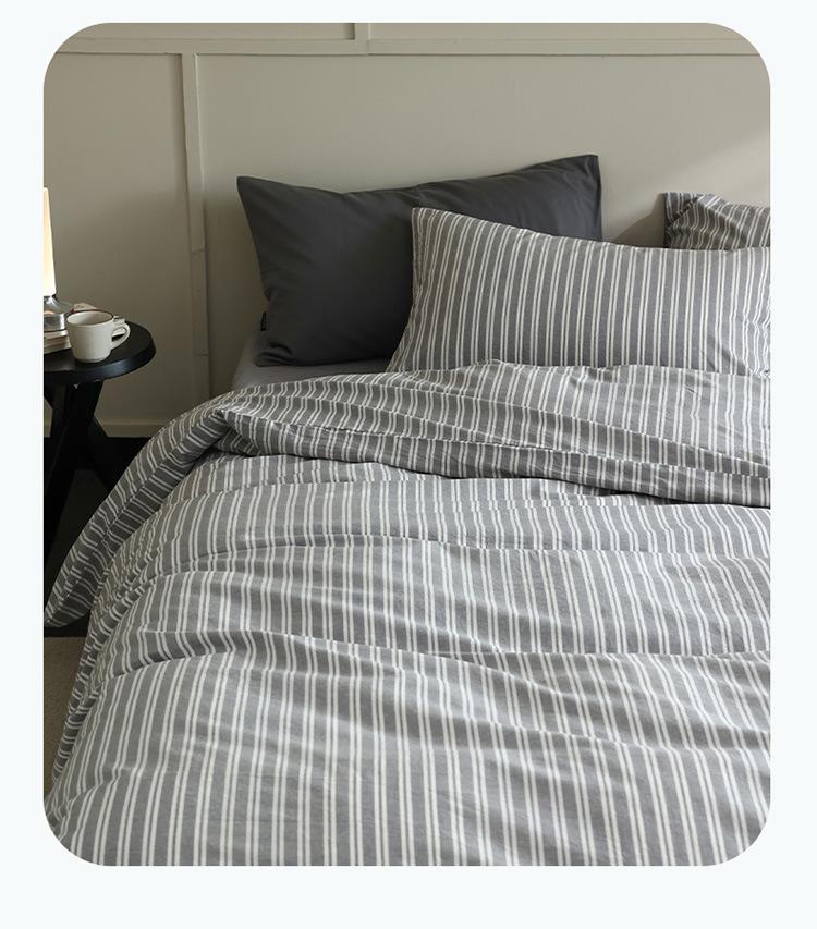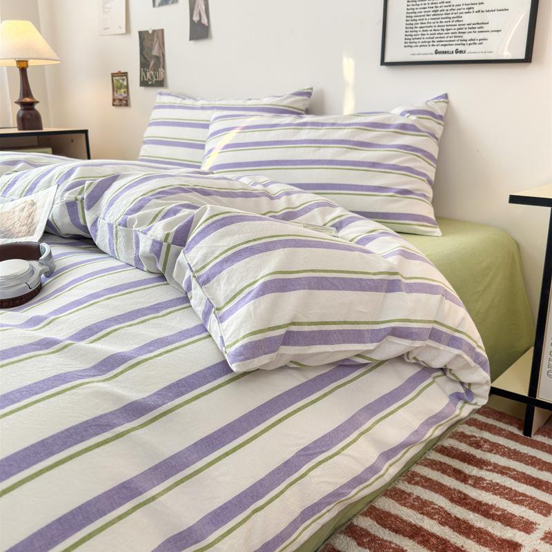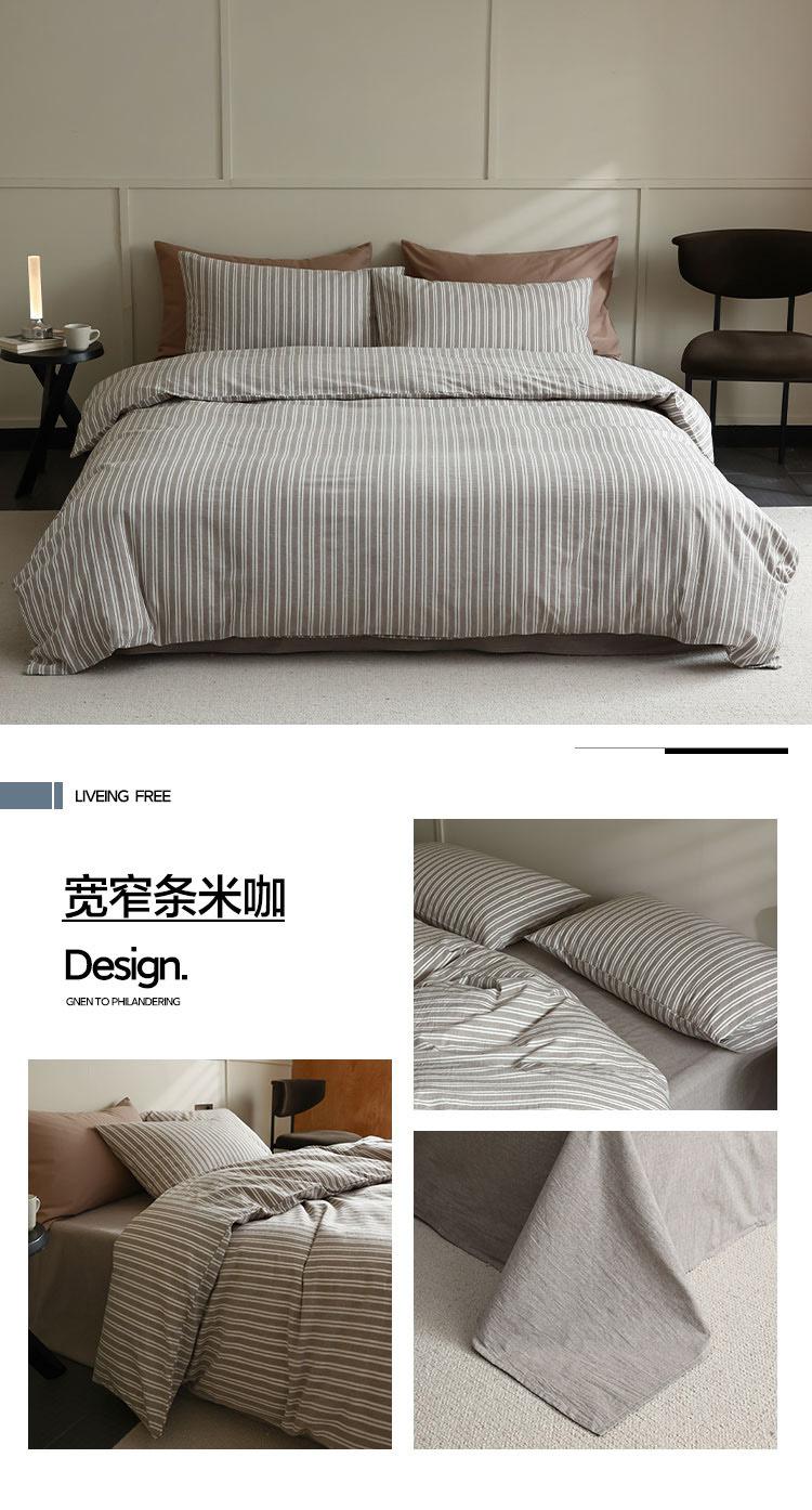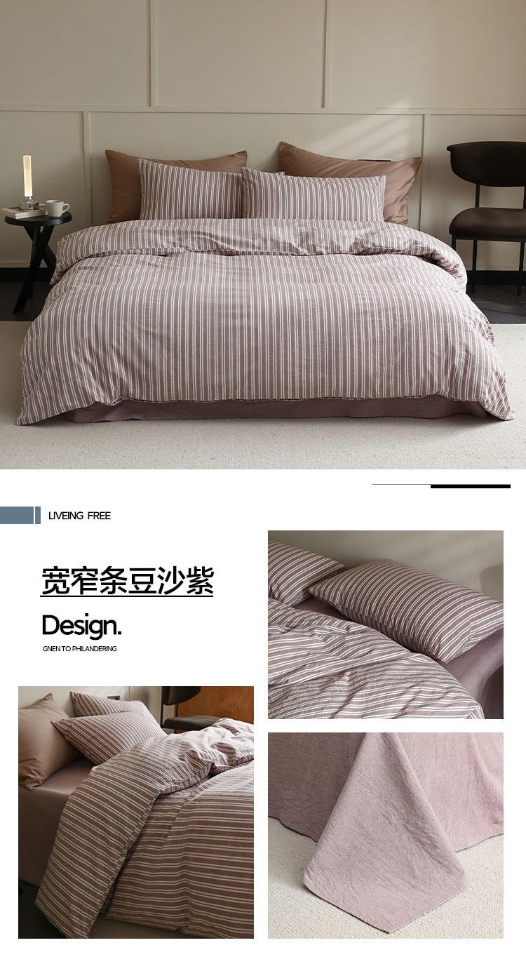 Conjunto de quatro peças de algodão lavado sem estampa em estilo japonês, kit de cama de algodão listrado, conjunto de algodão prateado, largo e estreito