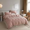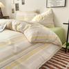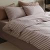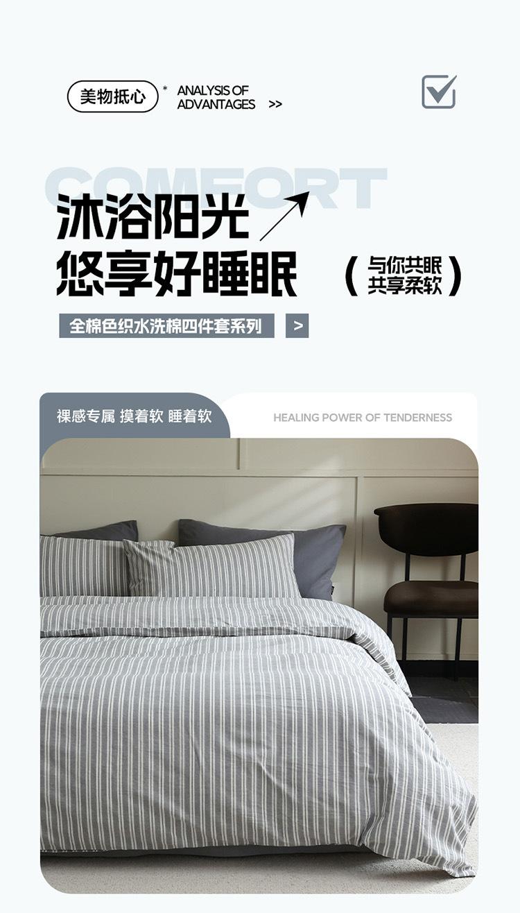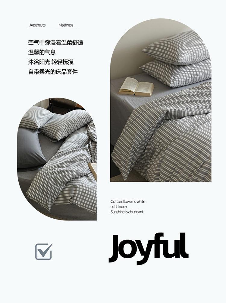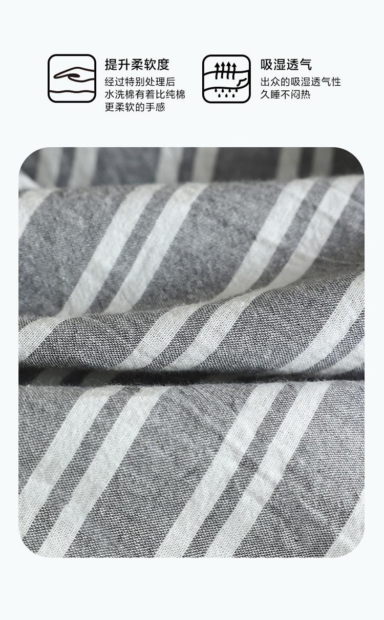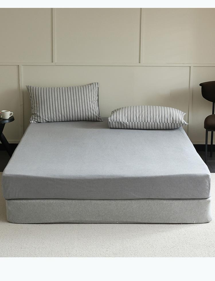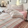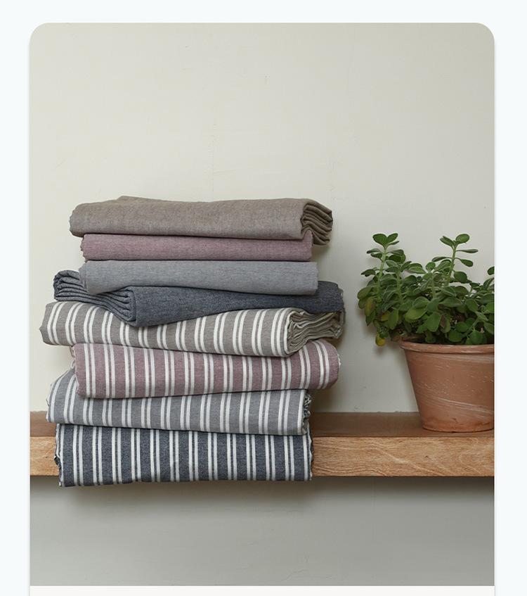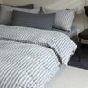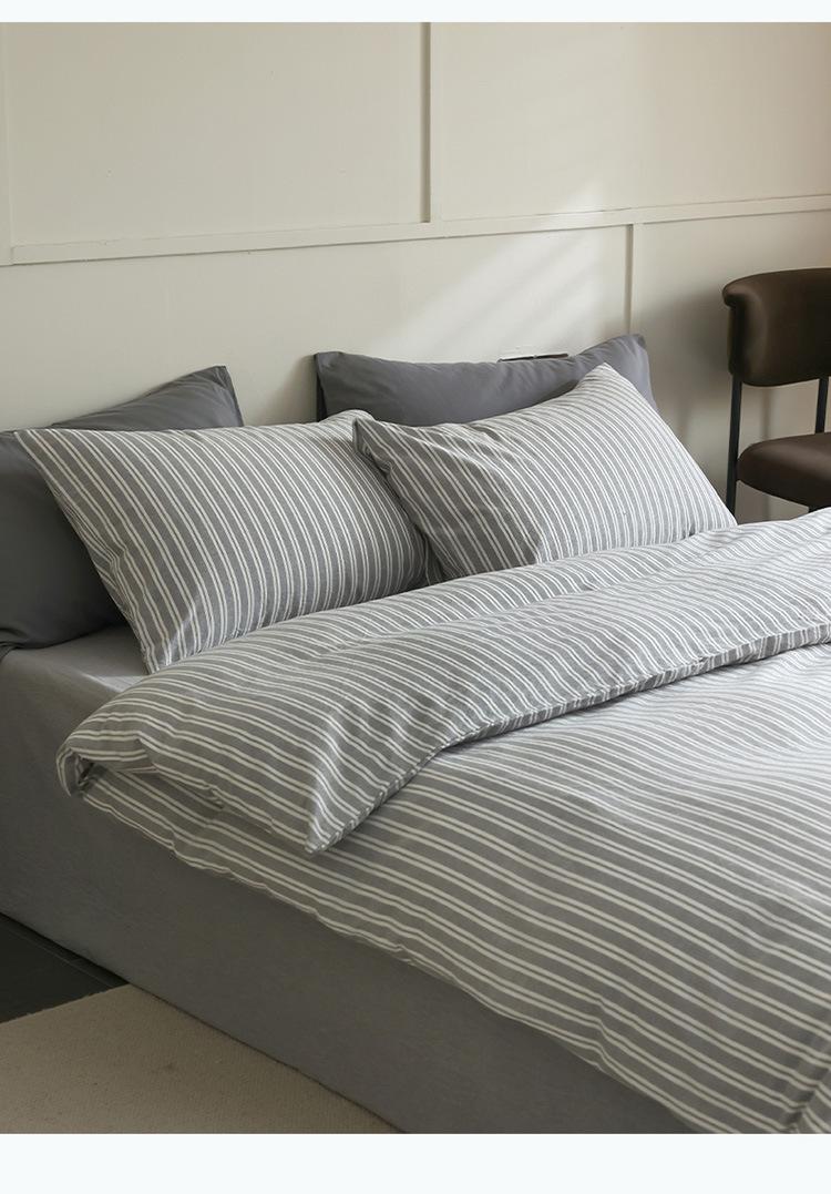 Conjunto de quatro peças de algodão lavado sem estampa em estilo japonês, kit de cama de algodão listrado, conjunto de algodão prateado, largo e estreito