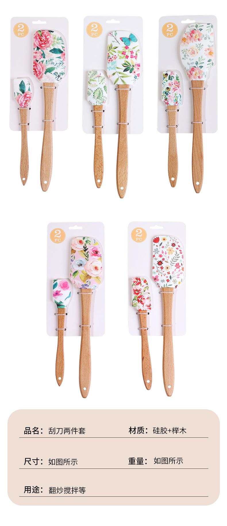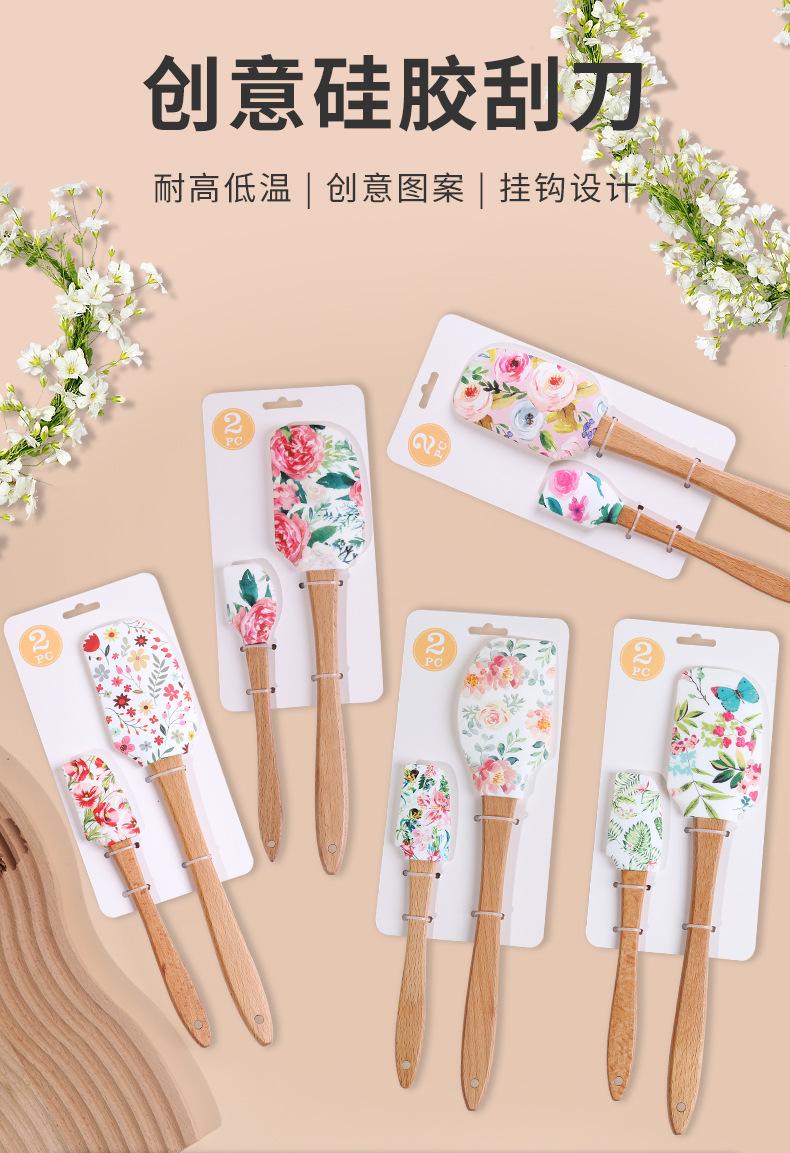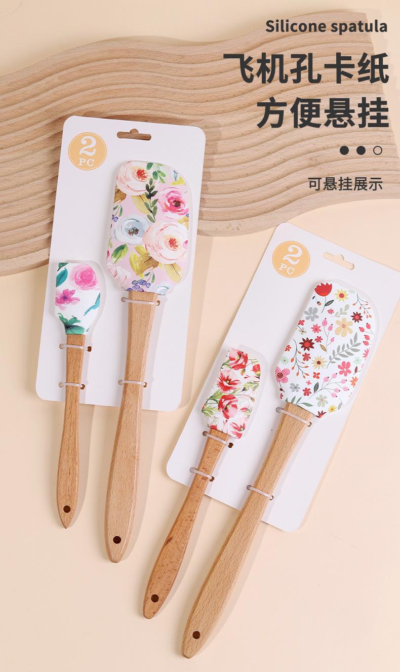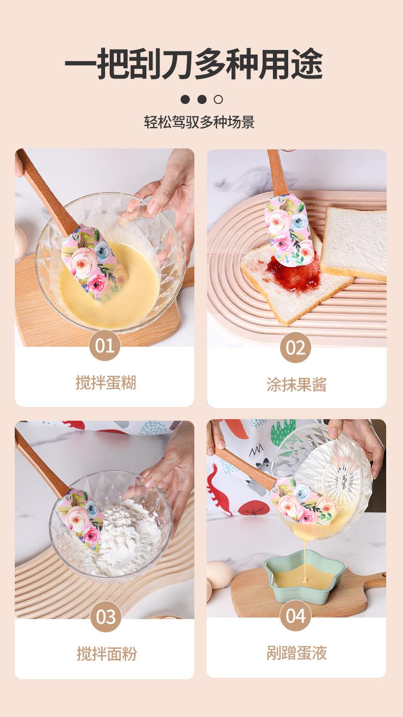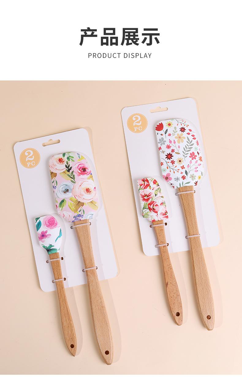 Espátula de Silicone Transfronteiriça Ferramentas de Confeitaria Conjunto Grande e Pequeno Espátula para Creme de Bolo Espátula com Cabo de Madeira Espátula para Confeitaria Espátula Macia