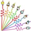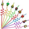 Canudo de fruta luminoso PET espiral canudo desenho animado bonito palha fivela patch grau alimentício cor curva