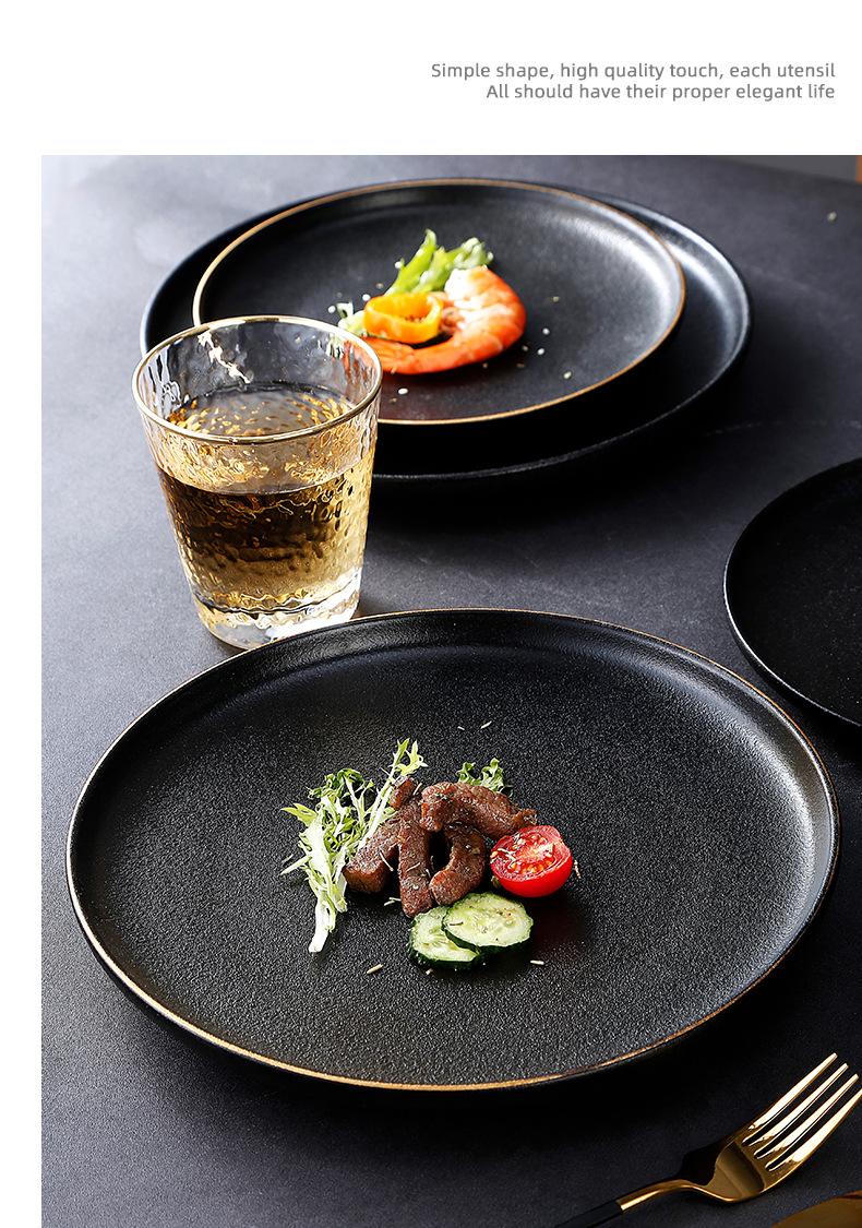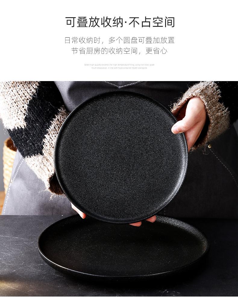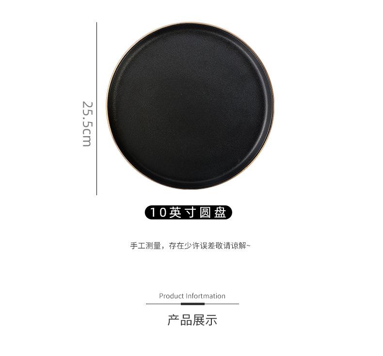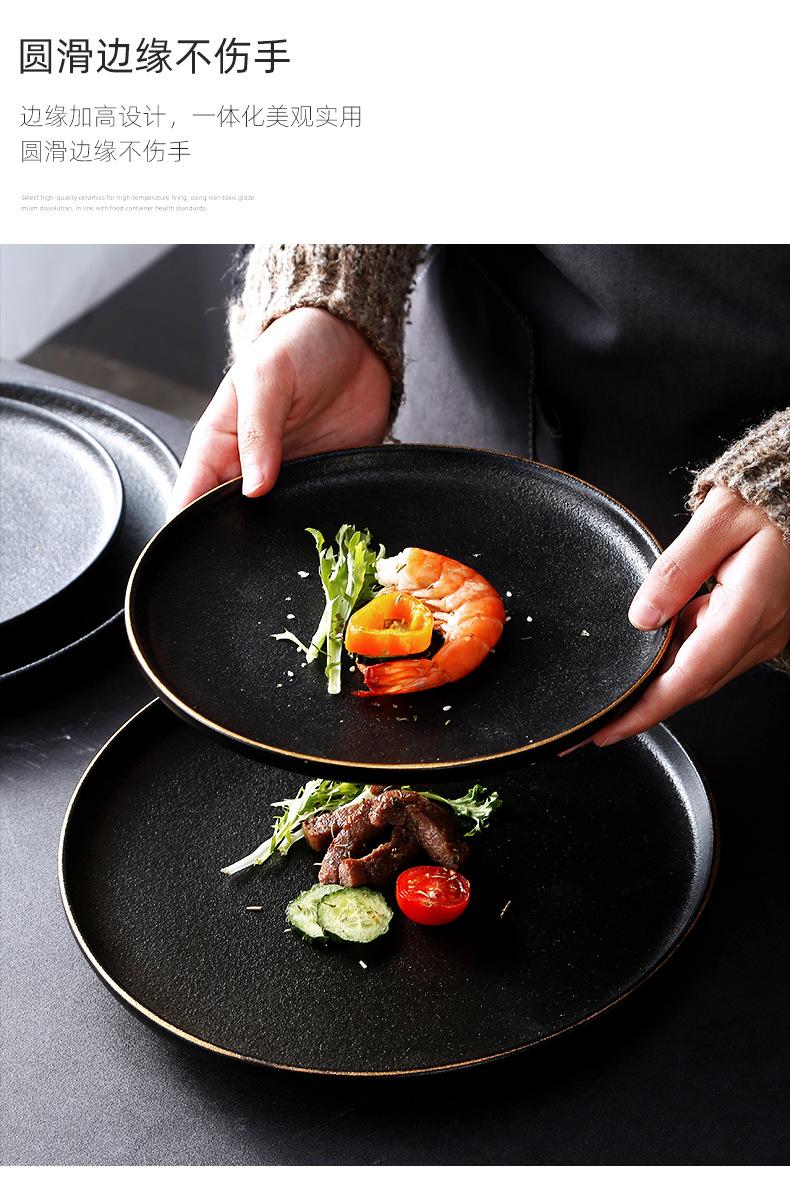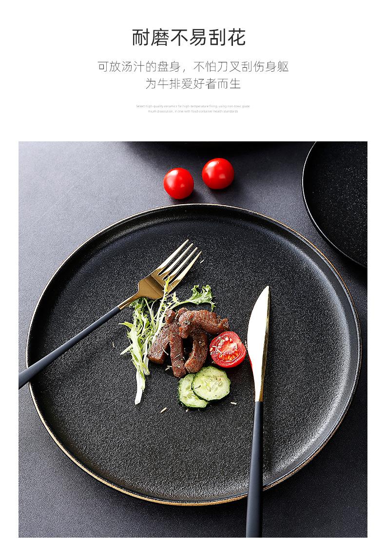 Hotel Plate Household Western Food Plate Frosted Round Steak Plate Creative Restaurant Black Steak Plate Prato Plano