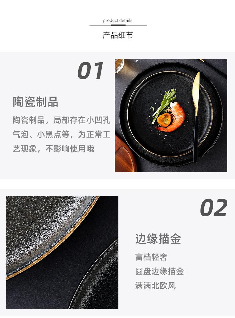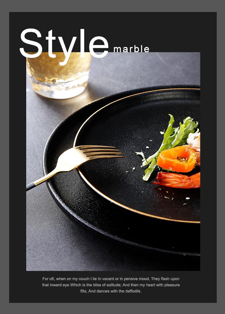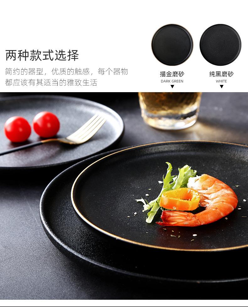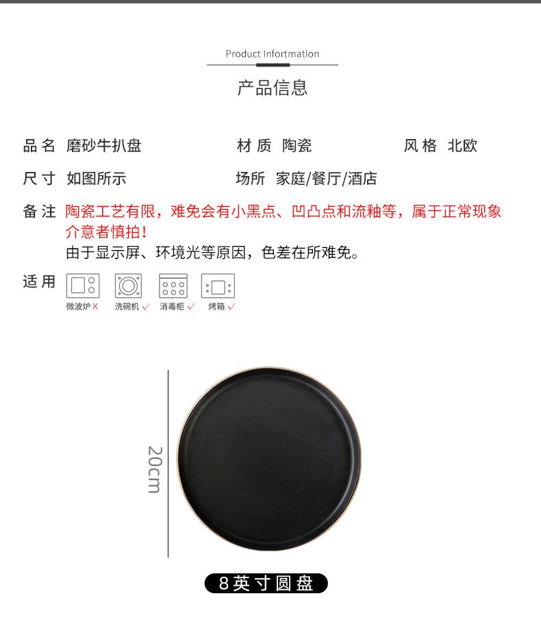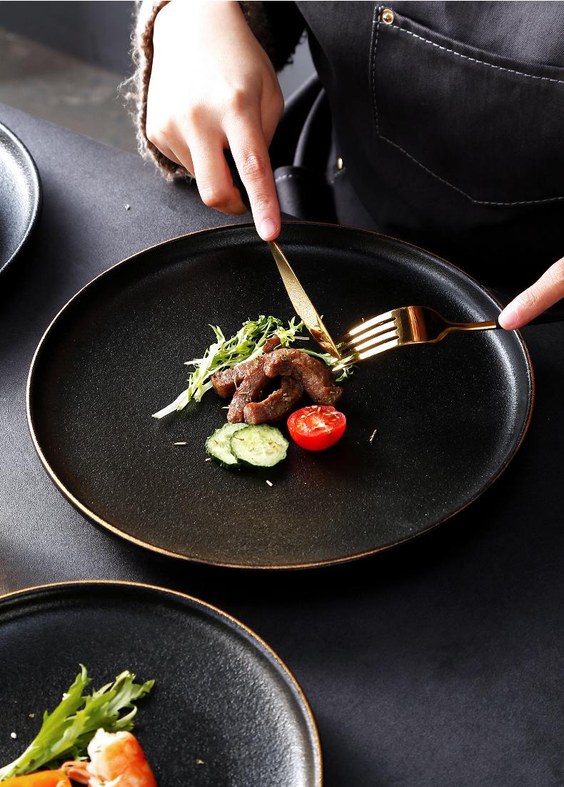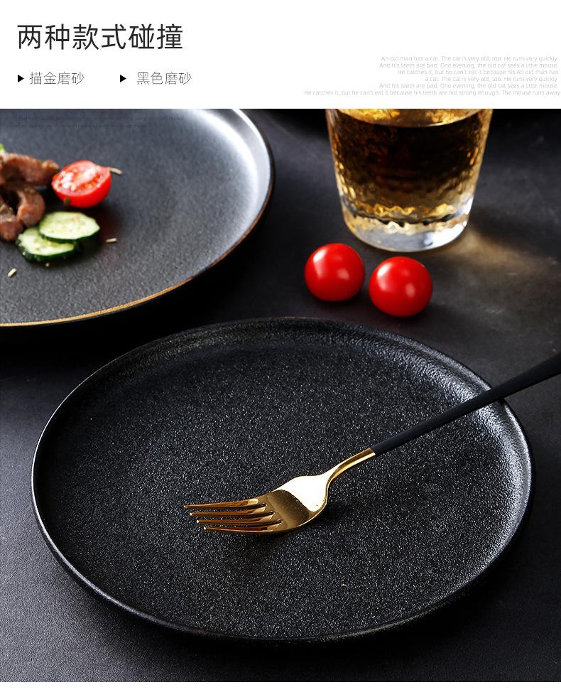 Hotel Plate Household Western Food Plate Frosted Round Steak Plate Creative Restaurant Black Steak Plate Prato Plano