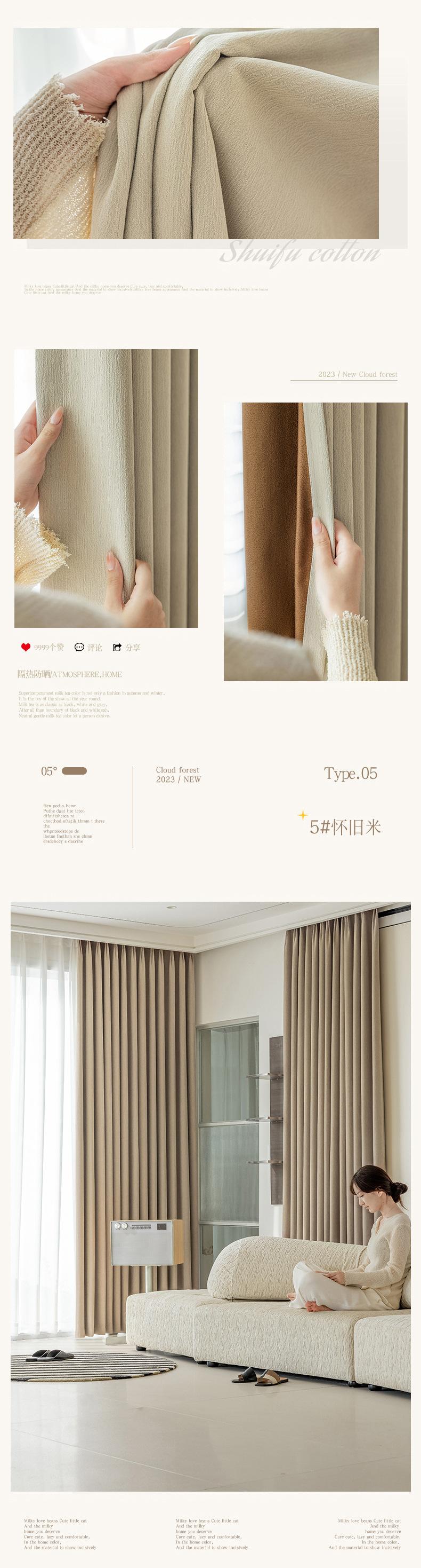 Cortinas Jacquard Chenille Estilo Creme Quarto Blackout Cortinas High-End Veludo Folha de Pinheiro 2025 Novas Cortinas com Sensação de Veludo