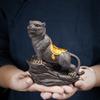 A parte branca na barriga e no rosto do sapo é uma camada de lama branca clara. É normal ficar preta facilmente depois de ser despejada com chá. Se você se importar, é recomendado não despejar chá nela.