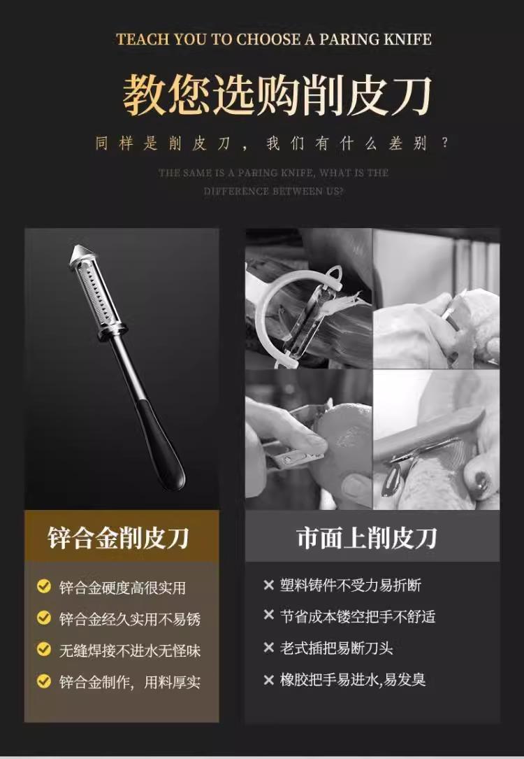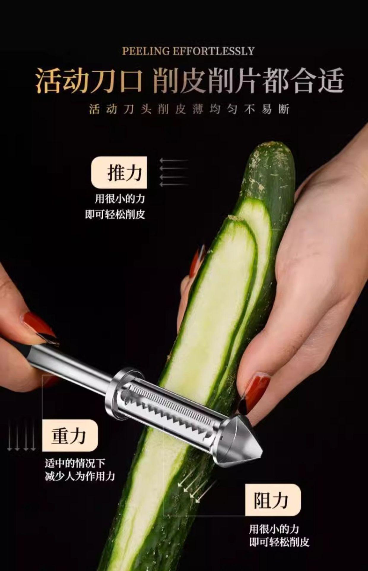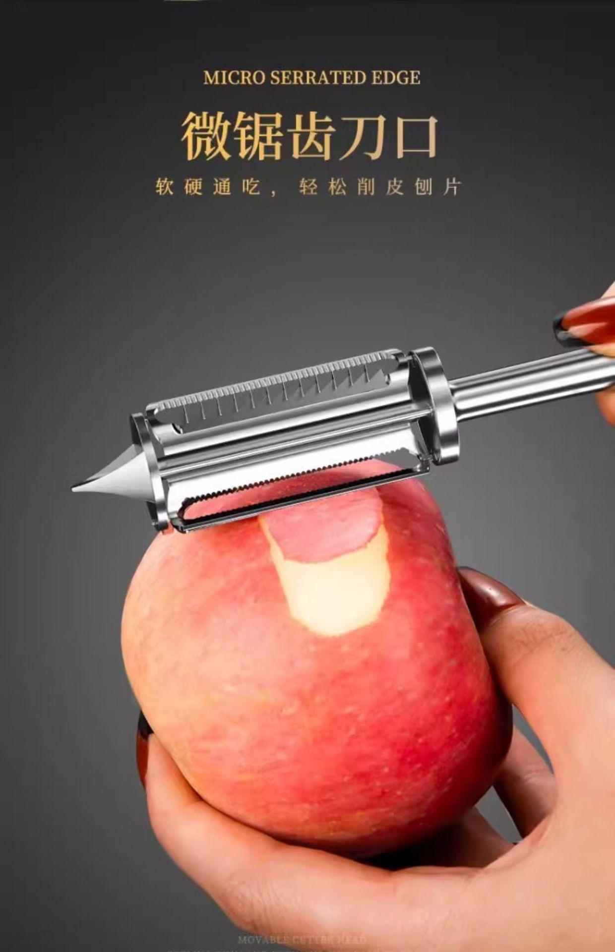 Descascador de dupla face para cozinha doméstica, aço inoxidável, raspador de frutas multifuncional, faca de descascar, descascador três em um