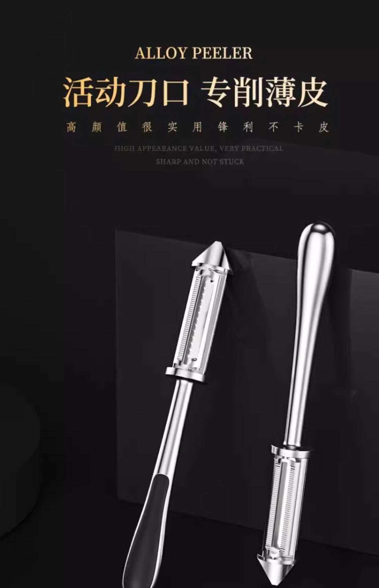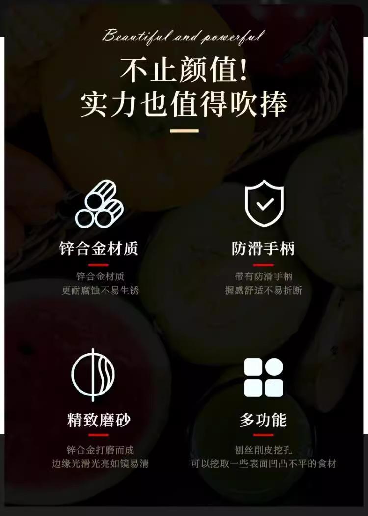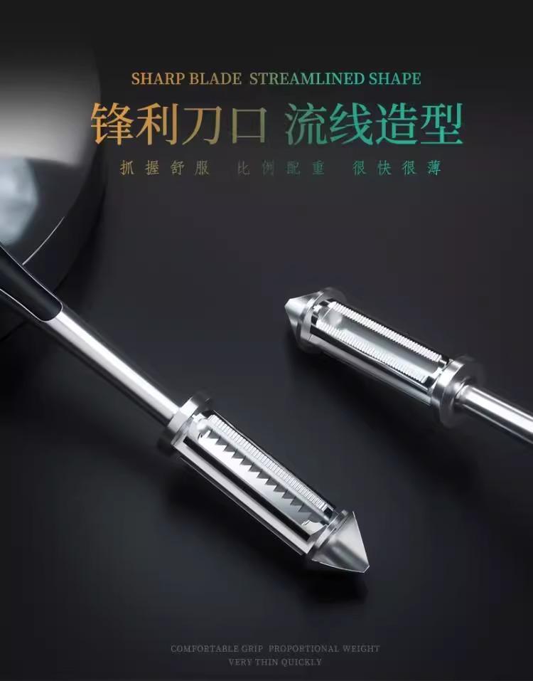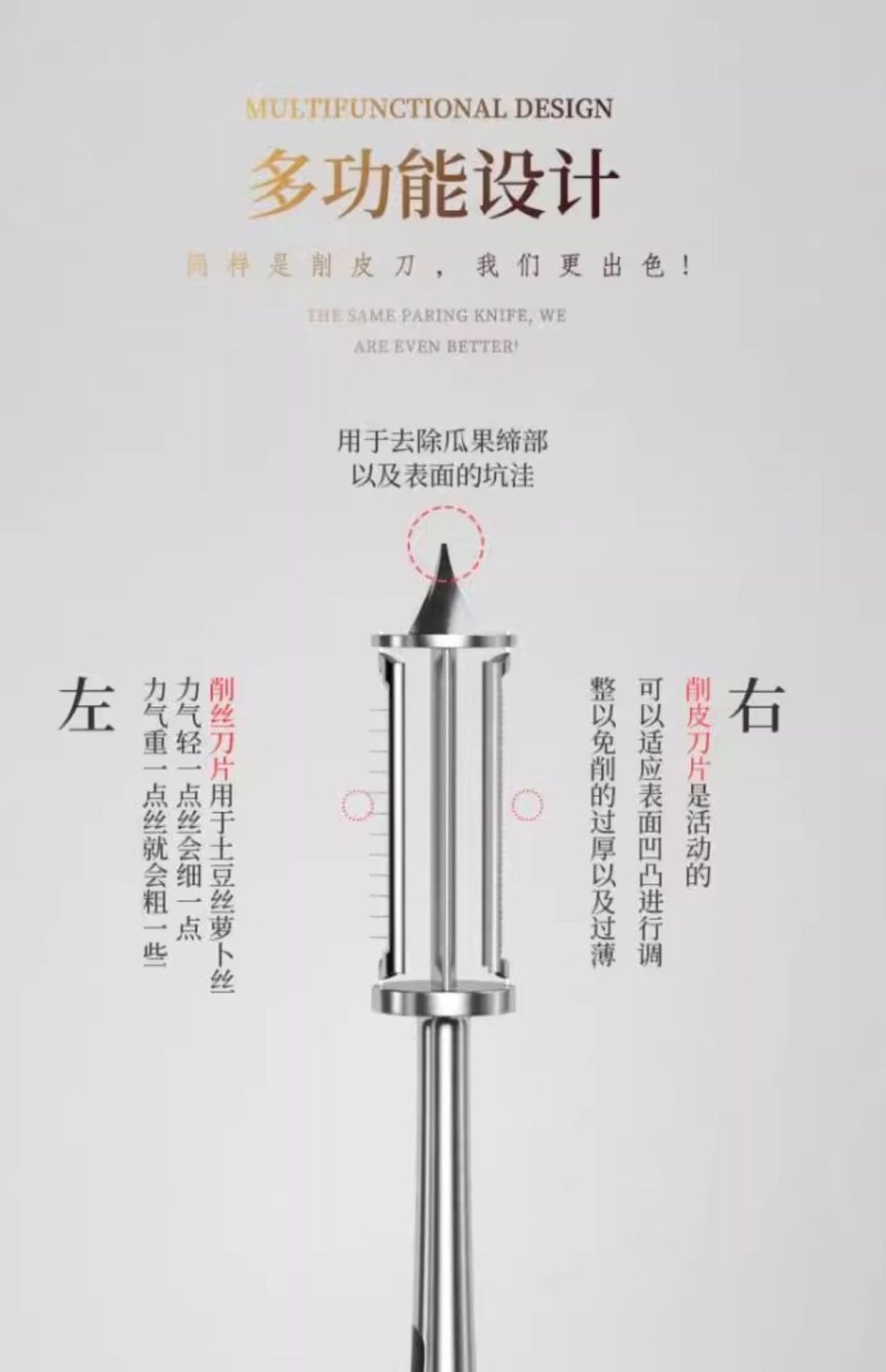 Descascador de dupla face para cozinha doméstica, aço inoxidável, raspador de frutas multifuncional, faca de descascar, descascador três em um