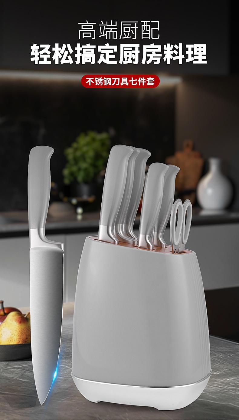Compre Conjunto de 7 peças de facas de chef com cabo oco, conjunto de facas de cozinha de aço inoxidável para fatias domésticas, conjunto de facas de cozinha para presente Yangjiang no atacado no Joom.pro