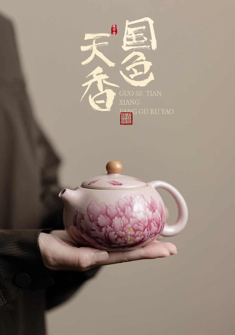 Pó antigo de alta qualidade Ru Peony Xi Shi Pot Bule de cerâmica Bule de filtro Abertura de chá Kung Fu Conjunto de chá Máquina de chá