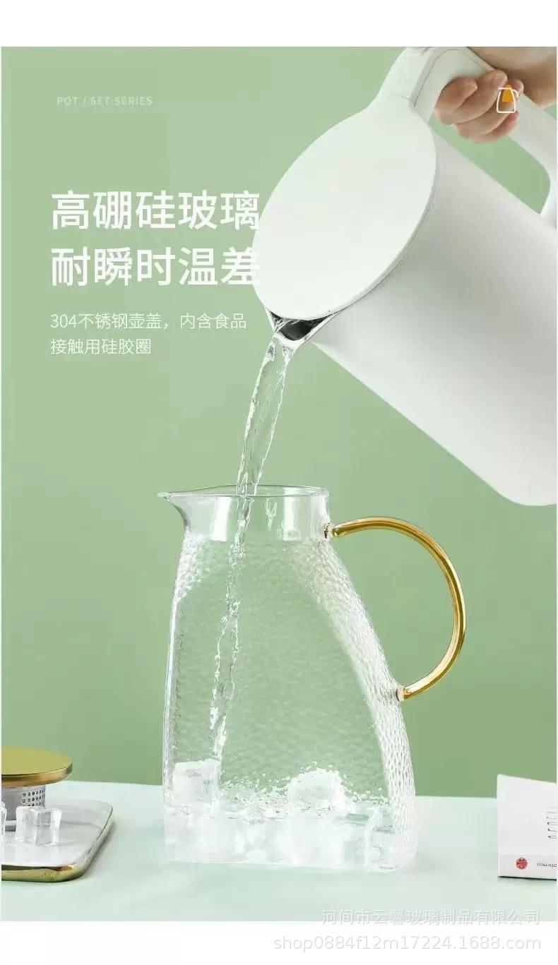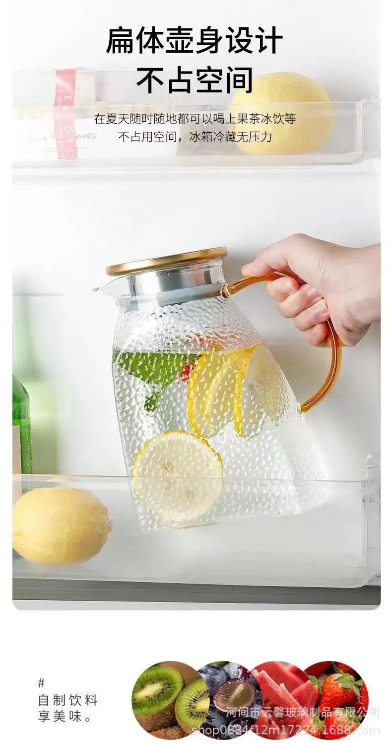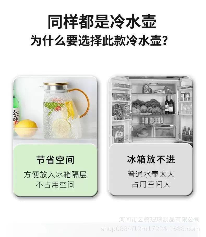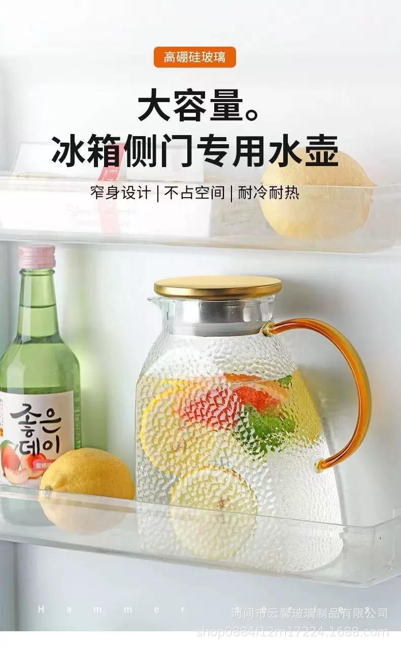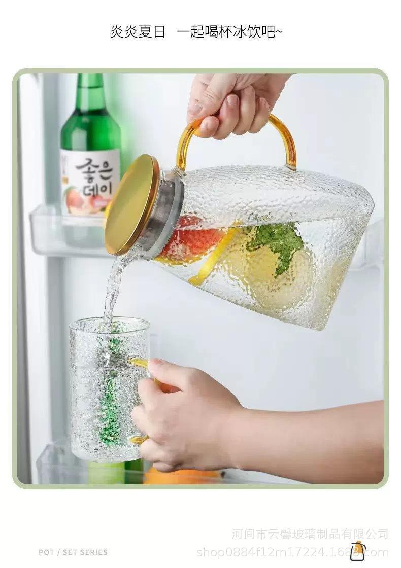 Novo estilo simples geladeira chaleira de água fria grande capacidade doméstico alto boro silicone chaleira de água fria suco chá bebida pote de vidro resistente ao calor