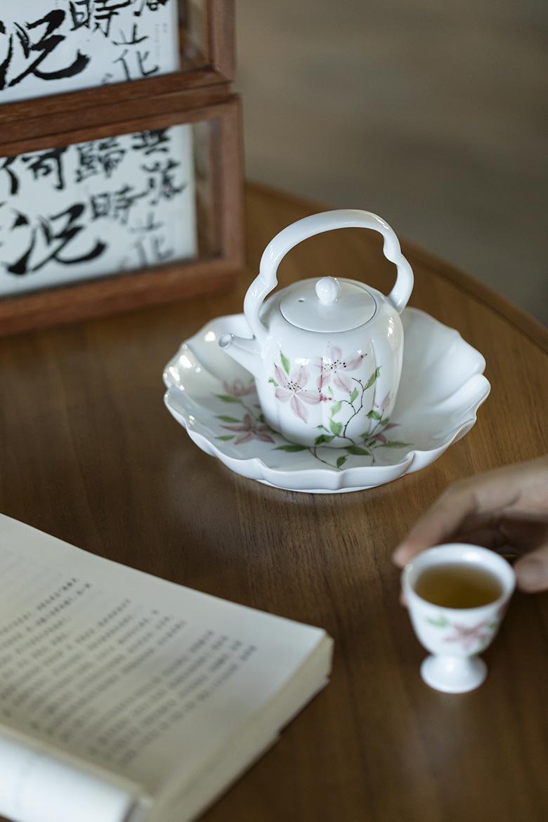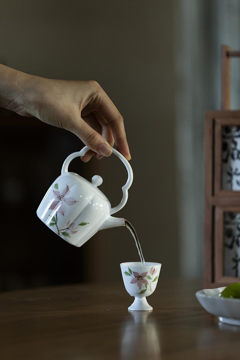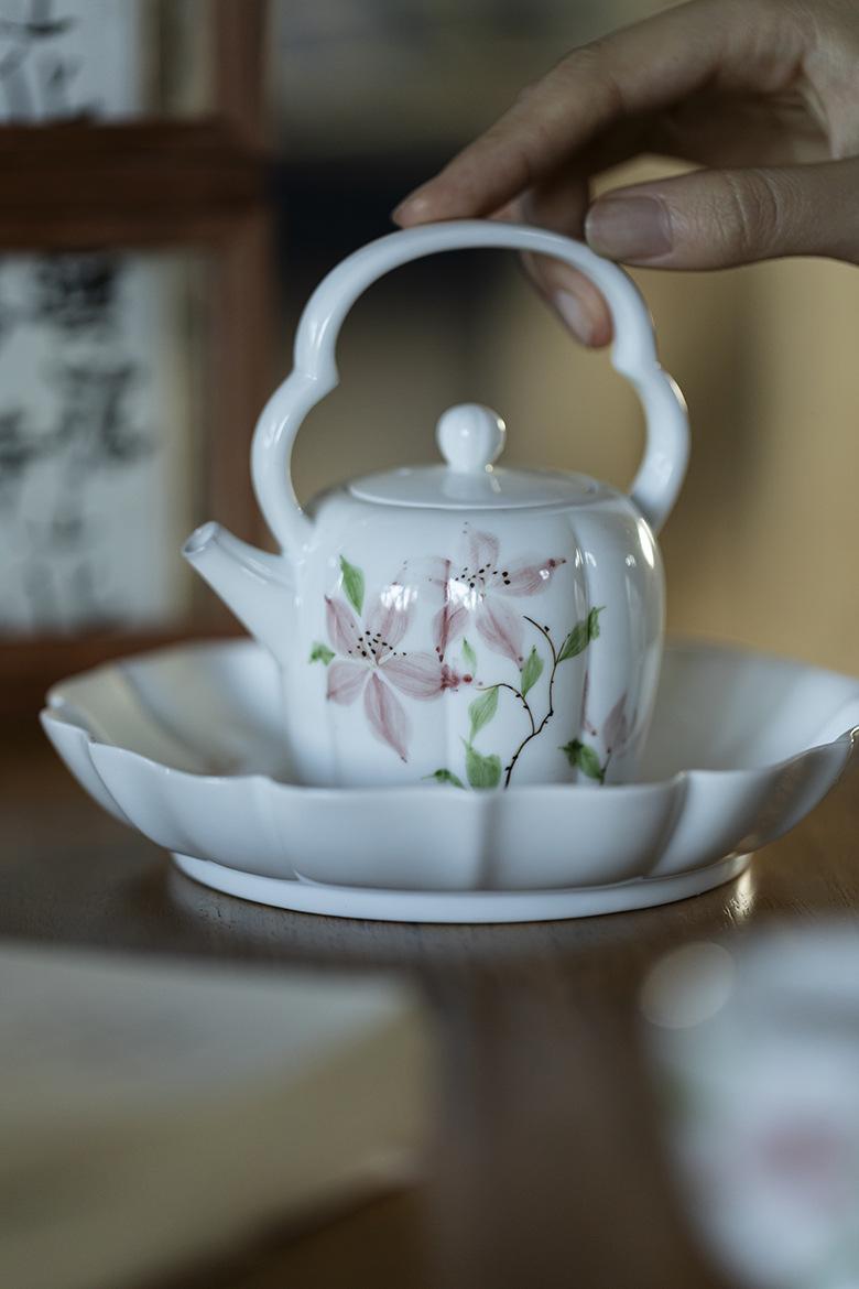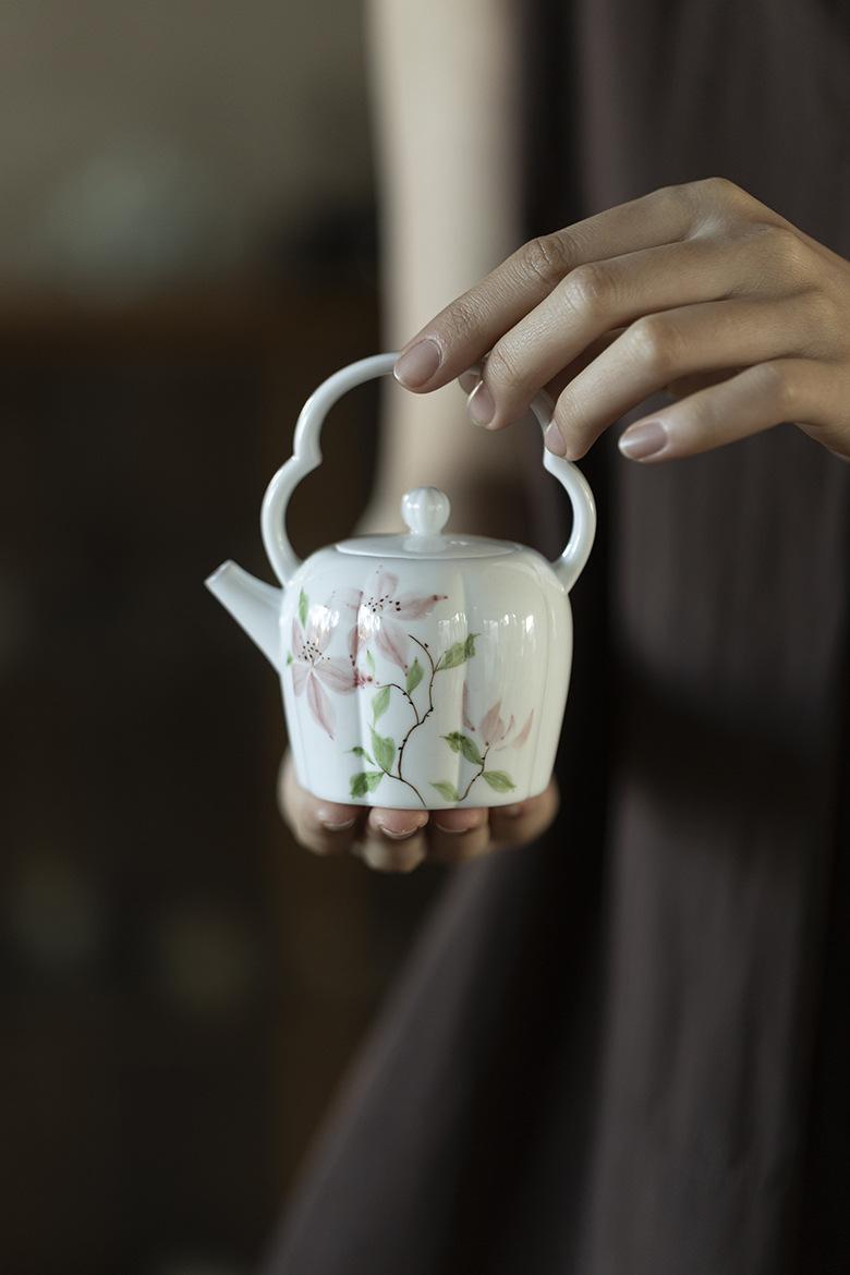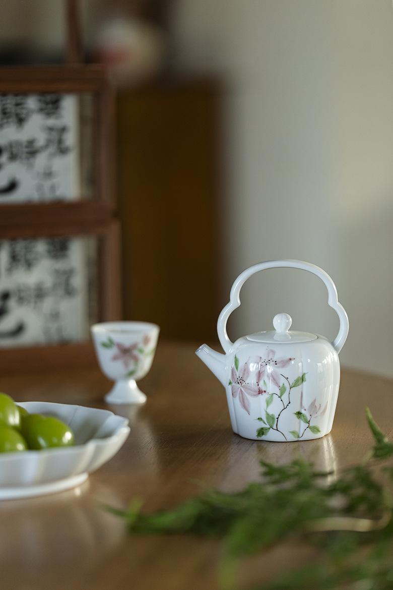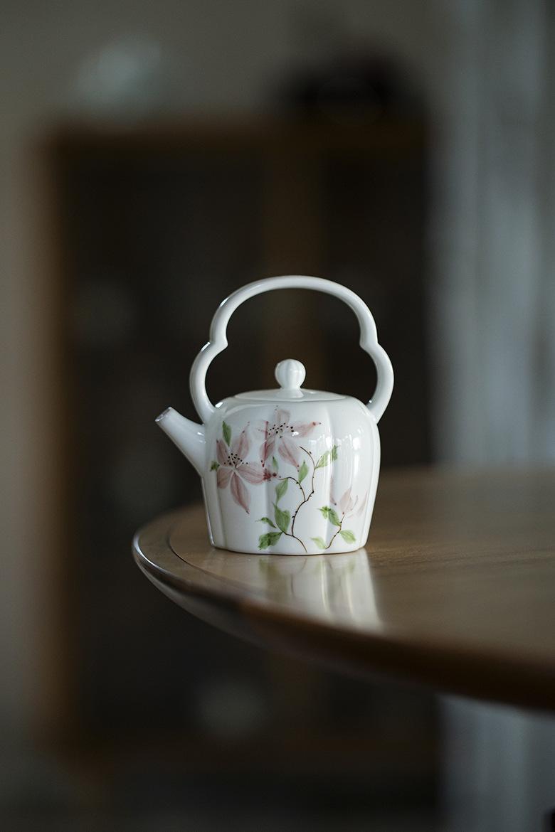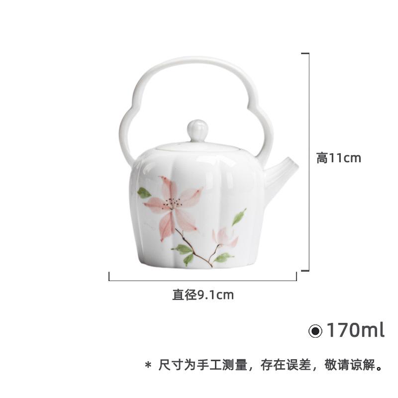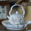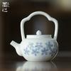 Bule de Porcelana Branca Pintado à Mão em Estilo Chinês com Alça, Jogo de Chá Kung Fu, Bule Doméstico de Cerâmica com Filtro de Furos Anti-Escaldante