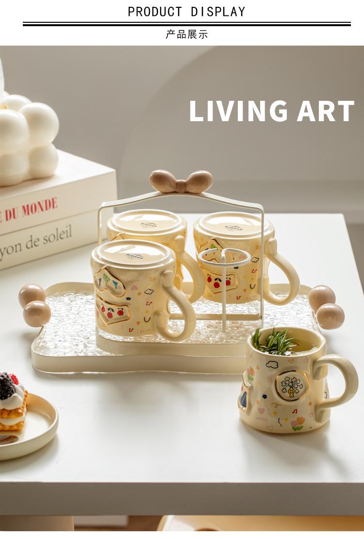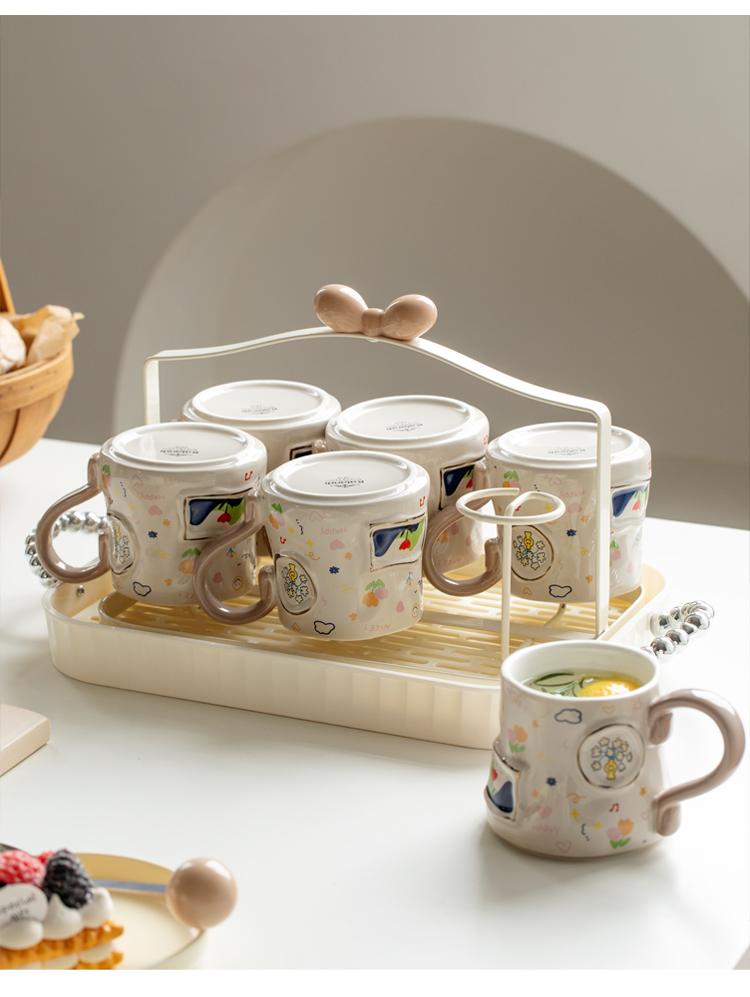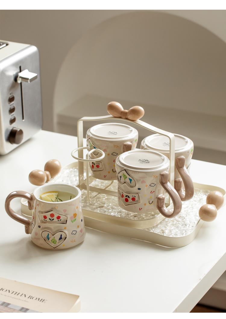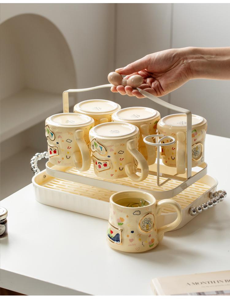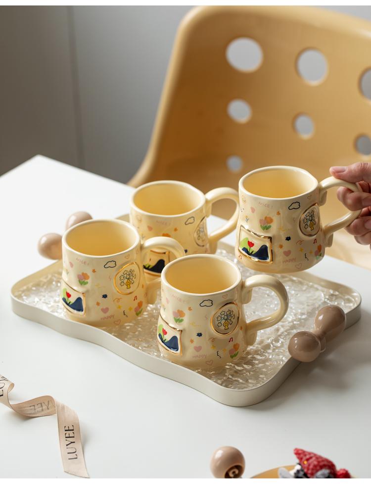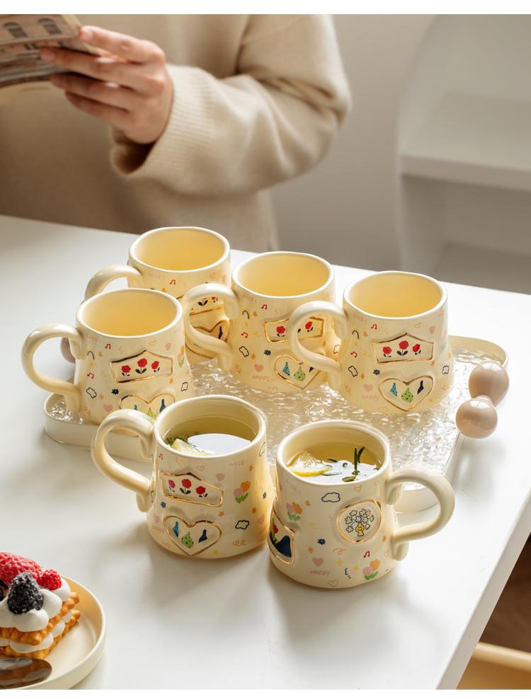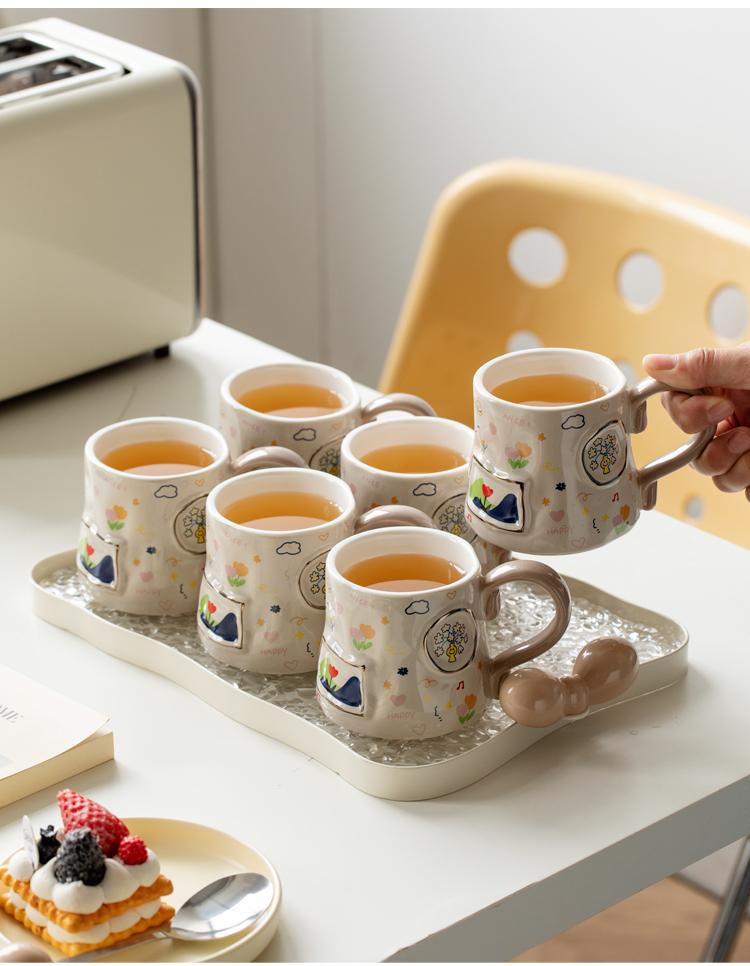 Copo de água terno doméstico copo de cerâmica hospitalidade copo de água potável sala de estar caneca de alto valor de cor conjunto de chá feminino conjunto de chá