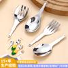 Colher de garfo com cabo longo para crianças, hardware semiacabado, plug-in, aço inoxidável 304, colher para comer de bebê, garfo de frutas, acessórios de silicone