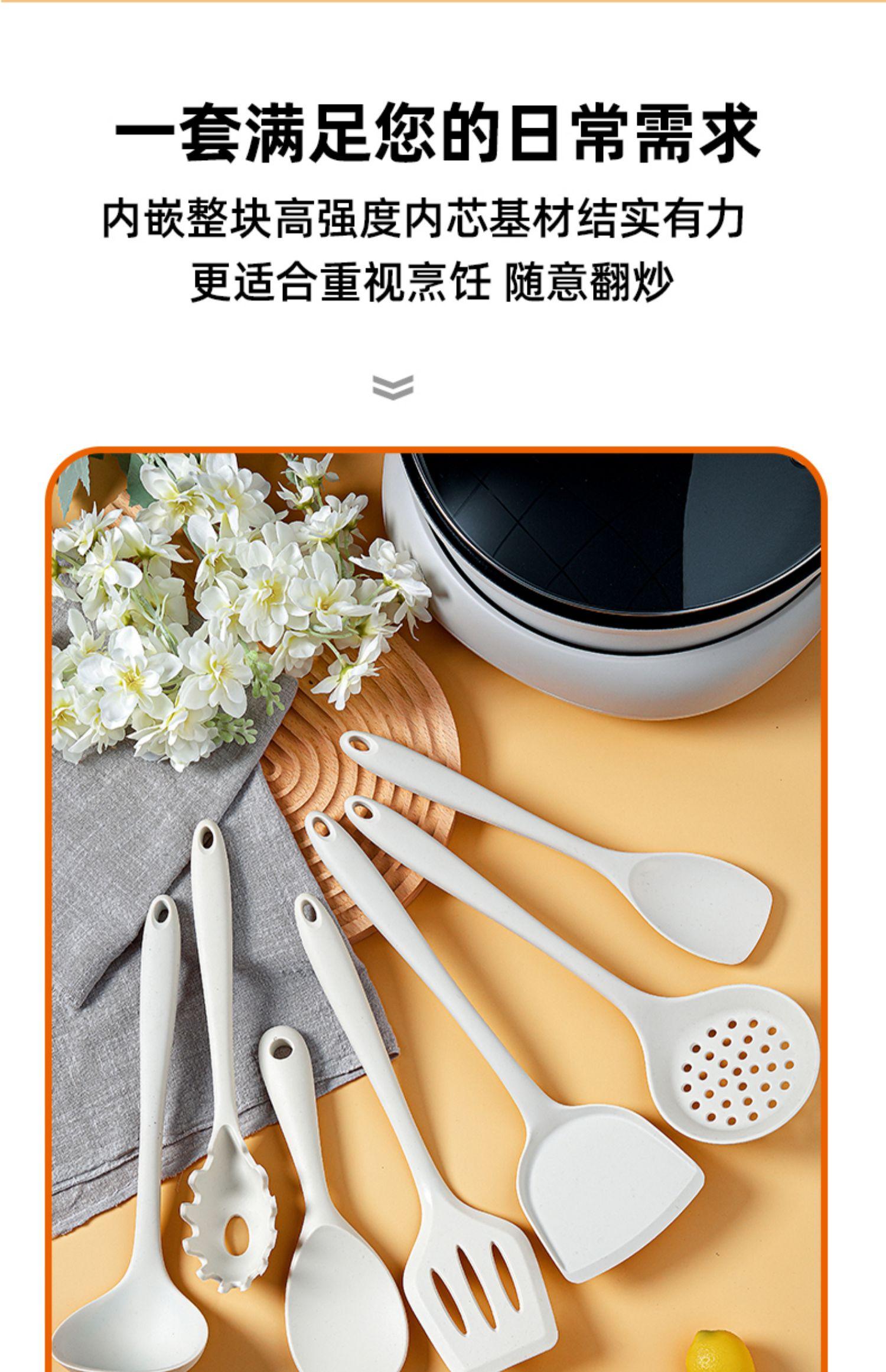 Espátula de silicone antiaderente panela utensílios de cozinha domésticos alta temperatura resistente fritura pá colher sopa escorredor terno