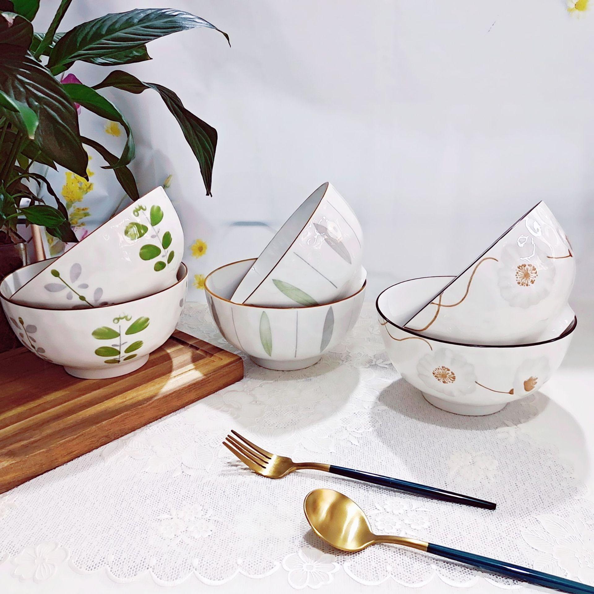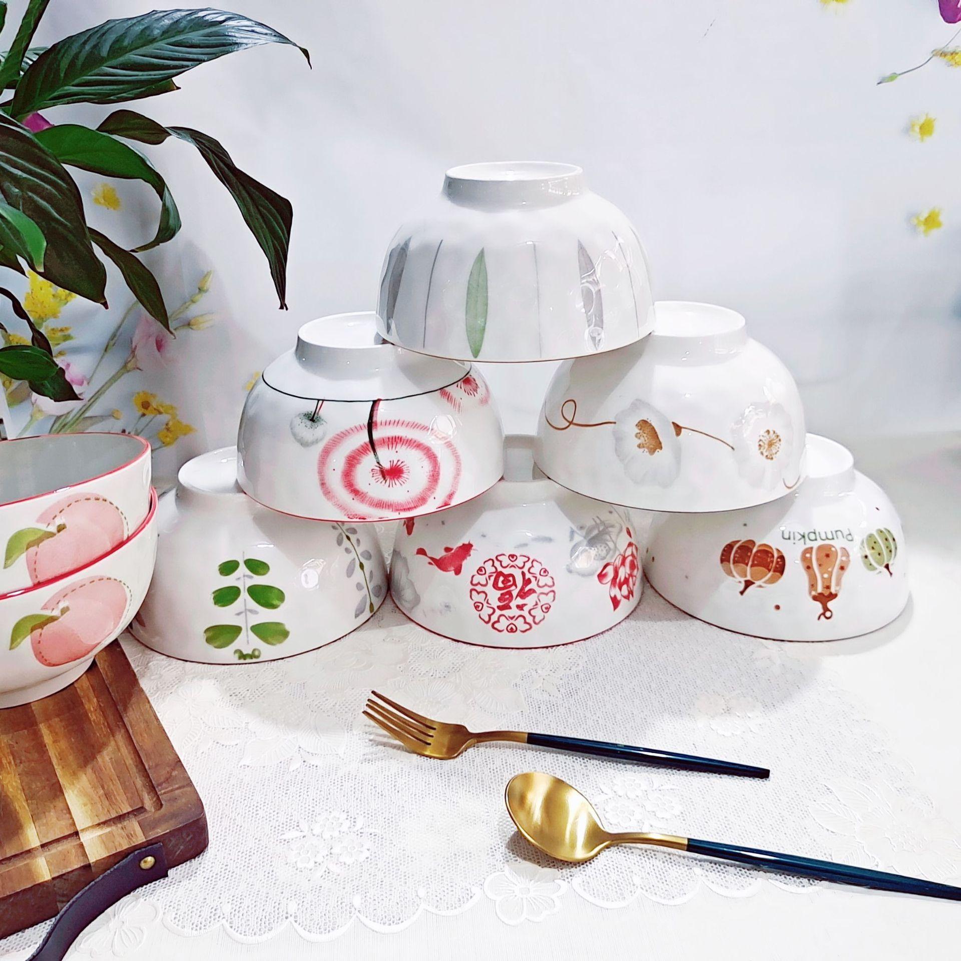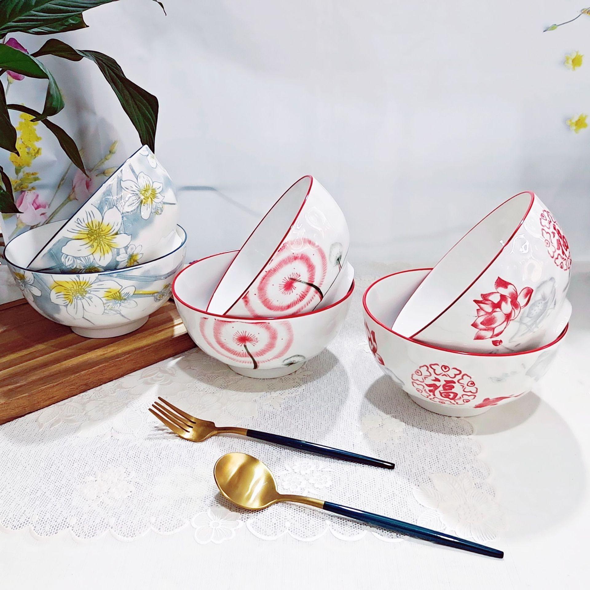 Cor Sob Esmalte Tigela Rainstone 6 polegadas Hotel Doméstico Tigela Cerâmica Europeia Tigela para Ramen Tigela para Macarrão de Arroz Cerâmica Diária Atacado