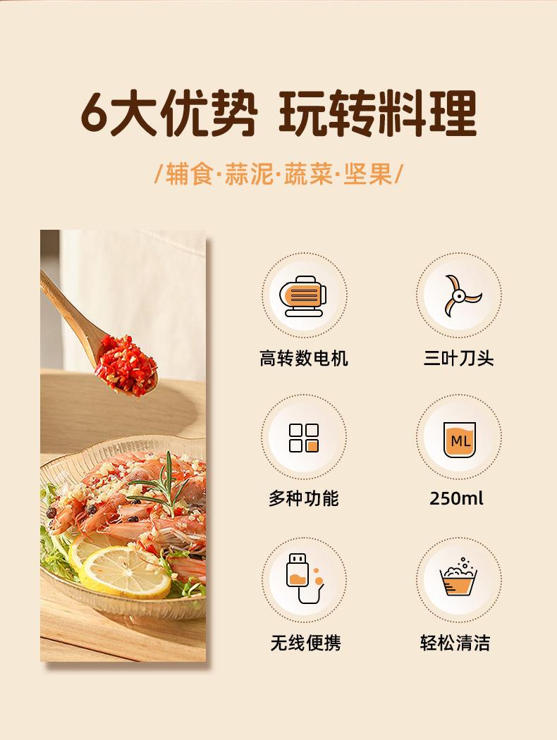 O produto inclui: host + copo + 3 lâminas + cabo de carregamento + manual de instruções