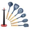 Dark blue 7-piece set with wooden handle