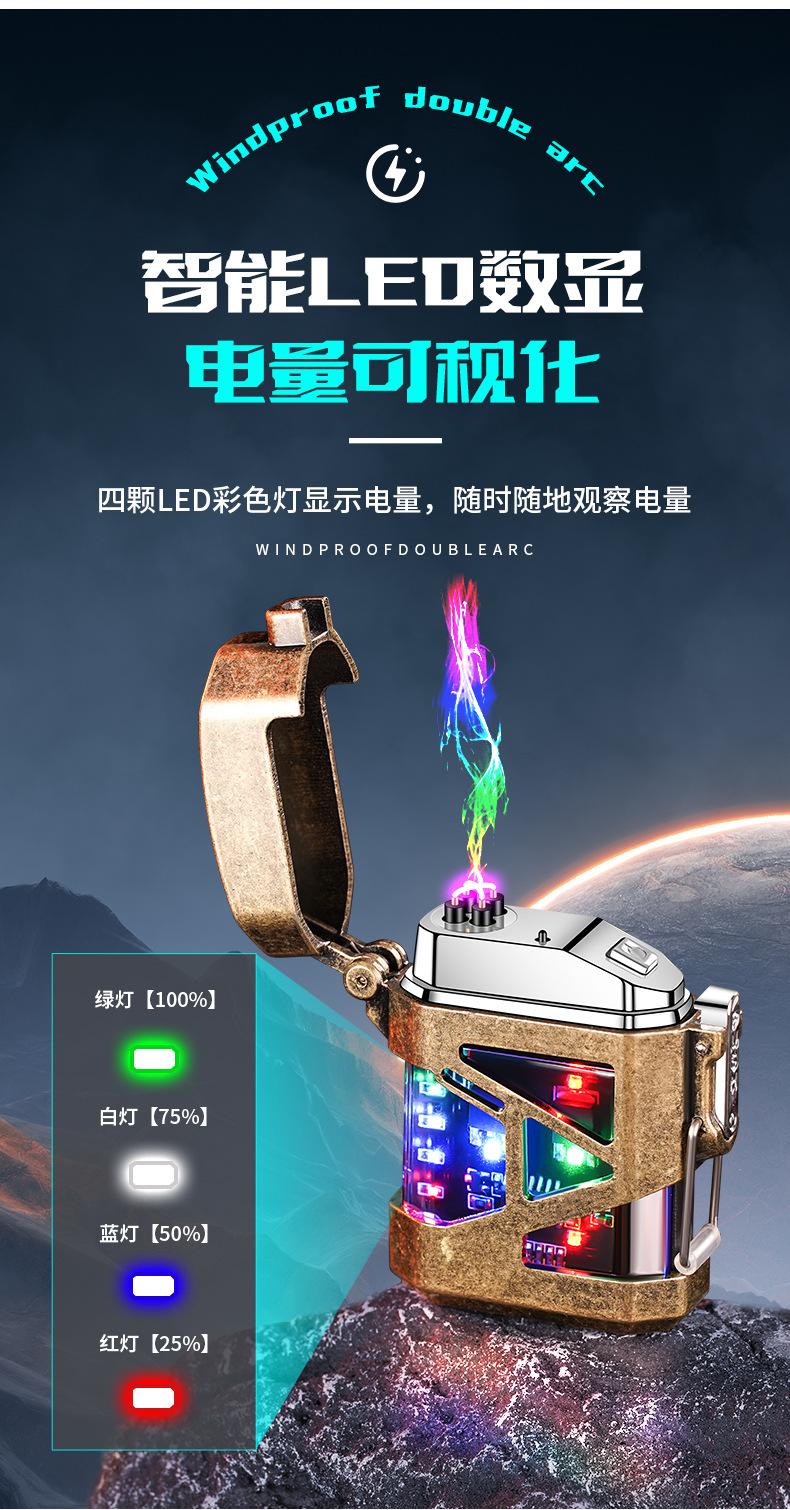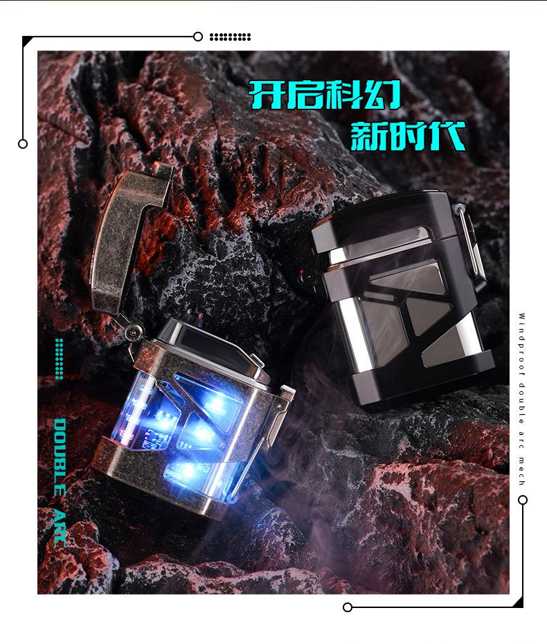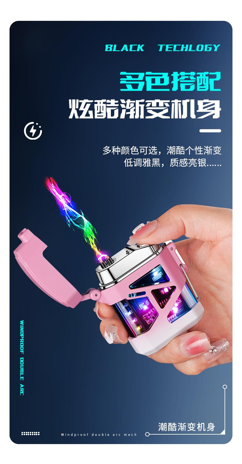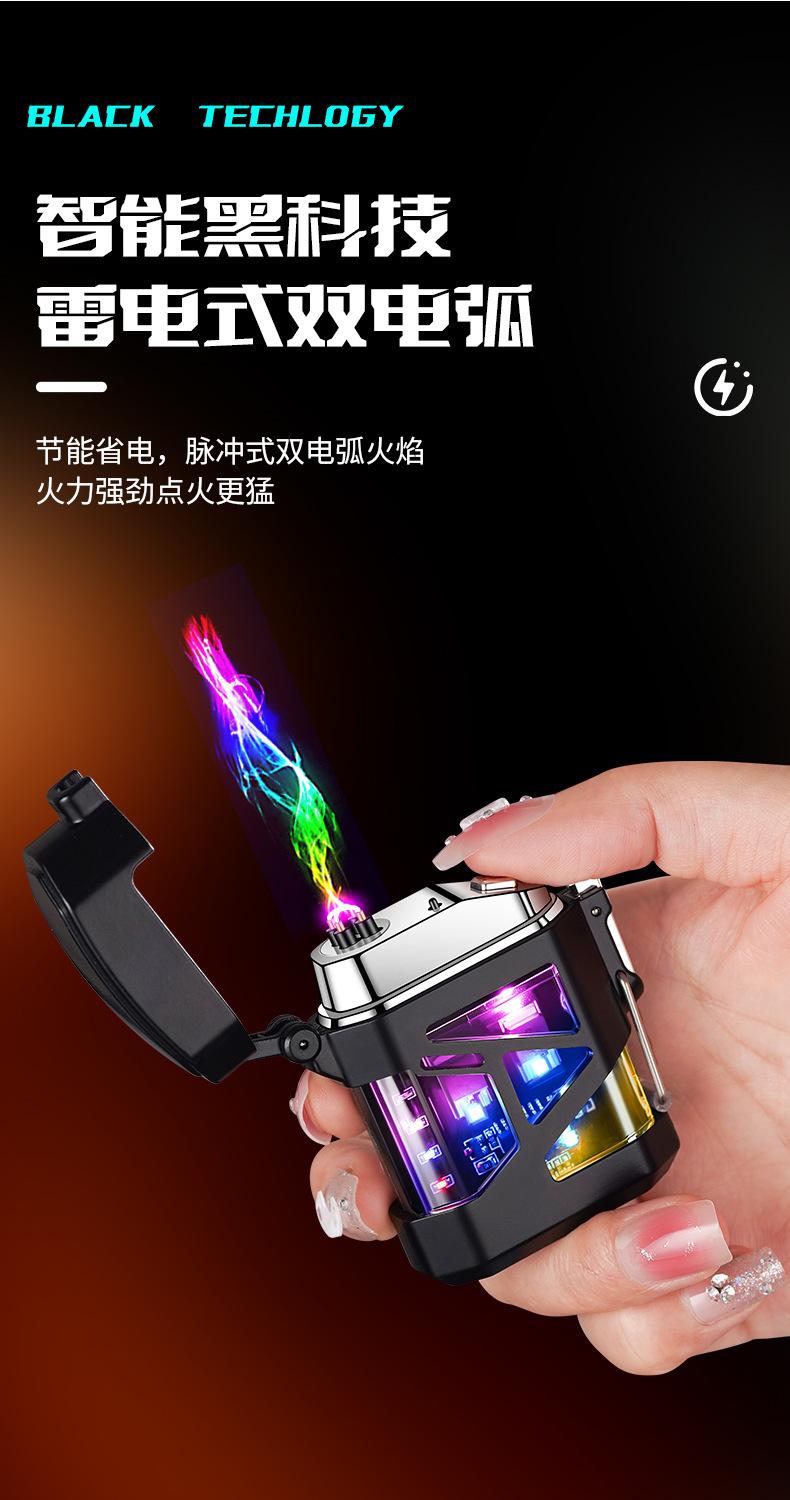 Isqueiro de pulso em forma de mecha transfronteiriça, à prova de vento, arco duplo, movimento visual transparente, carregamento por atacado