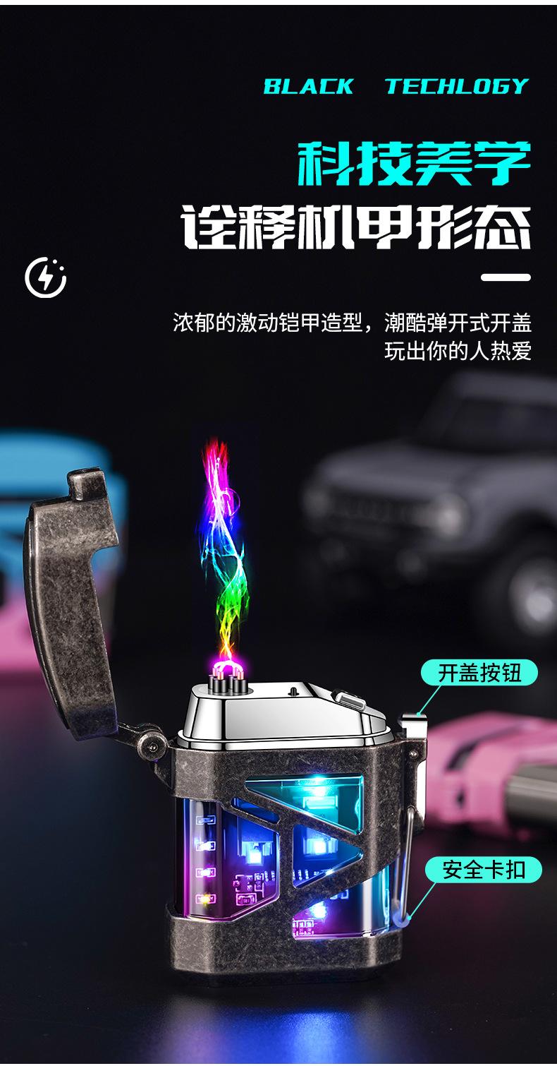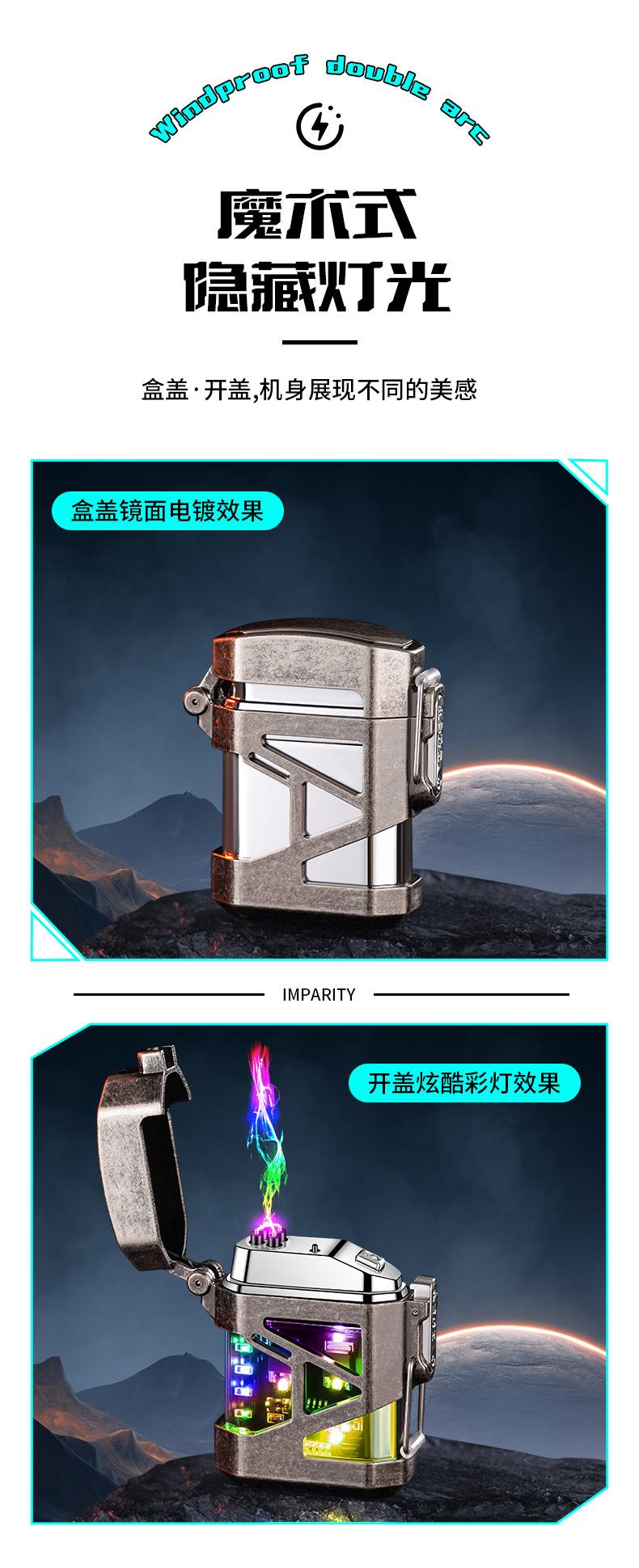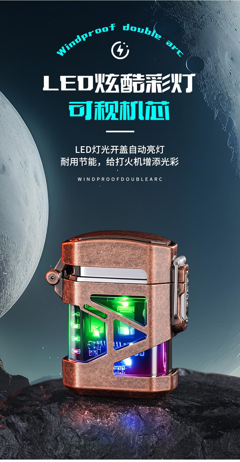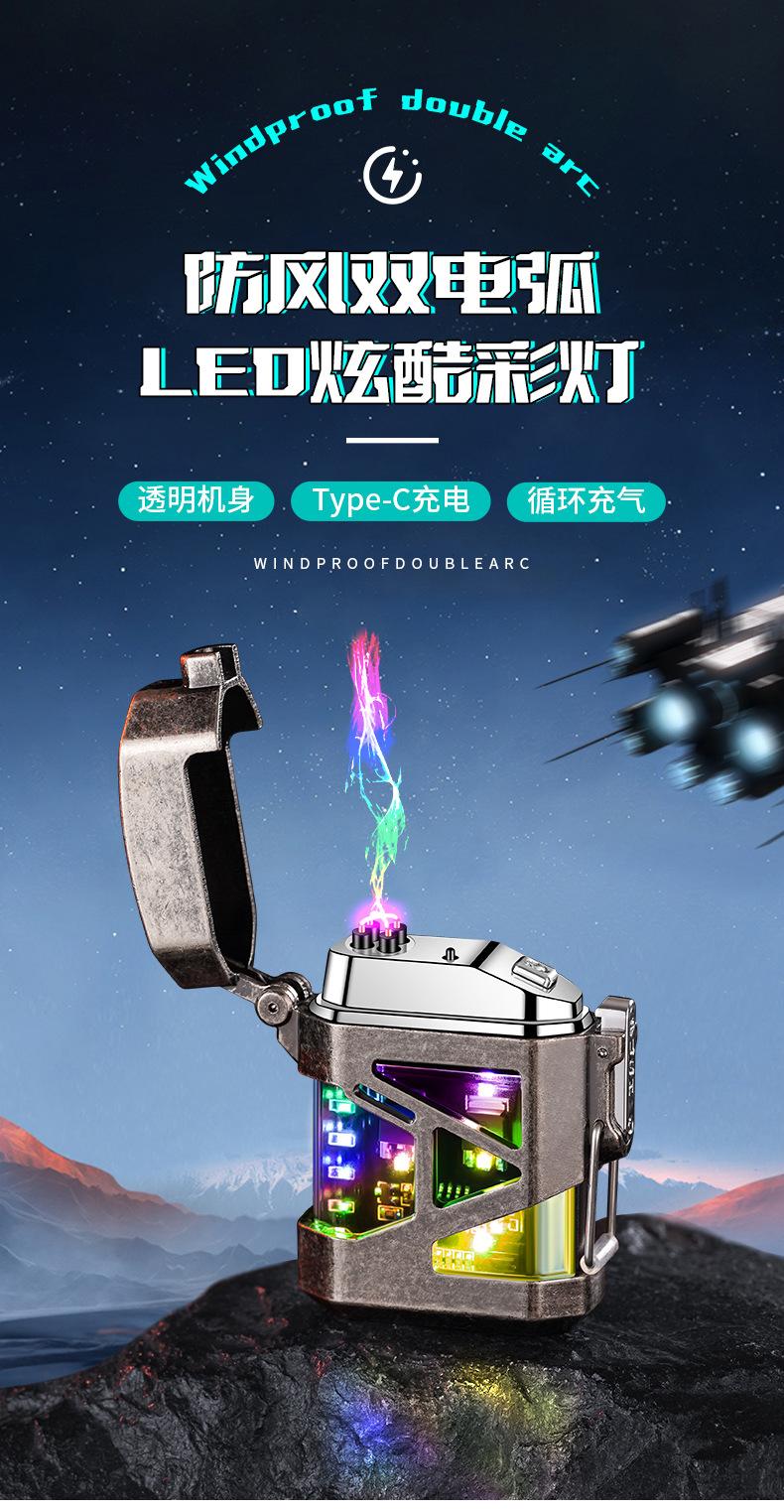 Isqueiro de pulso em forma de mecha transfronteiriça, à prova de vento, arco duplo, movimento visual transparente, carregamento por atacado