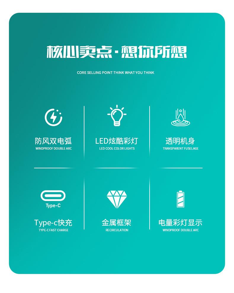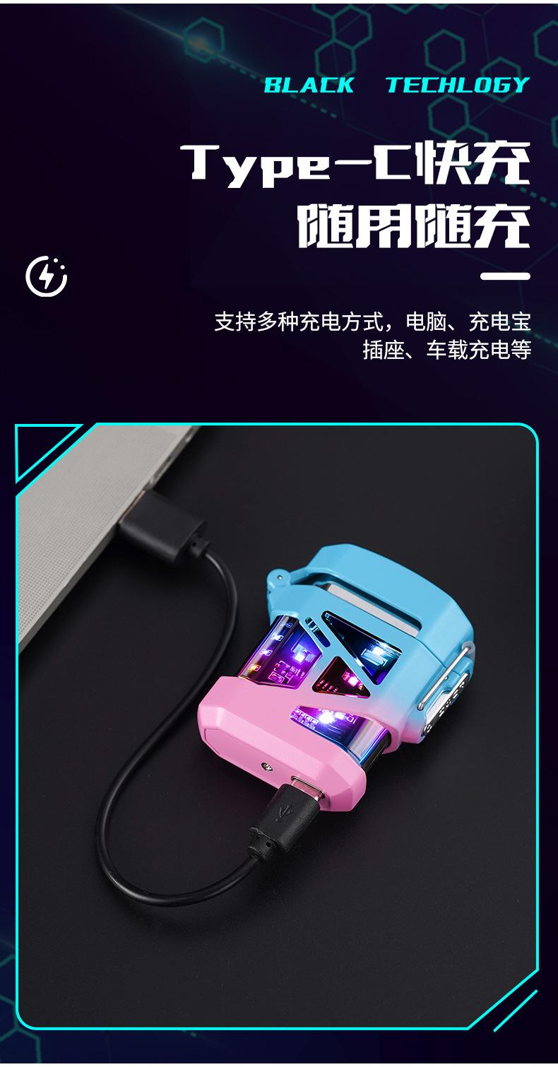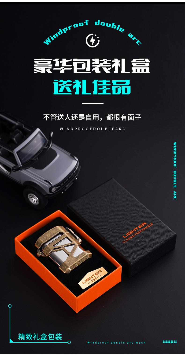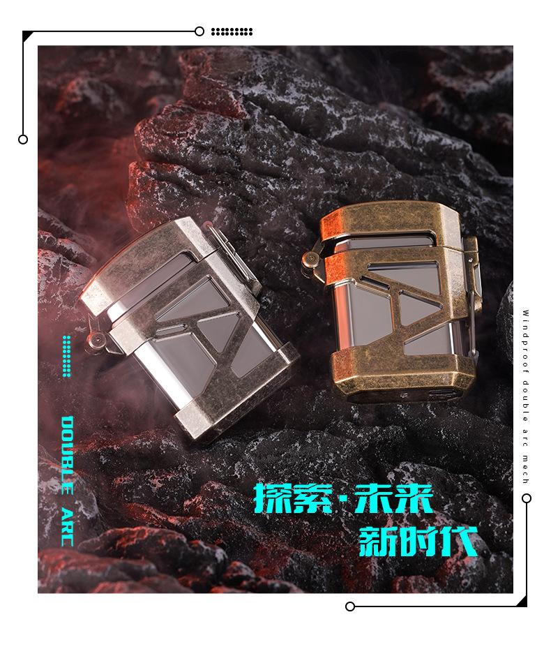 Isqueiro de pulso em forma de mecha transfronteiriça, à prova de vento, arco duplo, movimento visual transparente, carregamento por atacado