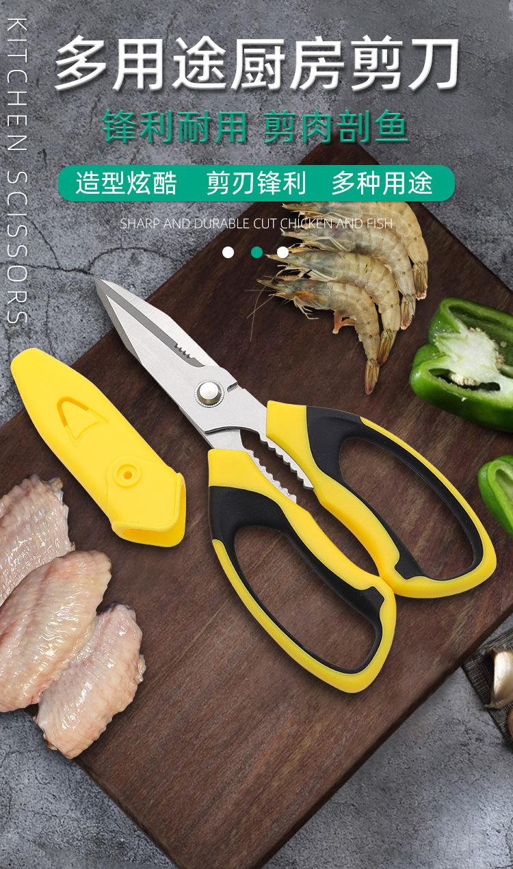 Tesoura de Alimentos de Aço Inoxidável Transfronteiriça, Tesoura de Cozinha Multiuso para Osso de Frango com Tesoura, Utensílios de Cozinha Práticos