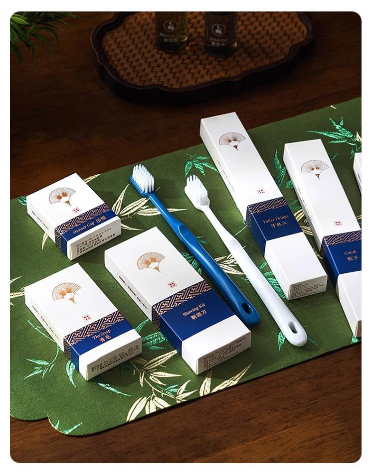 Artigos de higiene pessoal descartáveis de estilo chinês para hotéis, escova de dentes de alta qualidade com pasta de dentes e conjunto de dentes, série First Look