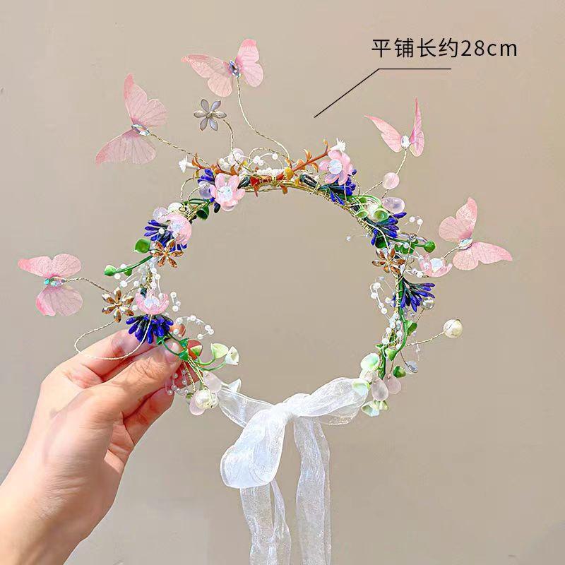 Tiara de cabelo com guirlanda, faixa de cabelo de princesa Mori, vestido de dama de honra, faixa de cabelo de casamento, acessórios de cabelo para meninas