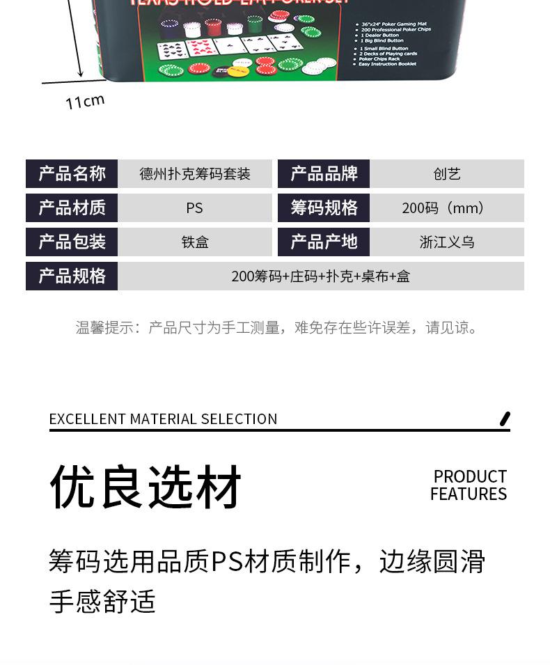 Tamanho do pôquer: 9*6,5*1,9ccm