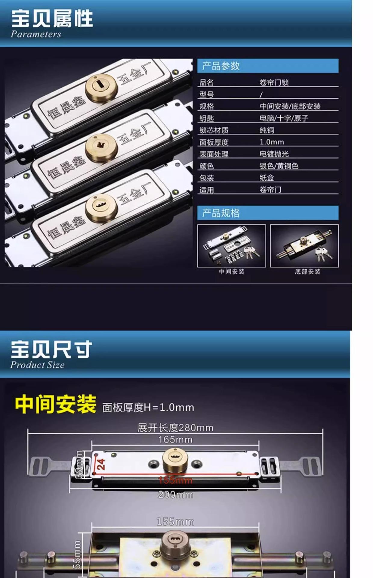 Fechadura de porta de enrolar, fechadura de portão de enrolar, abertura central, núcleo de cobre, cruz, abertura inferior antiga, antirroubo, anti-arrombamento, fechadura de porta X20