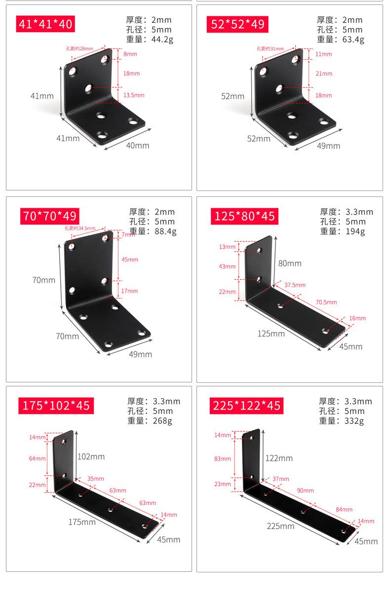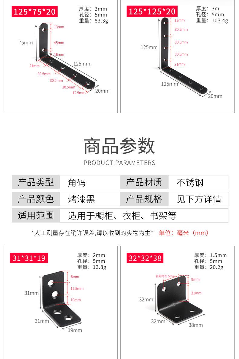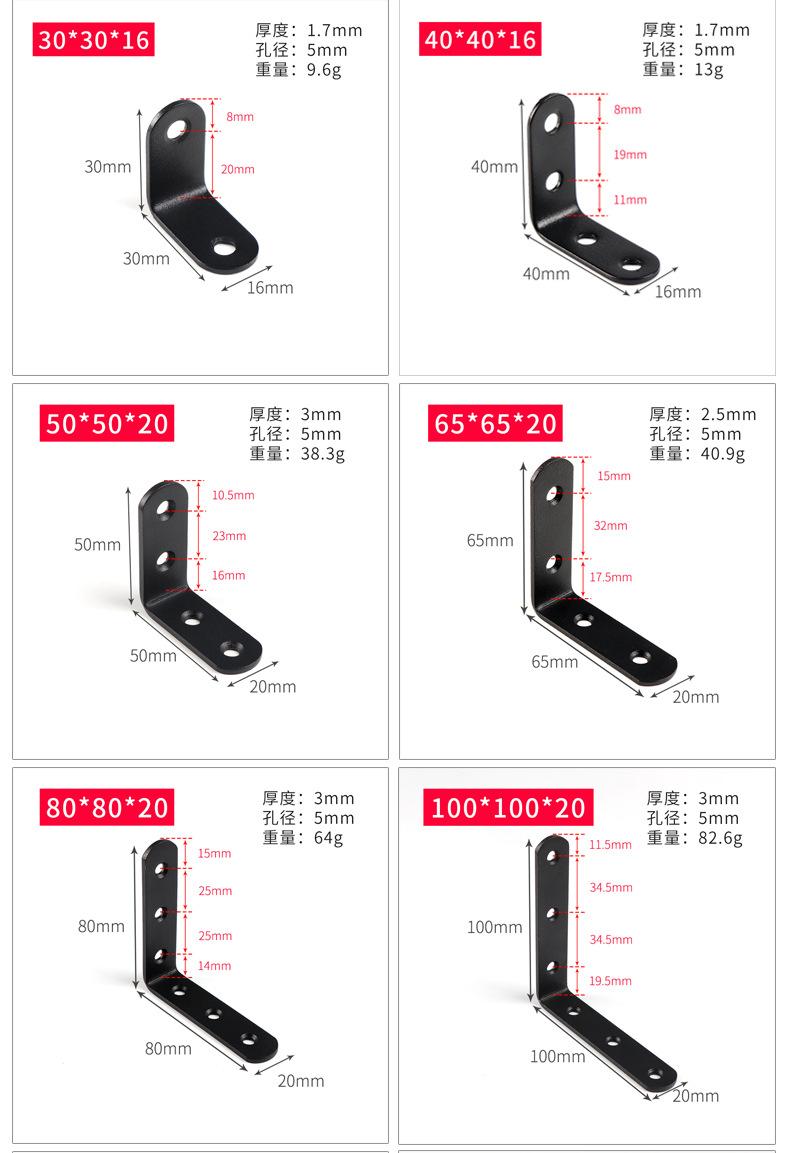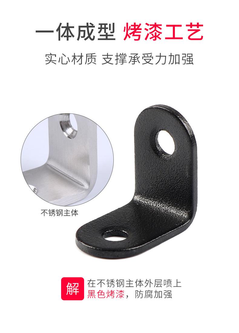 Código angular preto aço inoxidável 90 graus ângulo reto suporte suporte triângulo conector peça hardware L-shaped suporte laminado